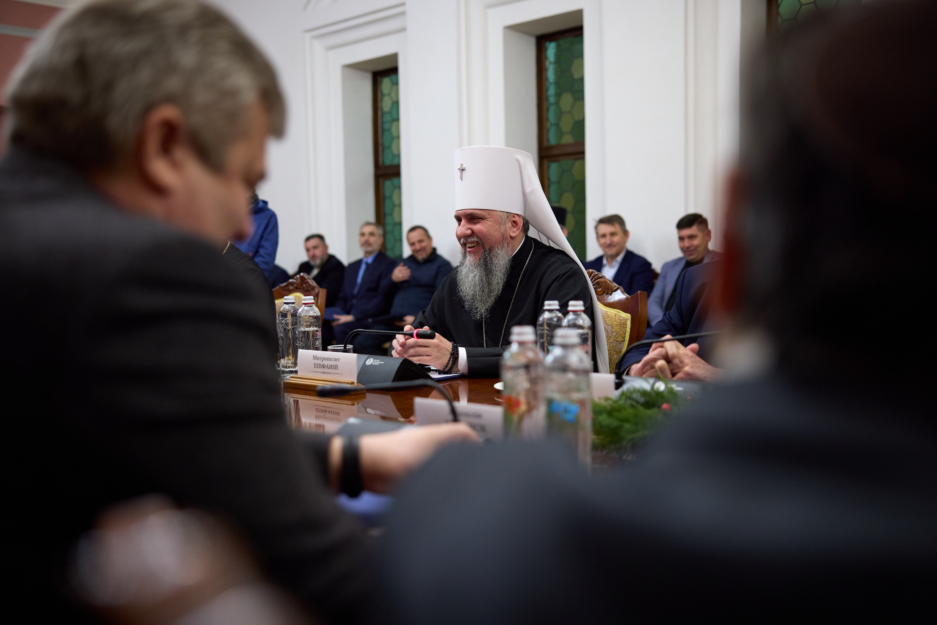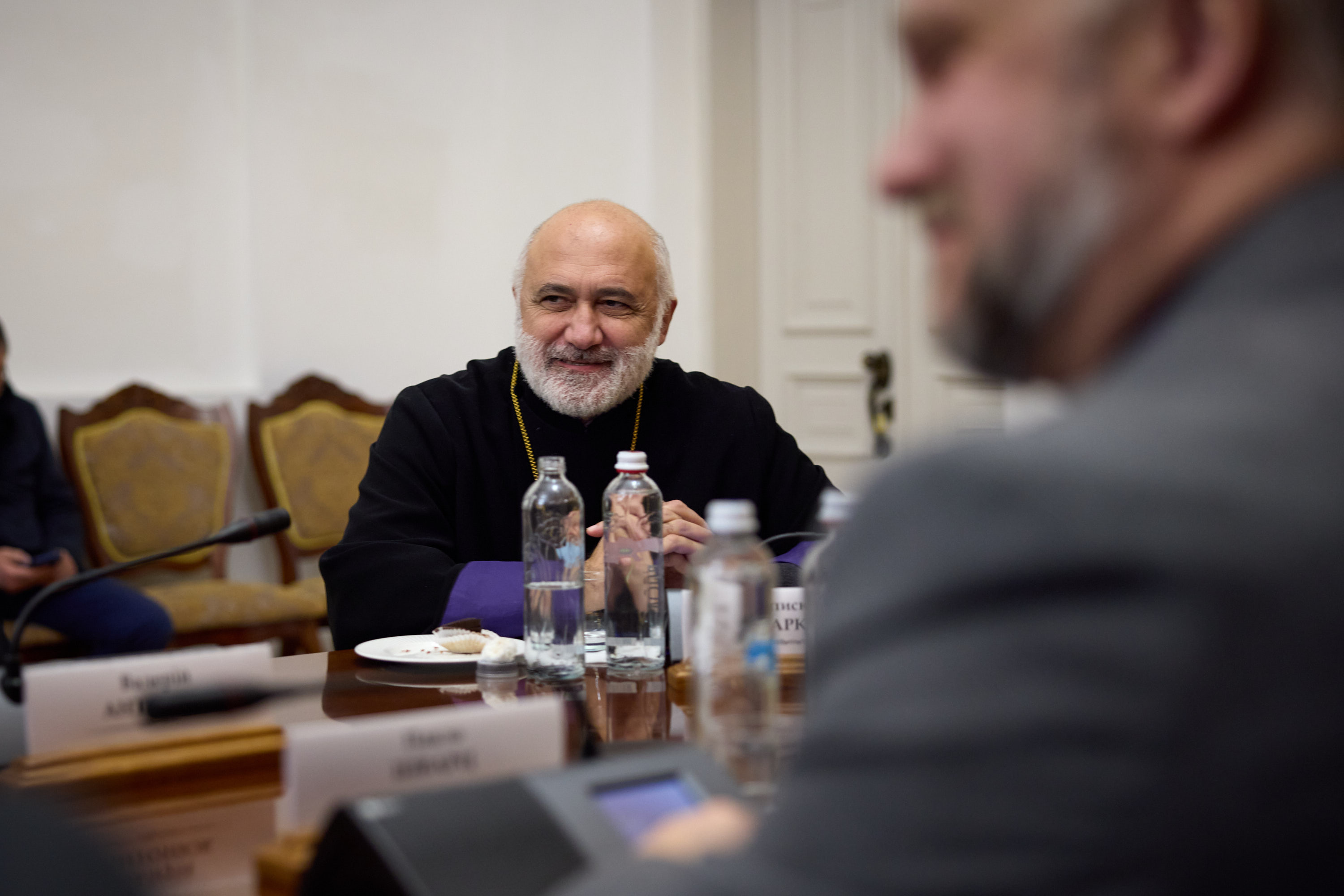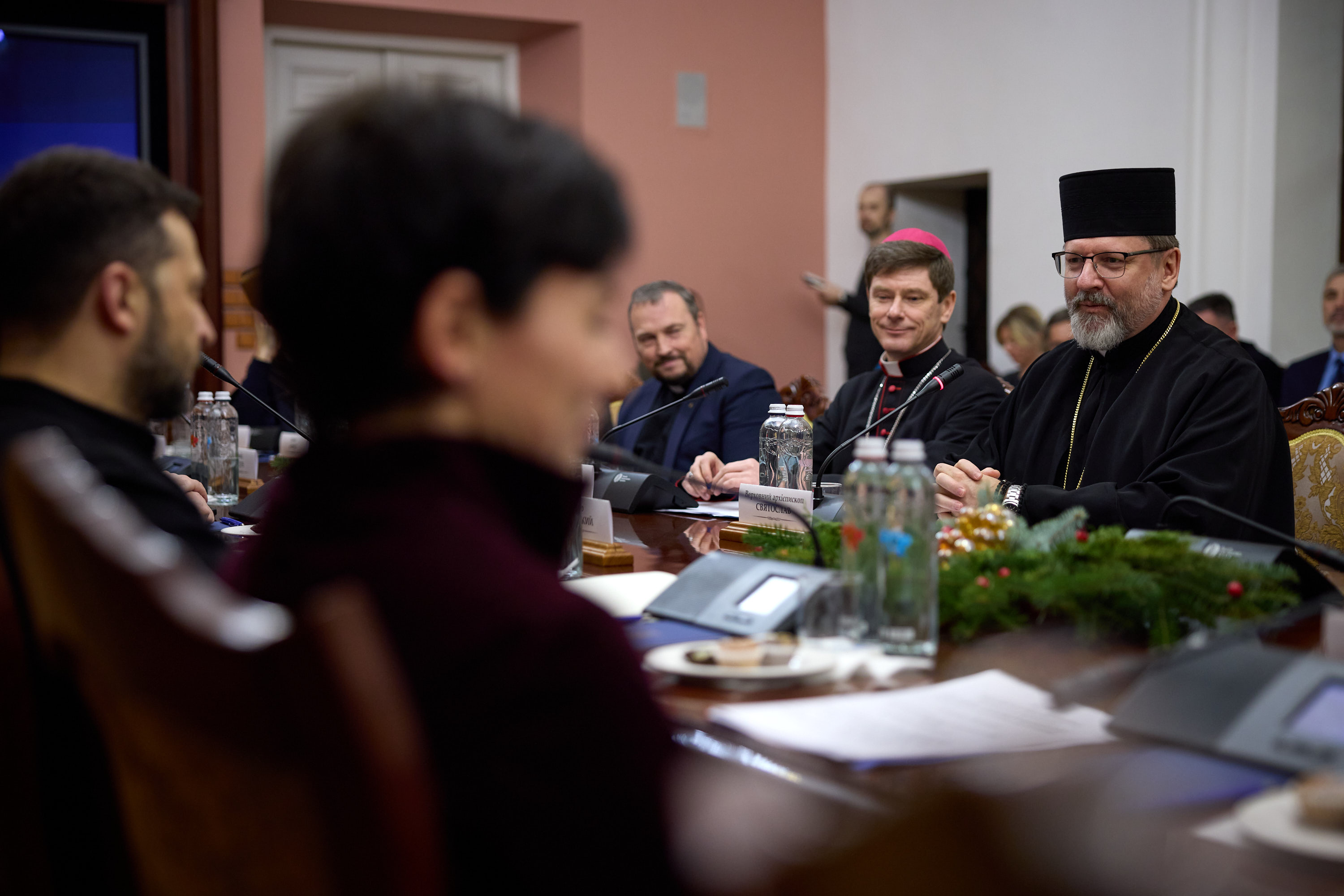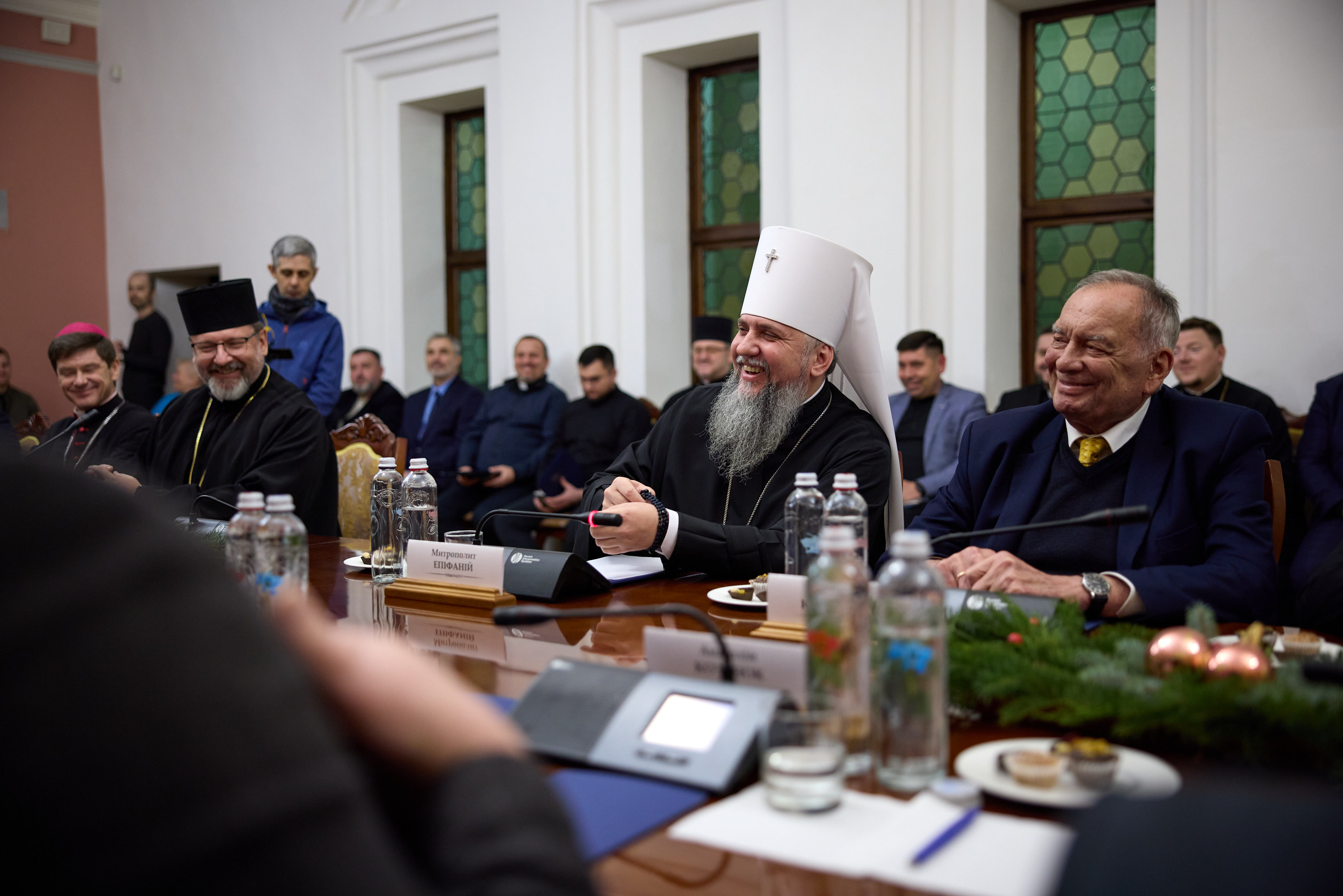 The meeting was also attended by: Bishop of the Roman Catholic Church in Ukraine and Ordinary of Kyiv-Zhytomyr Vitalii (Kryvytskyi), President of the Ukrainian Union Conference of the Seventh-day Adventist Church Stanislav Nosov, Senior Bishop of the Ukrainian Christian Evangelical Church Leonid Padun, Senior Bishop of the Ukrainian Evangelical Church Oleksandr Zaitsev, Head of the Religious Administration of Muslims of the Autonomous Republic of Crimea Ayder Rustemov, Bishop of the Ukrainian Lutheran Church Vyacheslav Horpynchuk, Bishop of the German Evangelical Lutheran Church of Ukraine Pavlo Shvarts, Bishop of the Ukrainian Diocese of Armenian Apostolic Church Marcos Hovhannisyan, Bishop of the Trans-Carpathian Reformed Church Petro Sehlianyk, Deputy Chairman of the Board of the Association of Jewish Religious Organizations of Ukraine Yevhen Ziskind, and Deputy General Secretary of Ukrainian Bible Society Anatoliy Raychynets.