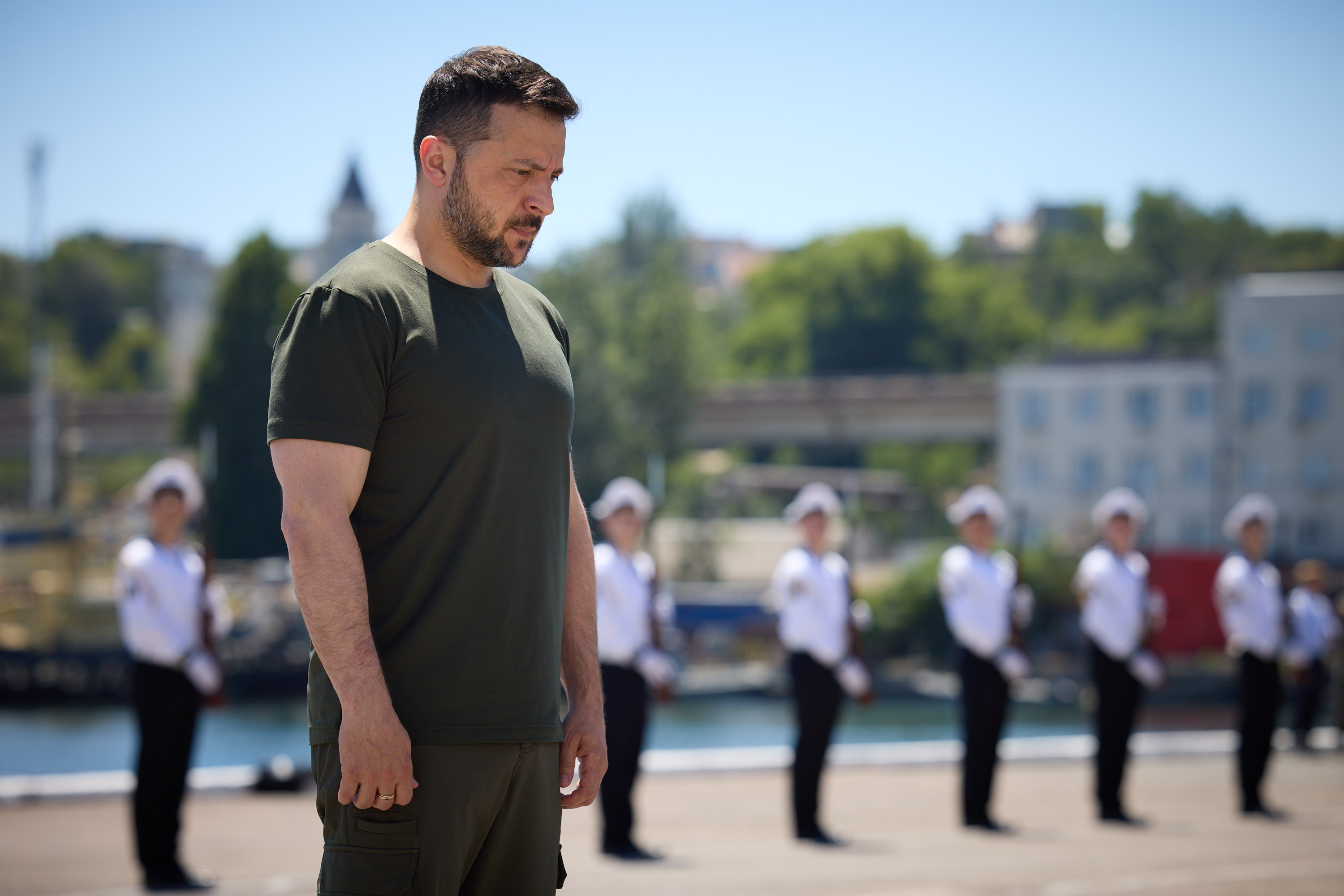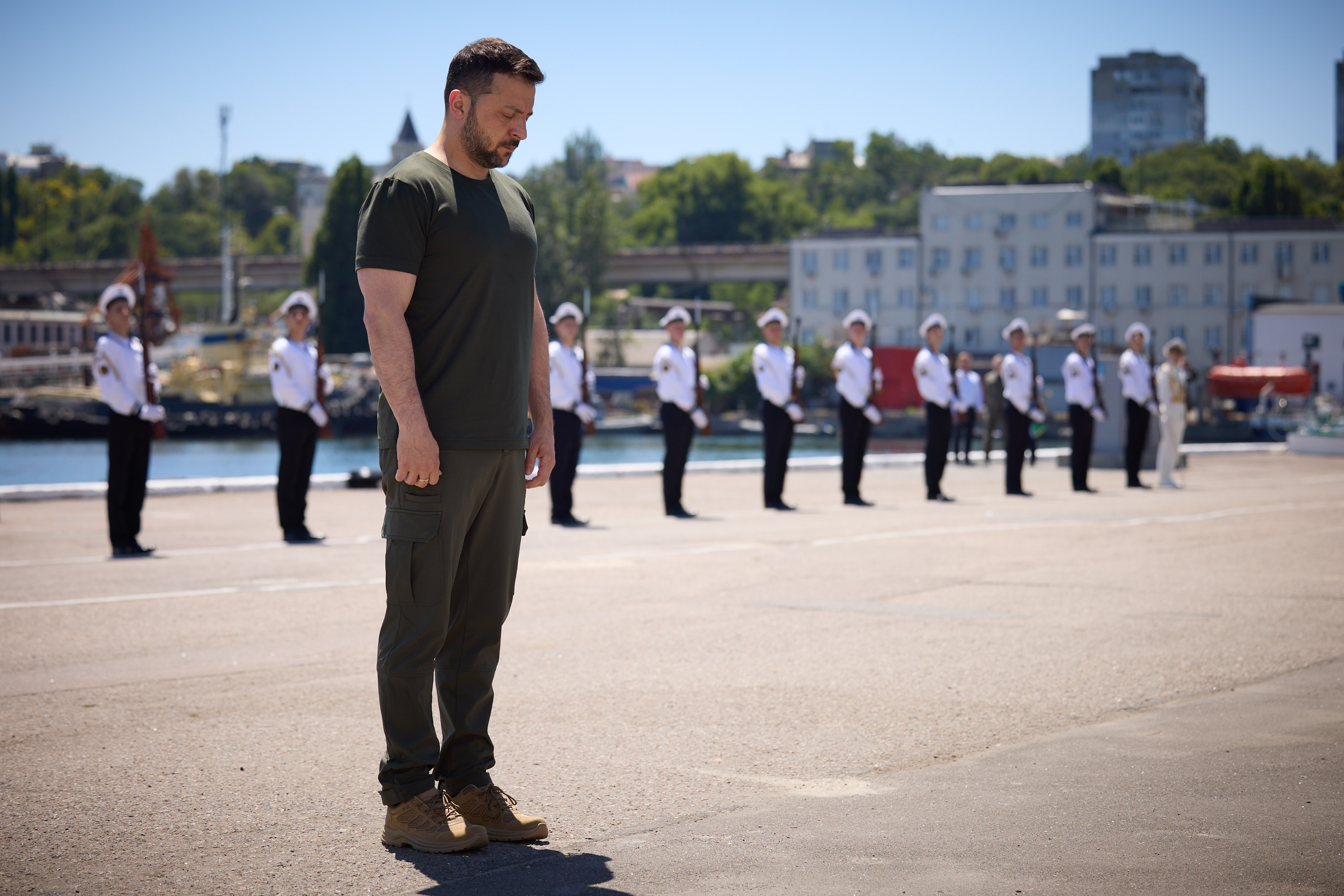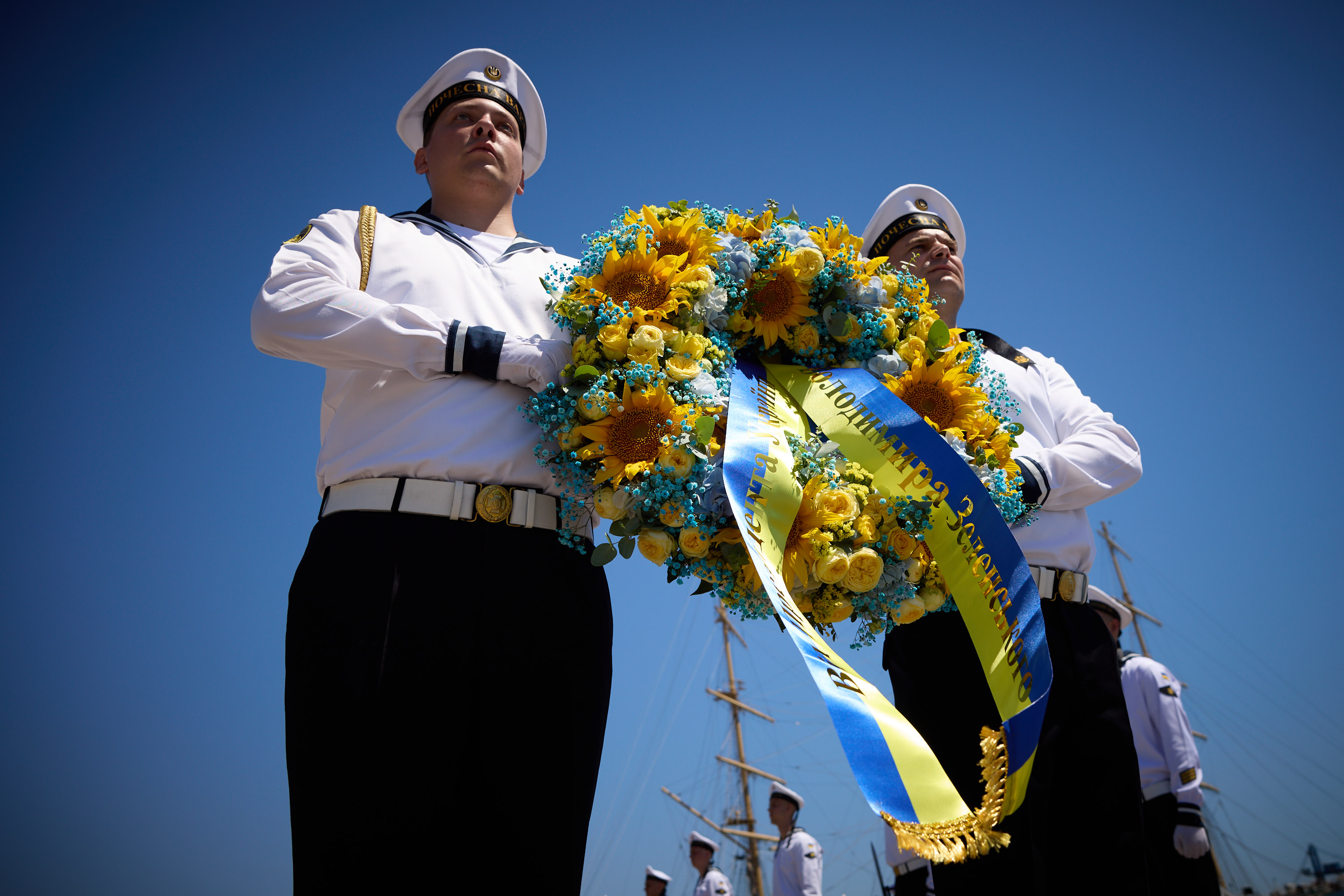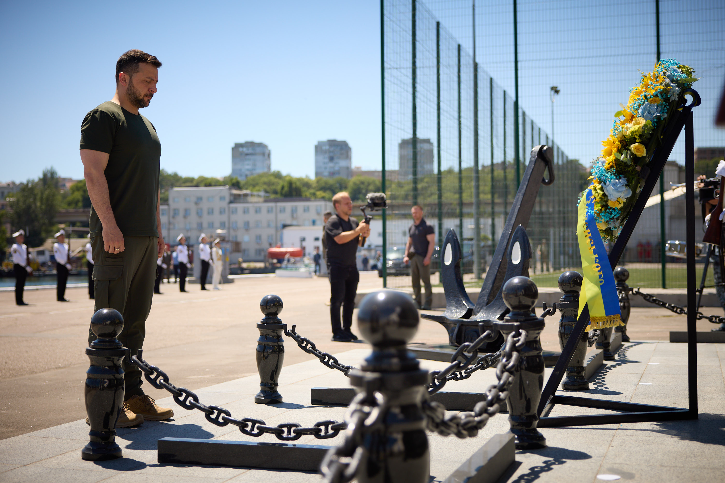 Президент відзначив героїзм моряків, воїнів Річкової флотилії, льотчиків авіації ВМС, зенітників, артилеристів. Він також додав, що всі українці завжди мають пам’ятати, через що проходять наші воїни та якою ціною вони захищають незалежність нашої України. Присутні вшанували пам’ять загиблих героїв.