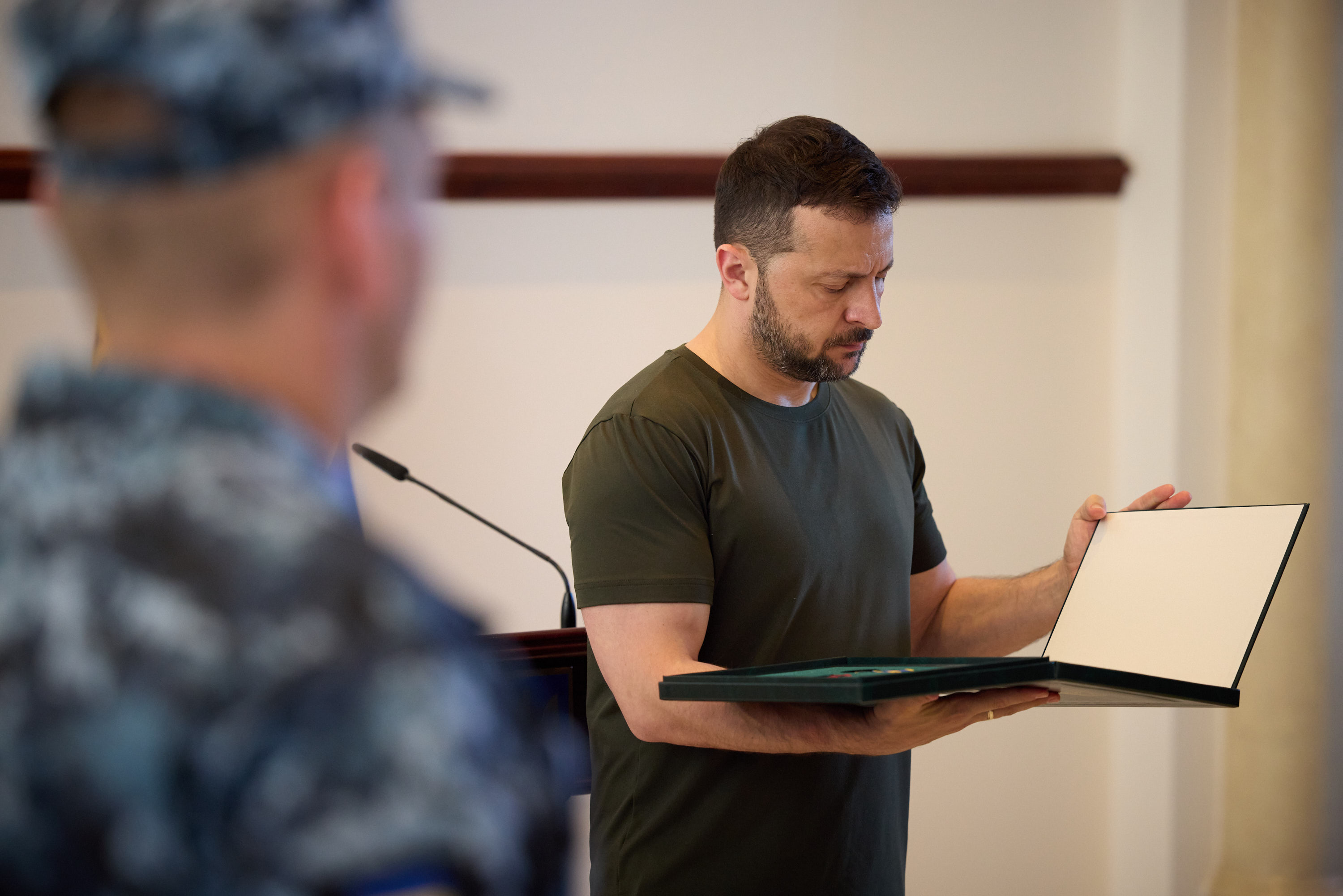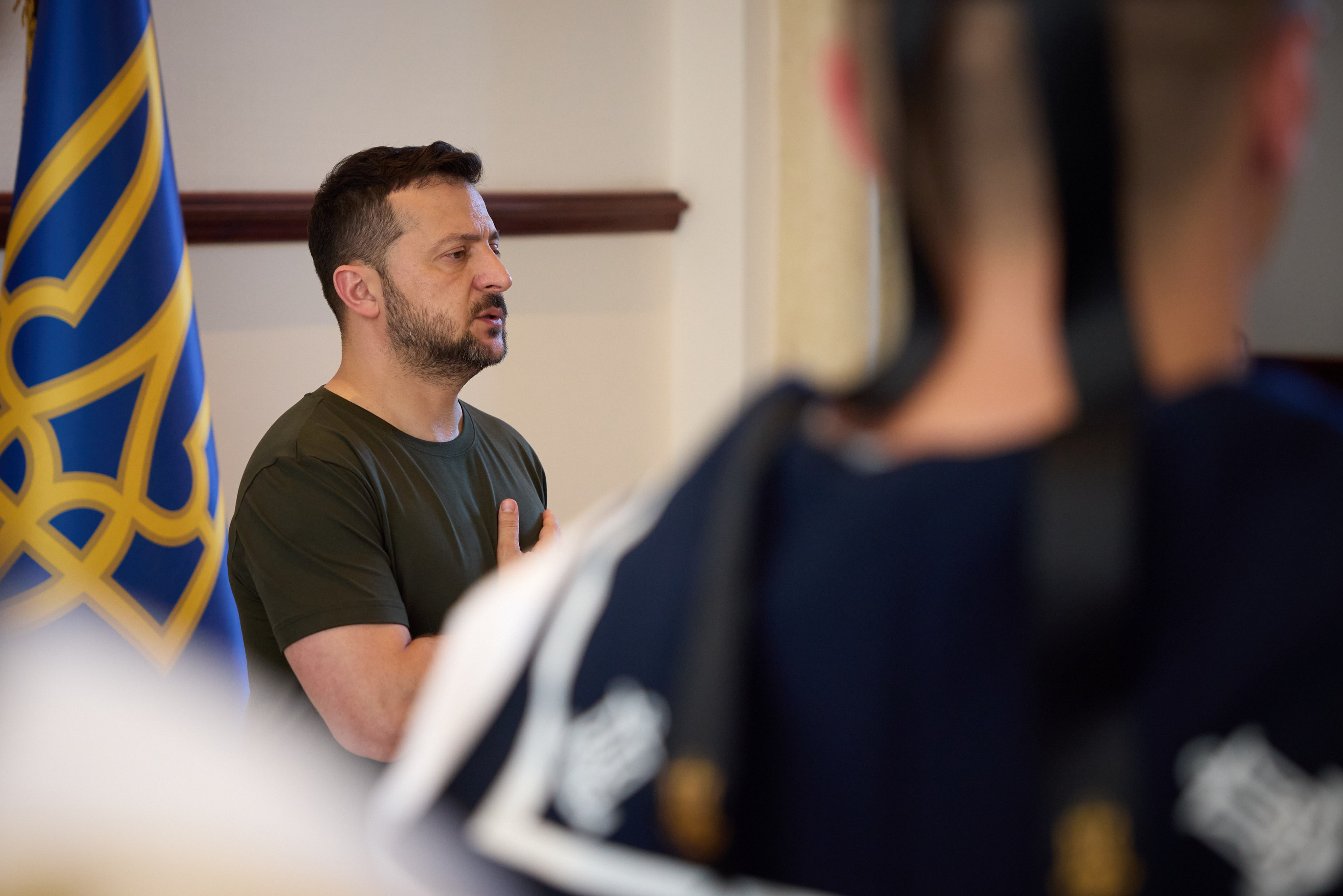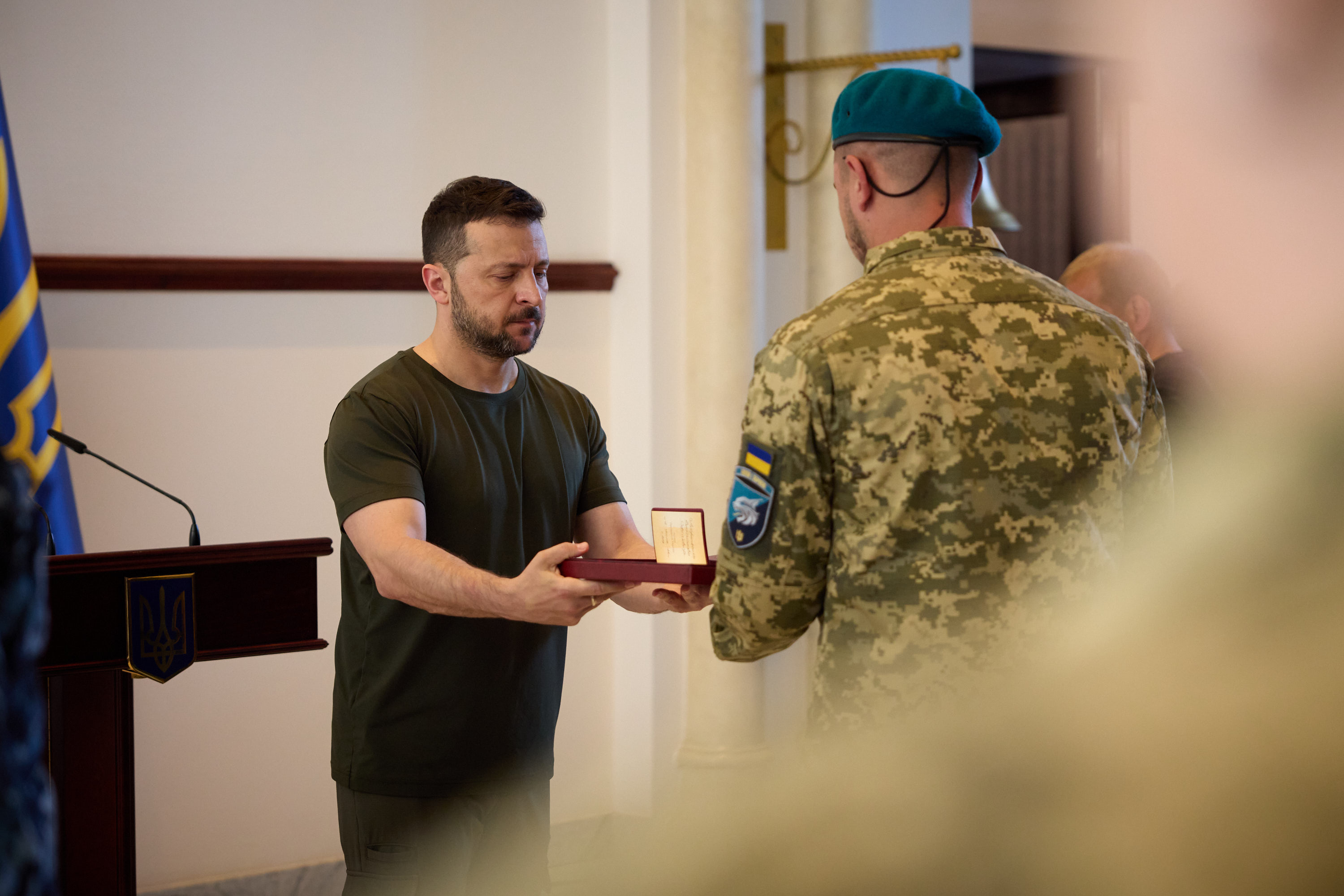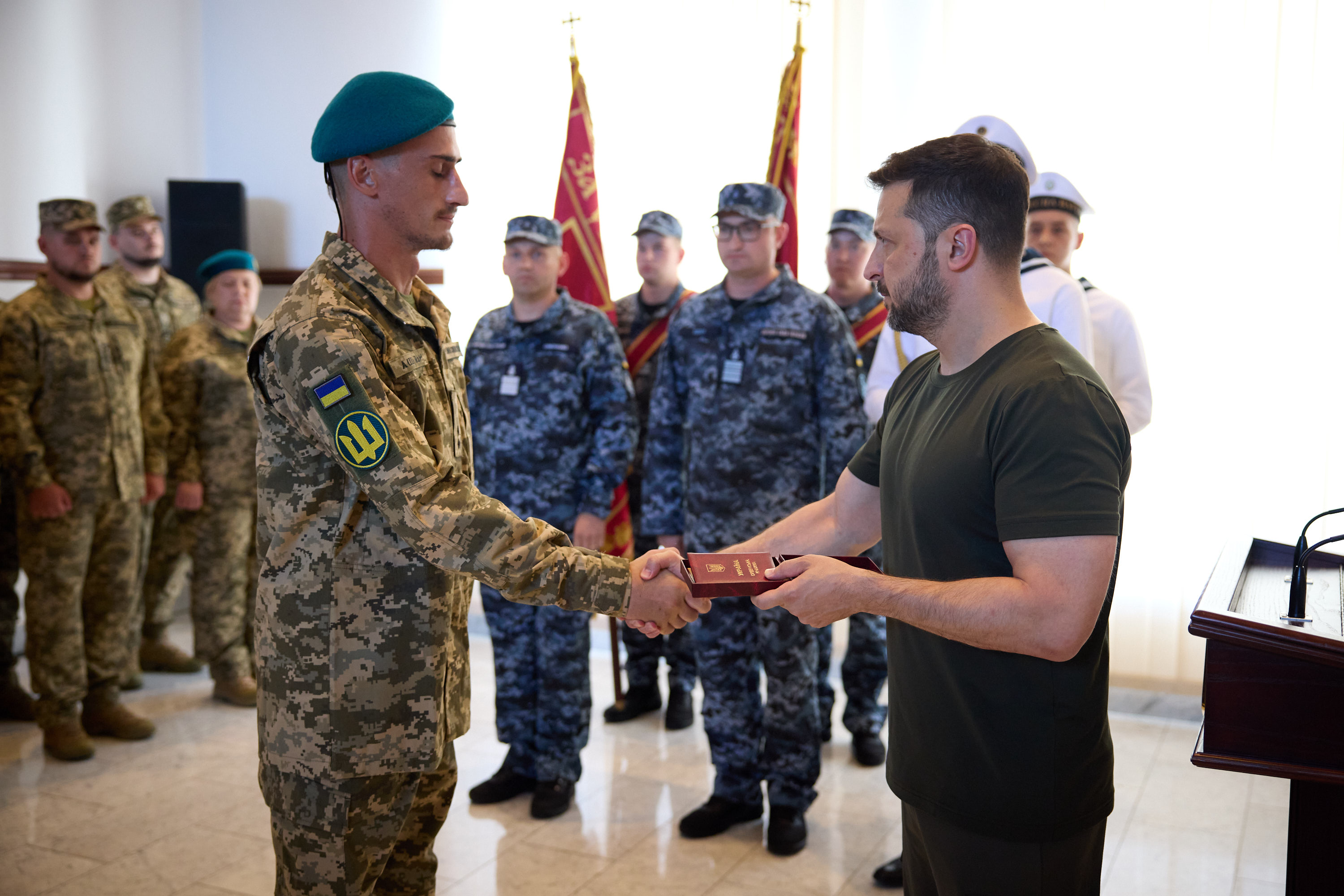 Президент нагородив орденом «Золота зірка» Героя України молодшого сержанта Владислава Андрущенка, який брав участь у звільненні Макарівки та Старомайорського на Донеччині. Торік у жовтні очолив штурмову групу роти морської піхоти, що форсувала Дніпро, успішно висадилася на лівому березі та підійшла до села Кринки. Цьогоріч бійці змусили російських окупантів відступити там із ключових позицій і розширили плацдарм. Владислав Андрущенко неодноразово зазнавав поранення й після лікування повертався на поле бою.