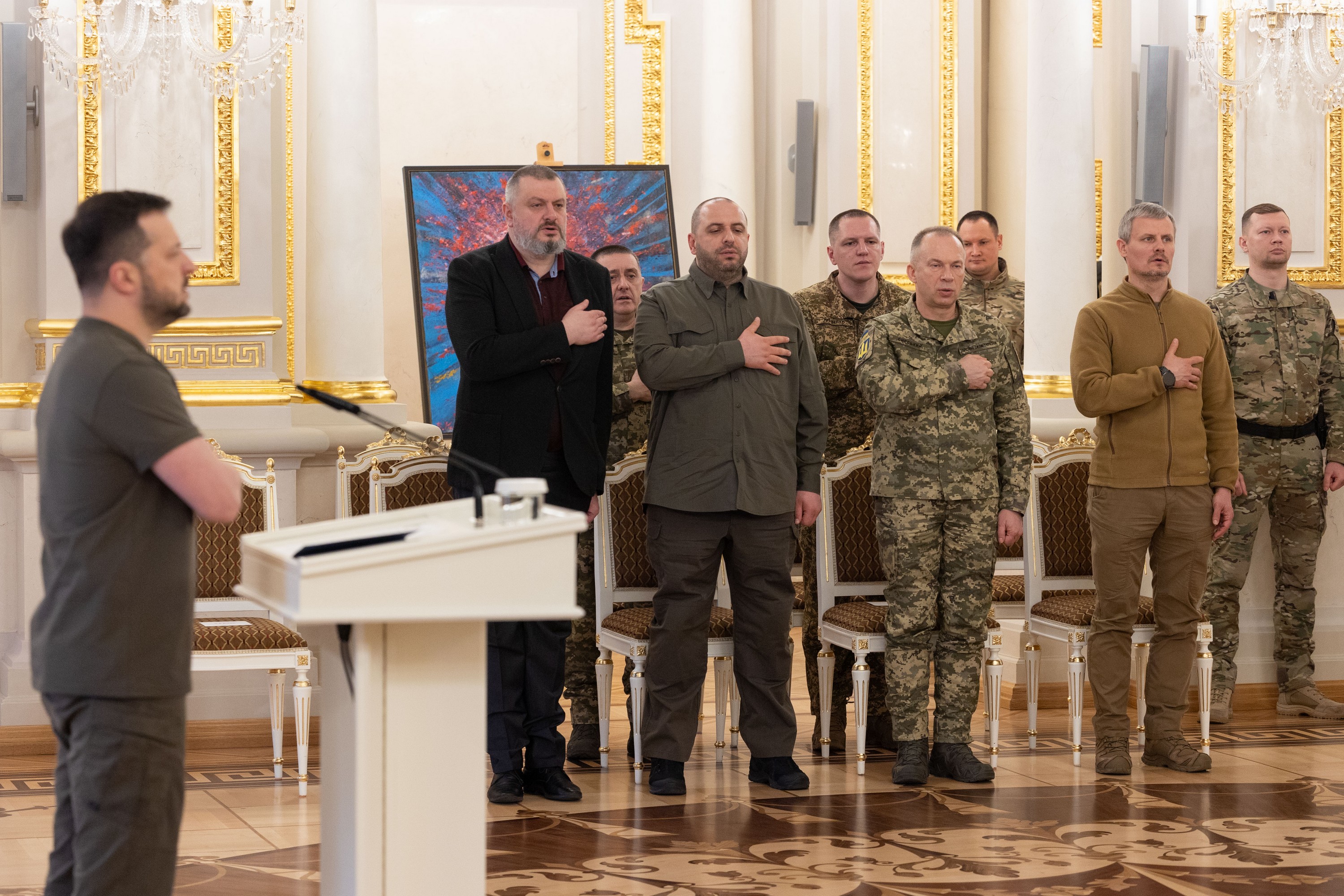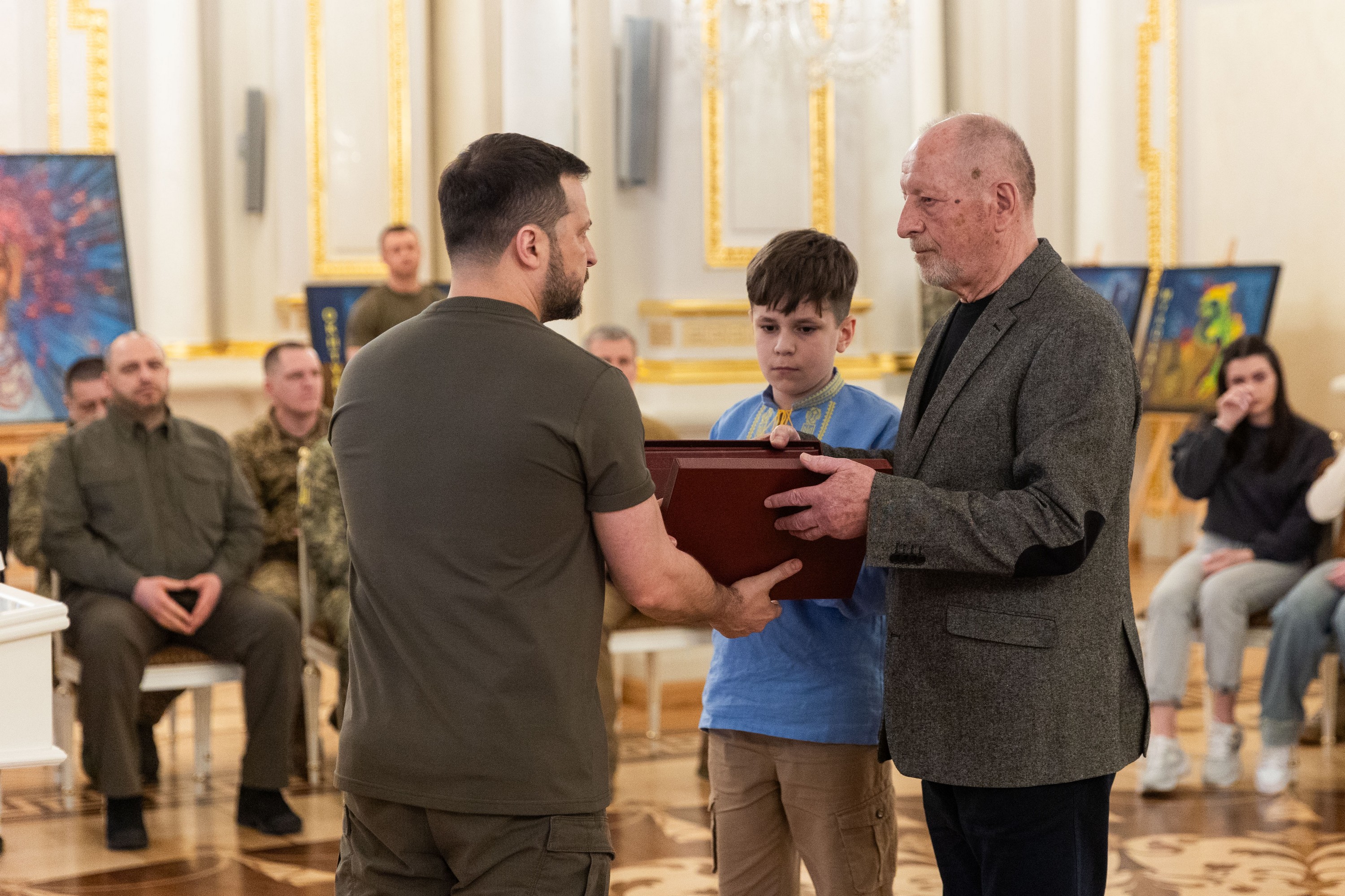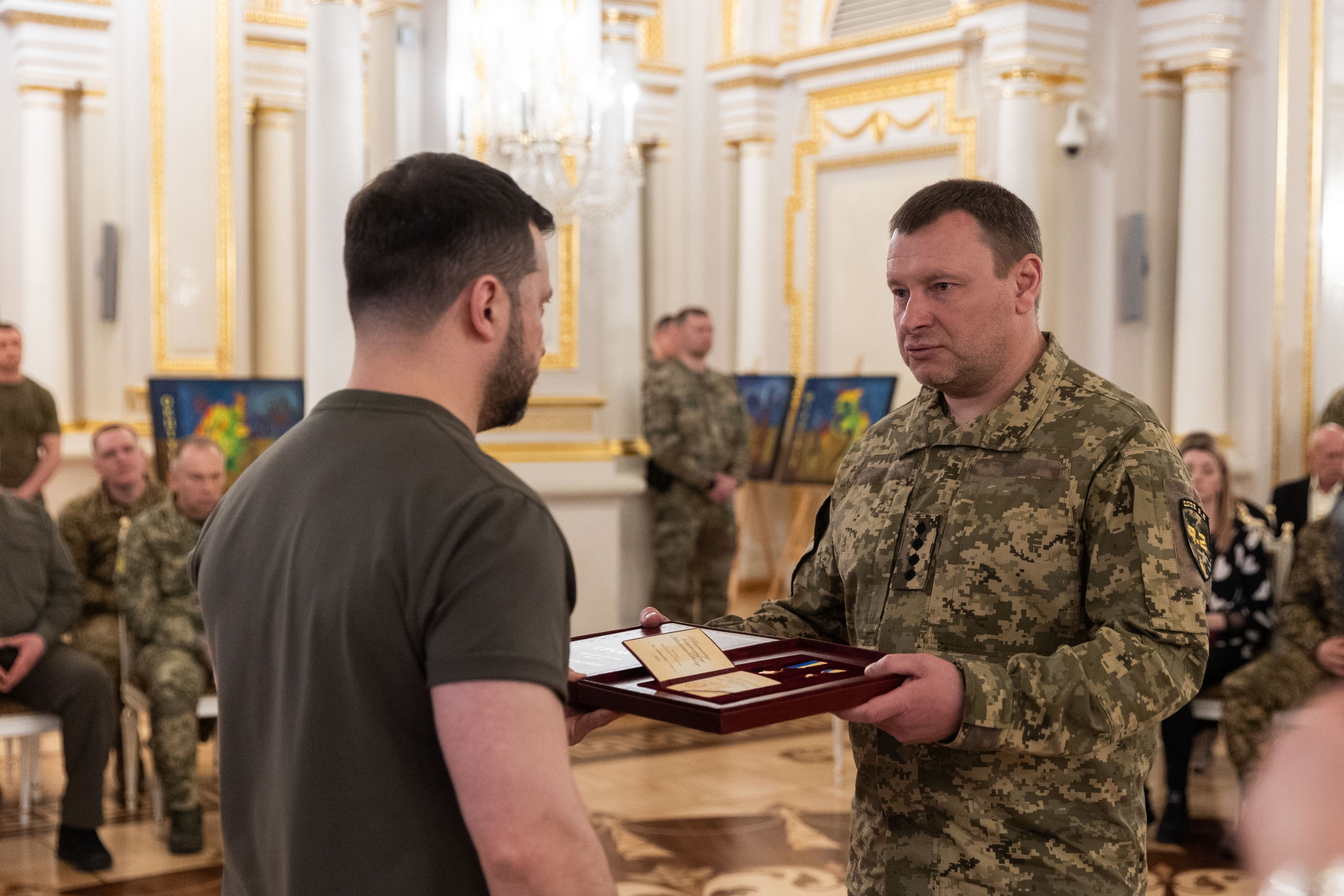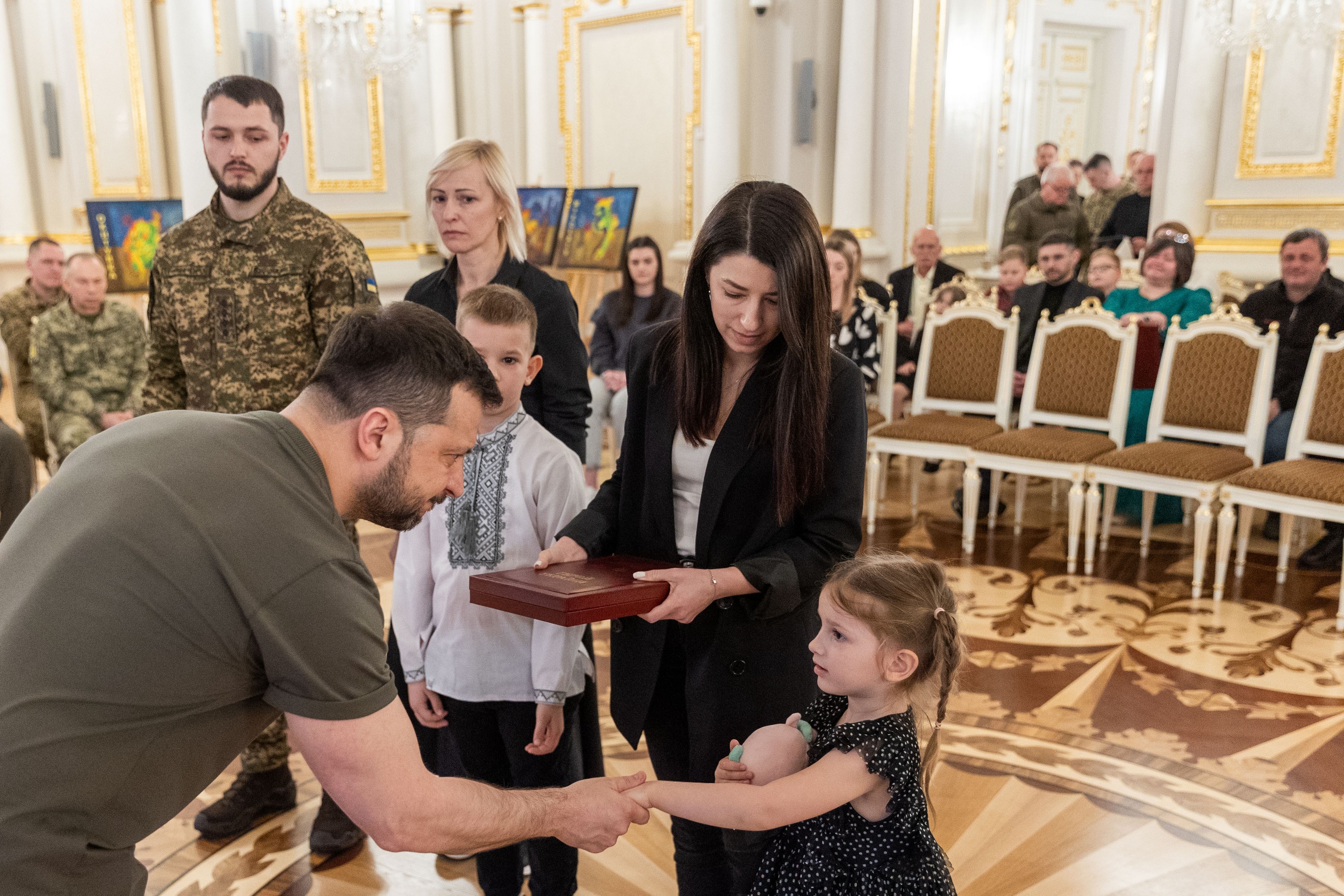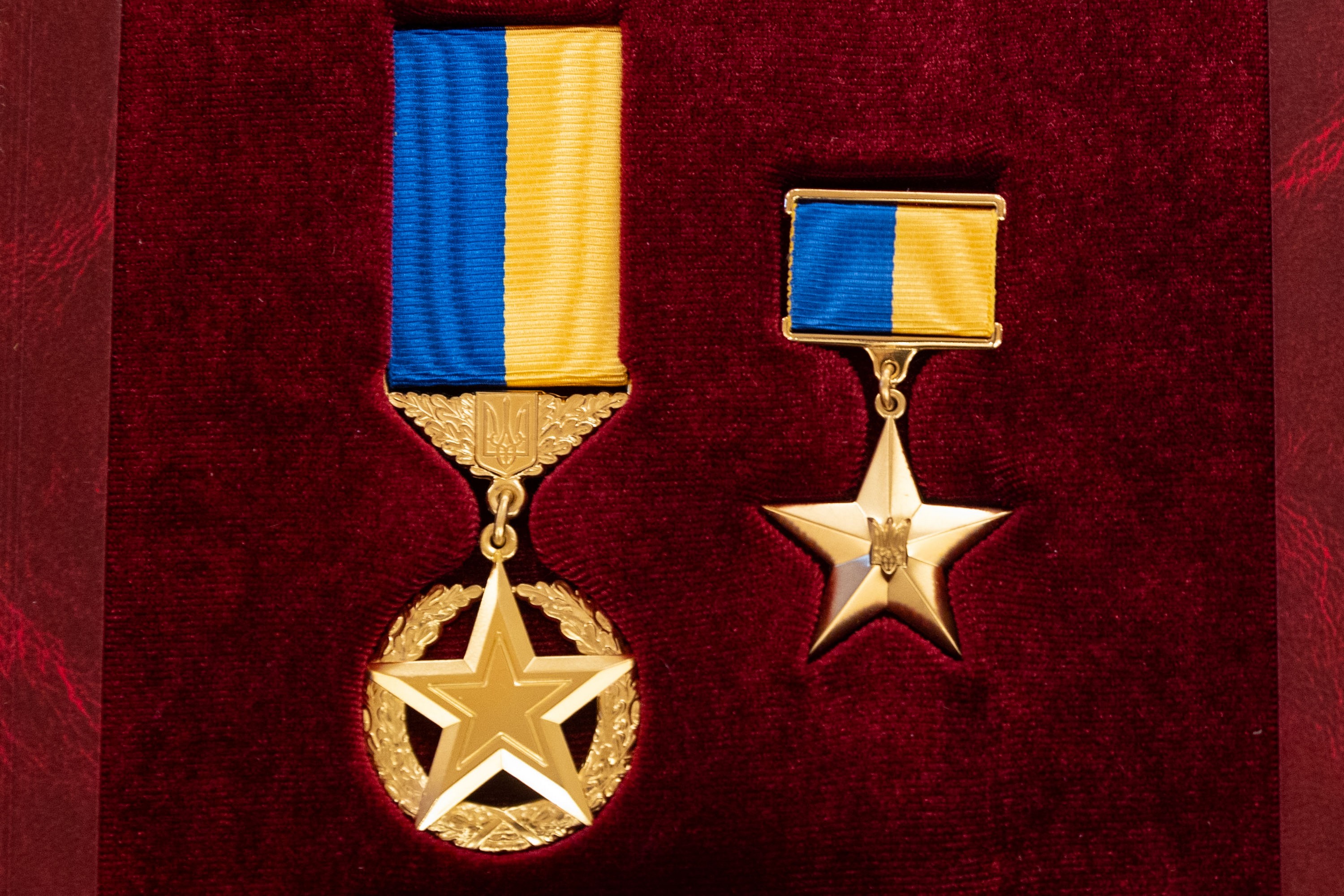 Президент України Володимир Зеленський вручив ордени «Золота Зірка» захисникам, яким присвоєно звання Героя України, та родинам загиблих воїнів, які удостоєні цього звання посмертно.