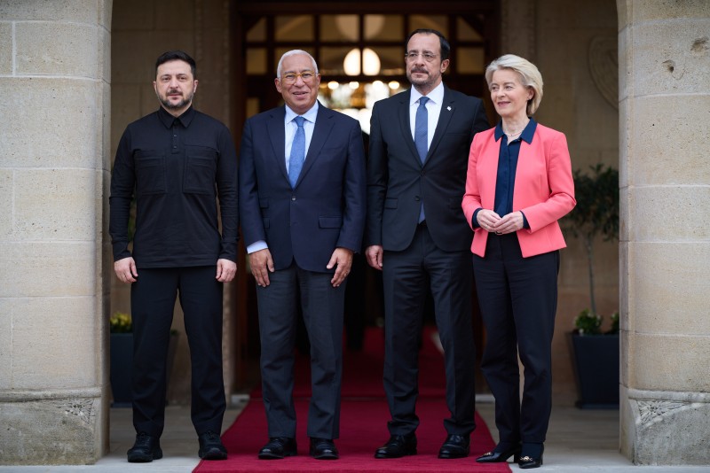 У Нікосії Президент України Володимир Зеленський провів спільну зустріч із Президентом Кіпру Нікосом Христодулідісом, Президентом Європейської ради Антоніу Коштою та Президенткою Європейської комісії Урсулою фон дер Ляєн.