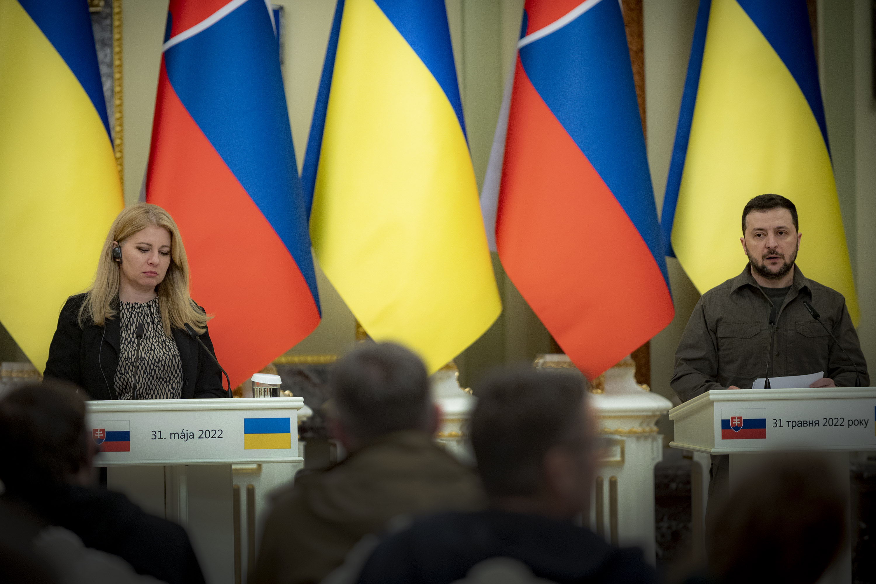 На східному фронті наразі складна ситуація через брак необхідної зброї, проте Україна звільнятиме свої території, орієнтуючись на ефективність ведення воєнних дій і максимальне збереження життів людей. Про це заявив Президент Володимир Зеленський під час зустрічі з представниками ЗМІ за результатами переговорів з Президентом Словацької Республіки Зузаною Чапутовою в Києві.