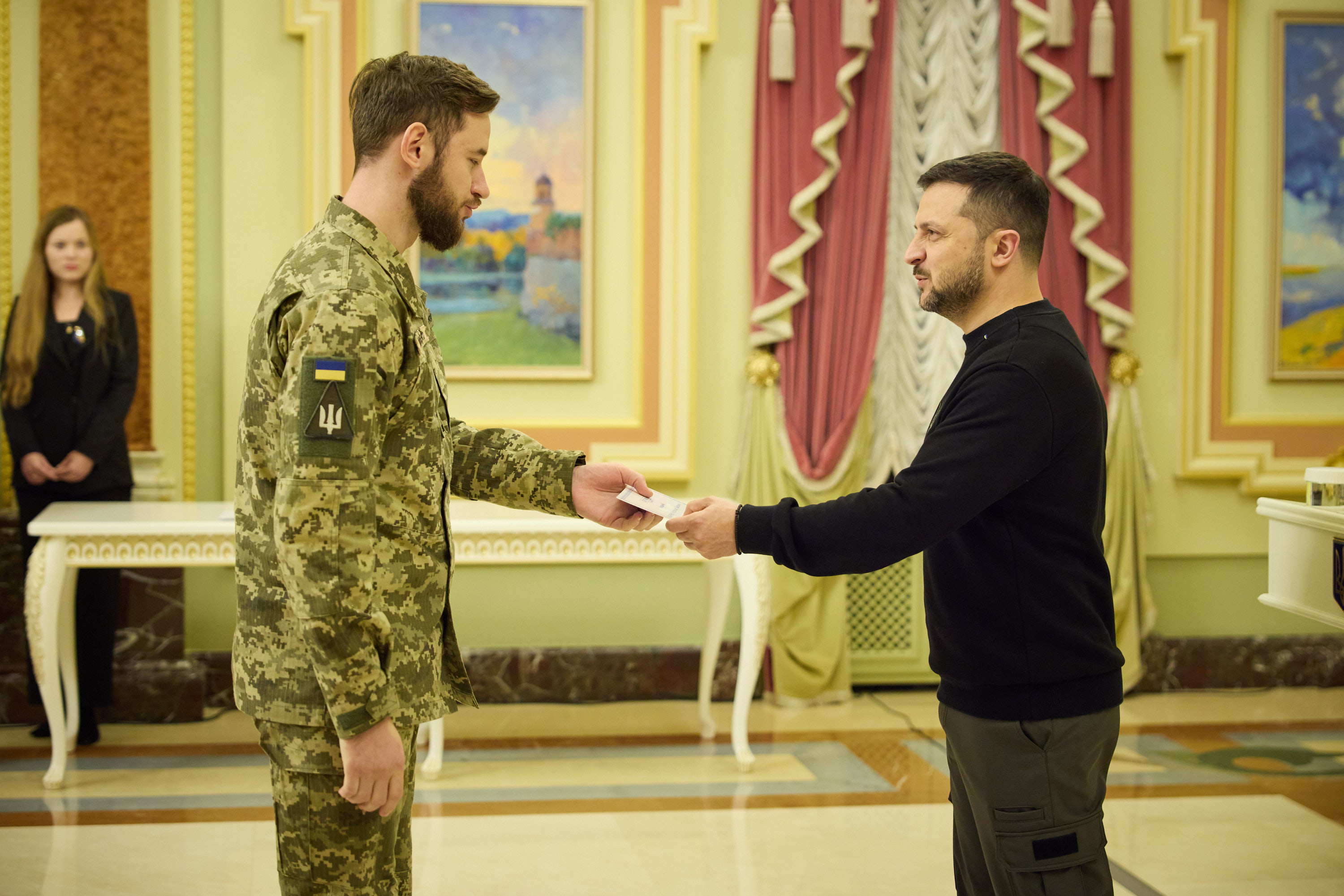 Зокрема, сертифікат із рук Президента одержала дружина командира парашутно-десантного батальйону майора Віталія Бохонка, який із початку повномасштабної агресії РФ відзначився в боях на Донбасі й загинув у липні 2022 року на Донеччині.