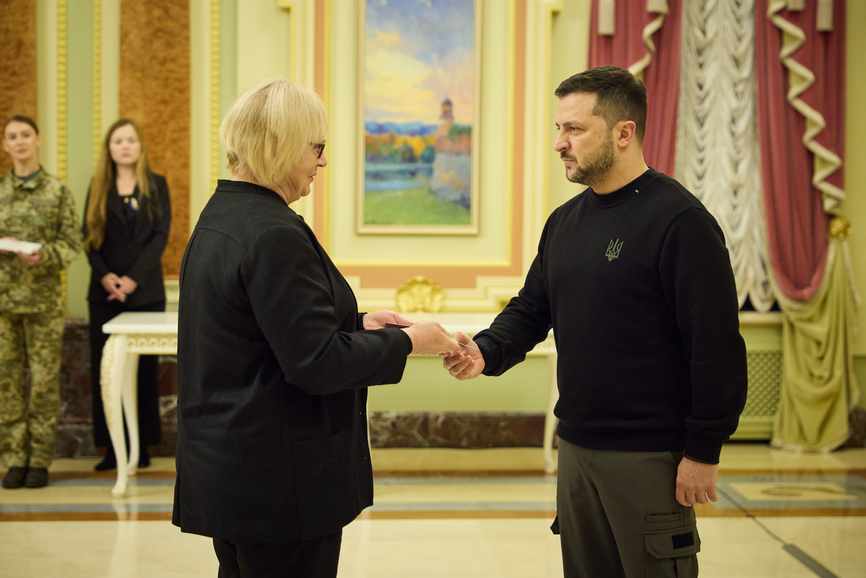 З рук Глави держави отримала сертифікат на житло й мати снайпера зенітно-артилерійського взводу роти вогневої підтримки солдата Олександра Мацієвського, якого розстріляли російські окупанти після відмови зняти шеврон зі словами «Слава Україні!».