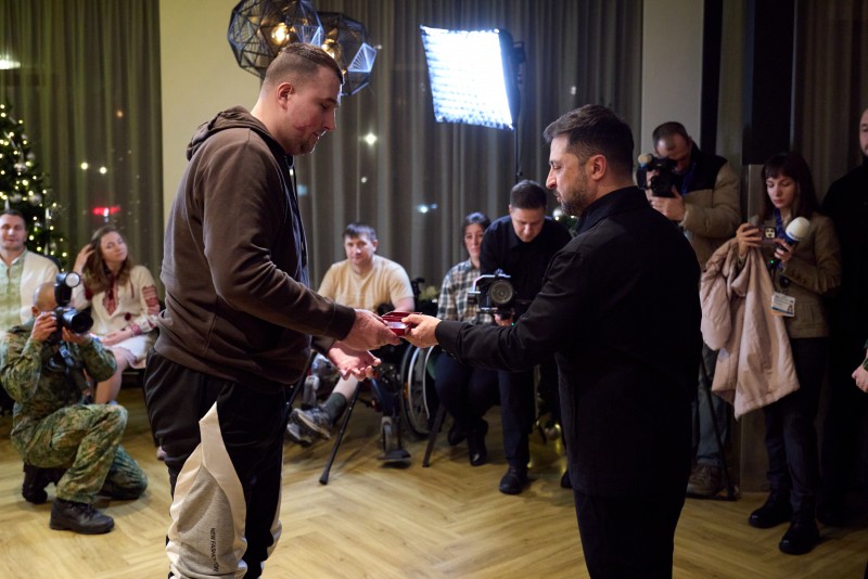 У військовому реабілітаційному центрі Аарденбург, що в Нідерландах, Президент України Володимир Зеленський зустрівся з українськими захисниками, які проходять реабілітацію після важких поранень, і відзначив їх державними нагородами.