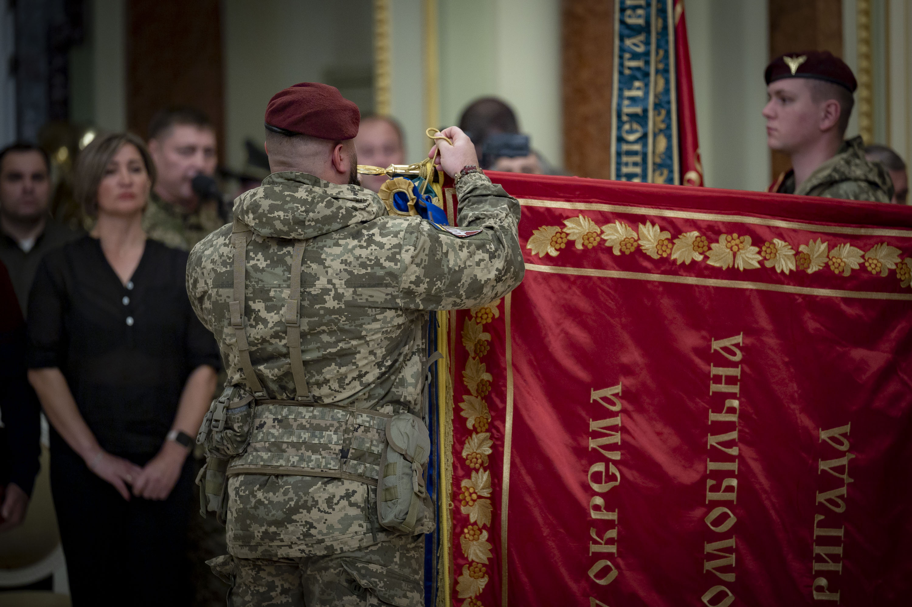 Президент передав відзнаку «За мужність та відвагу» 199-му навчальному центру Десантно-штурмових військ, а також присвоїв 77-й окремій десантно-штурмовій бригаді почесне найменування «Наддніпрянська» та 148-й окремій артилерійській бригаді – «Житомирська».