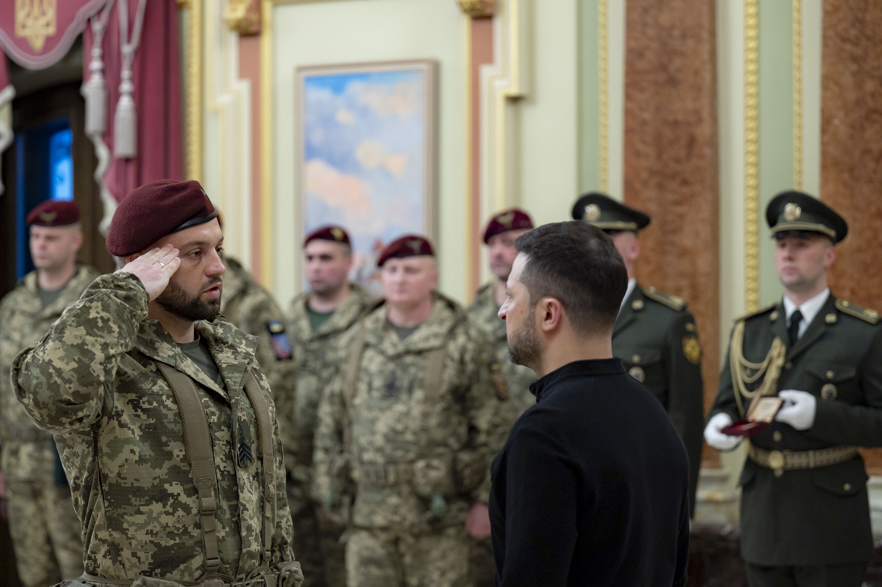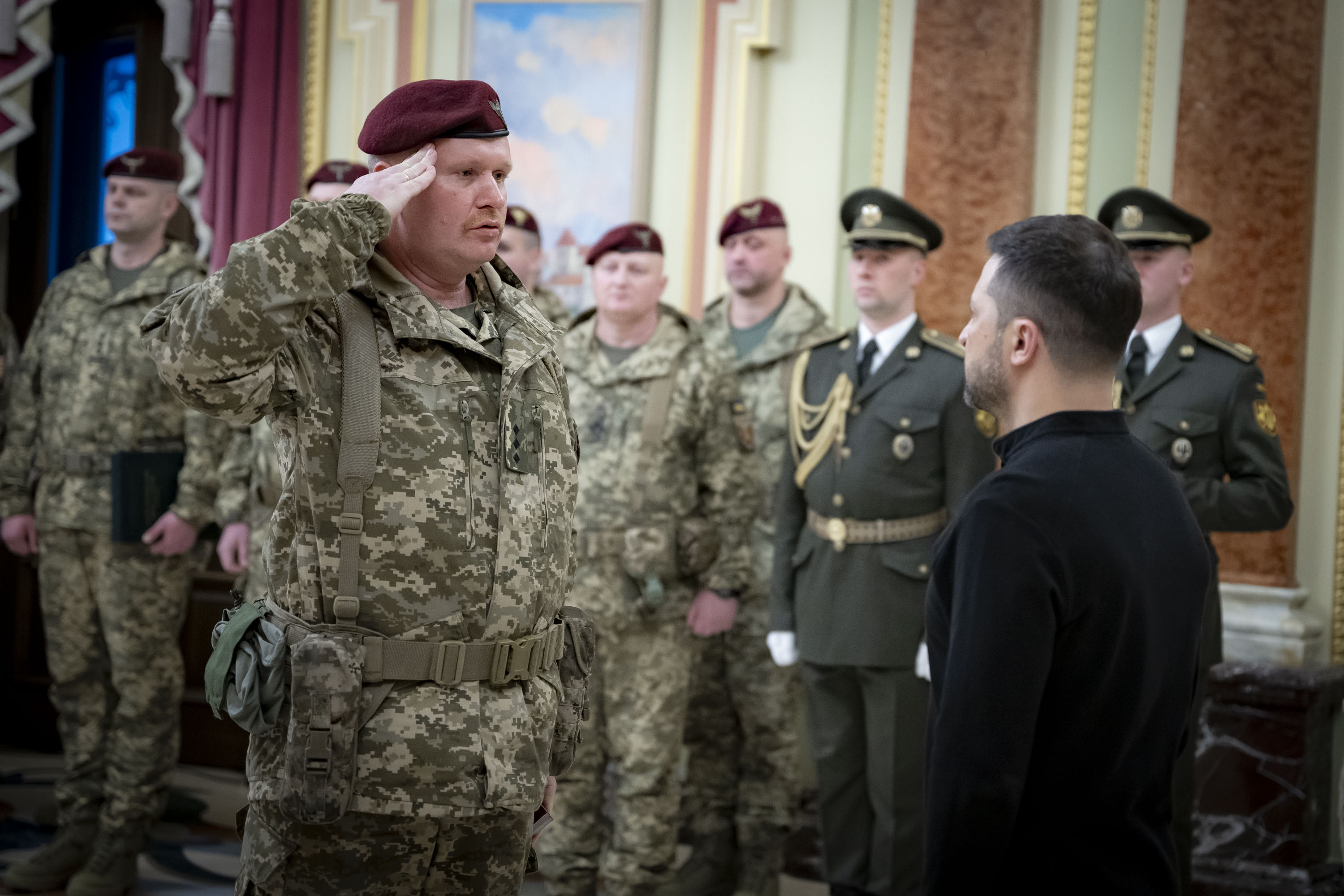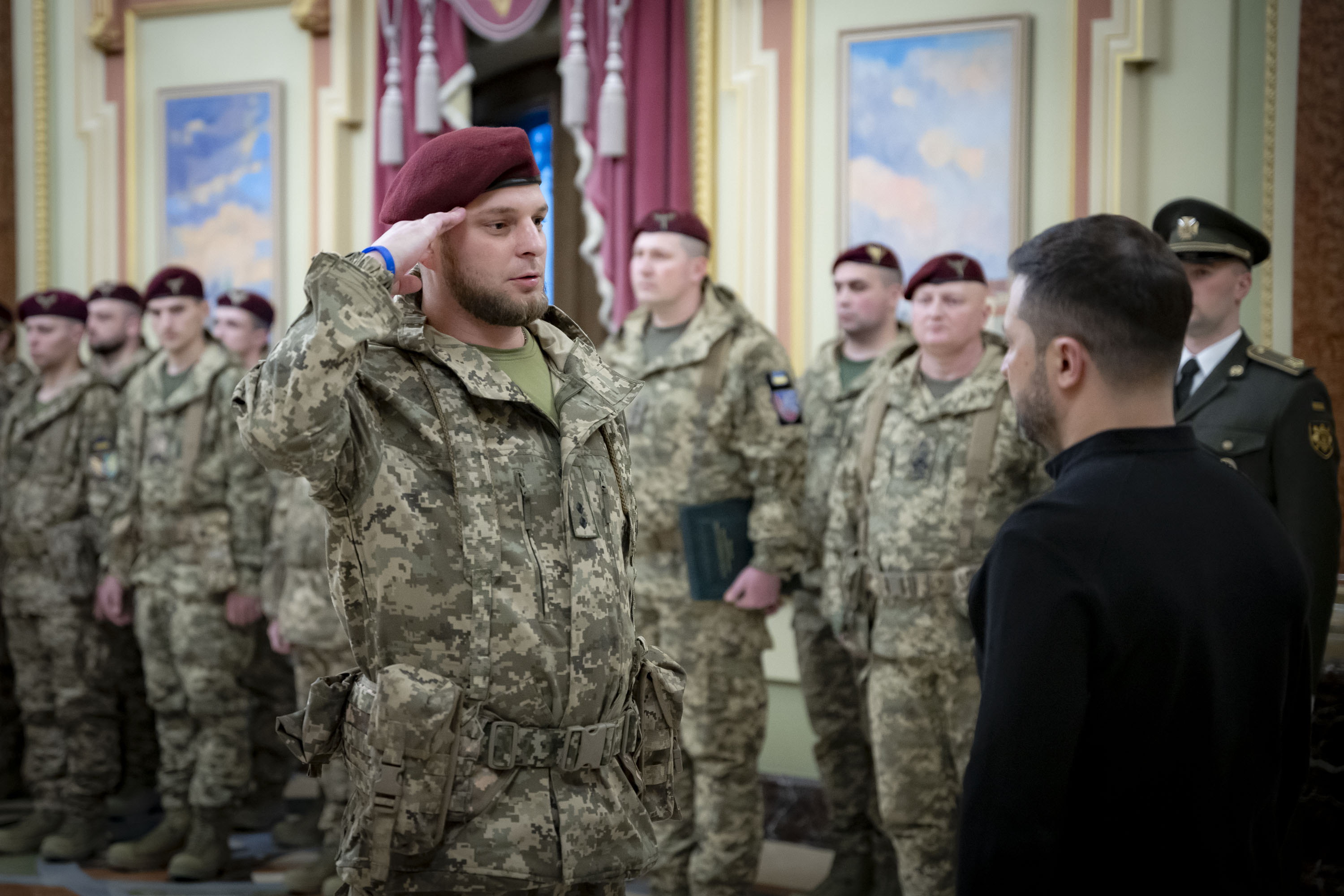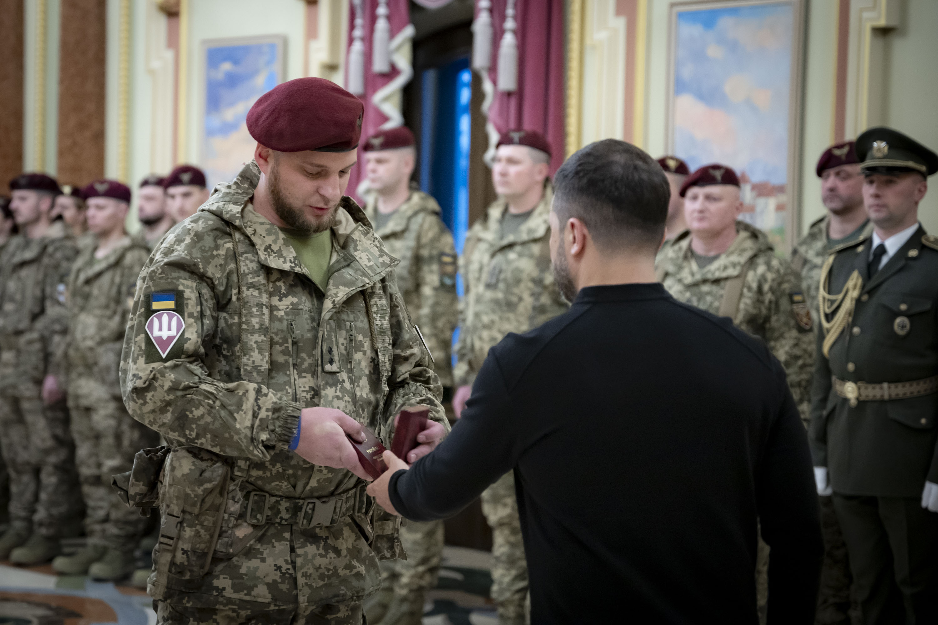 З нагоди Дня Десантно-штурмових військ Збройних Сил України Президент Володимир Зеленський зустрівся з військовими та рідними загиблих Героїв України і вручив державні нагороди.
