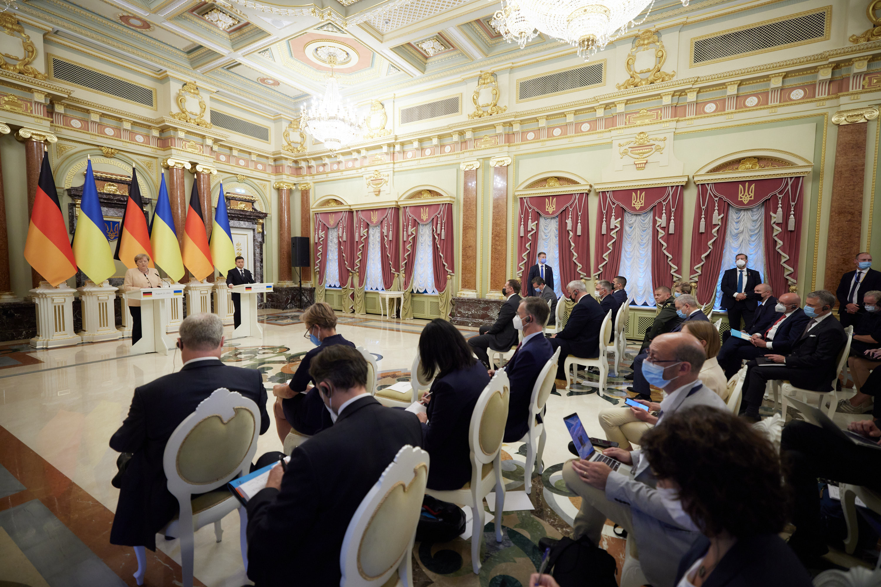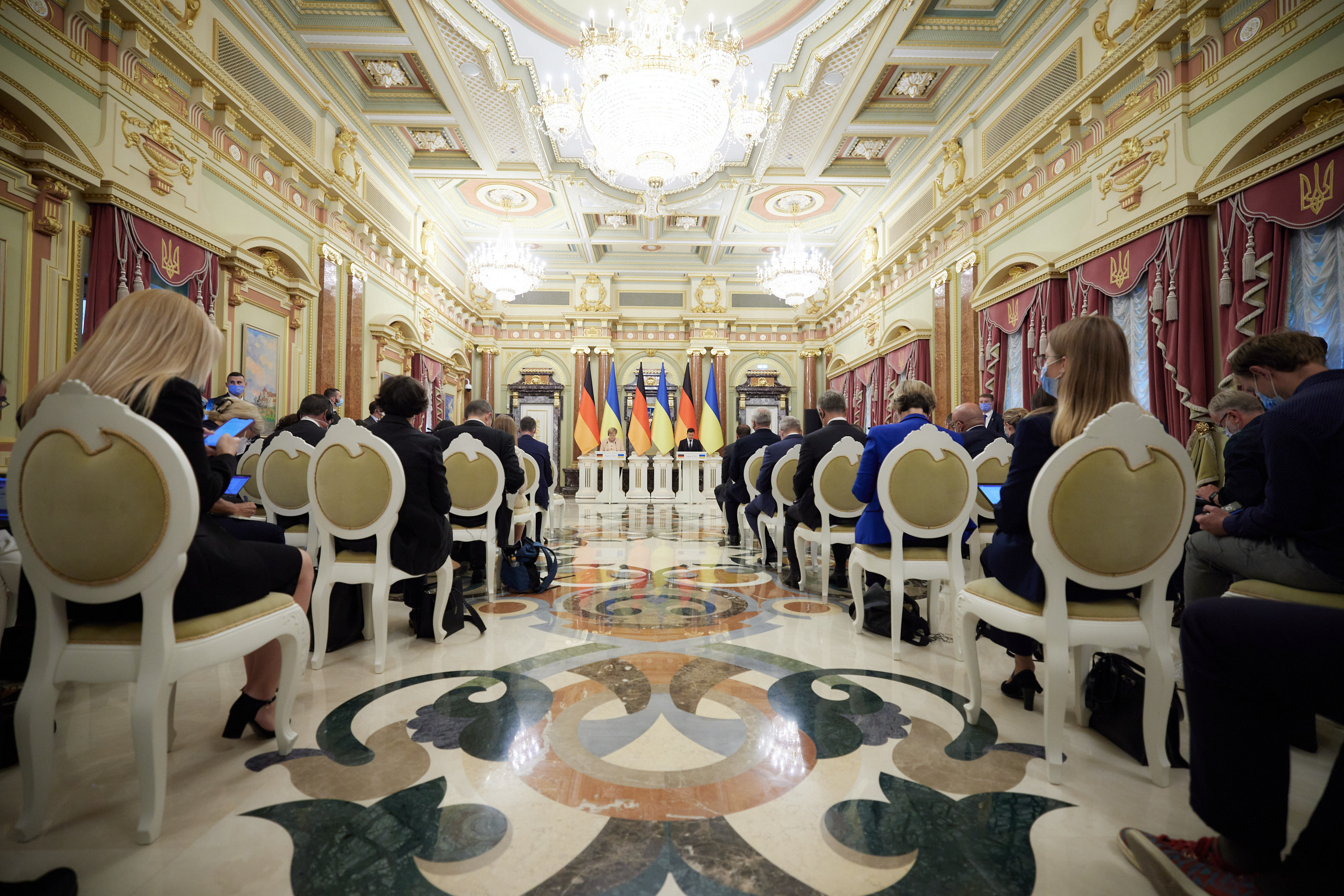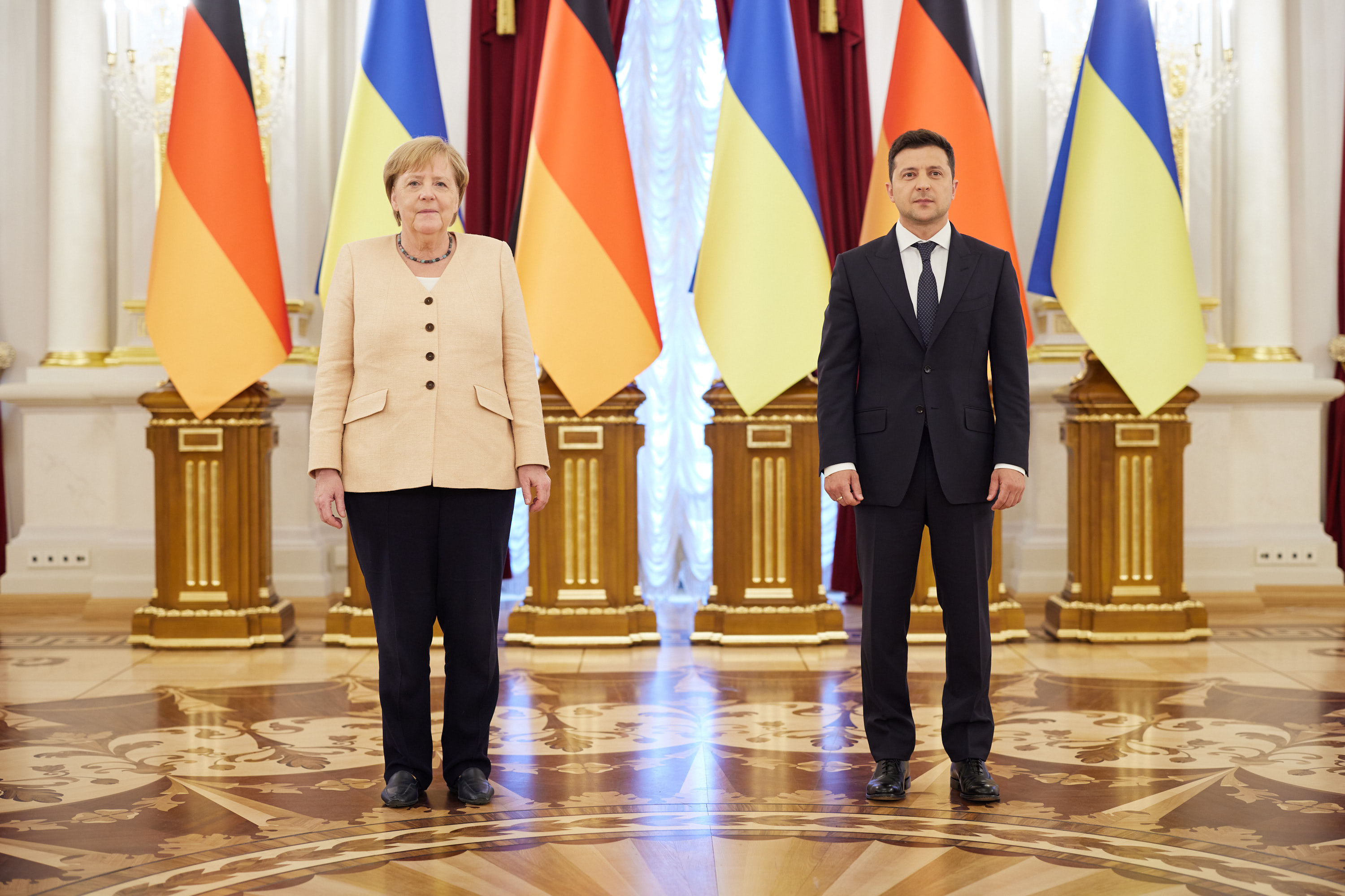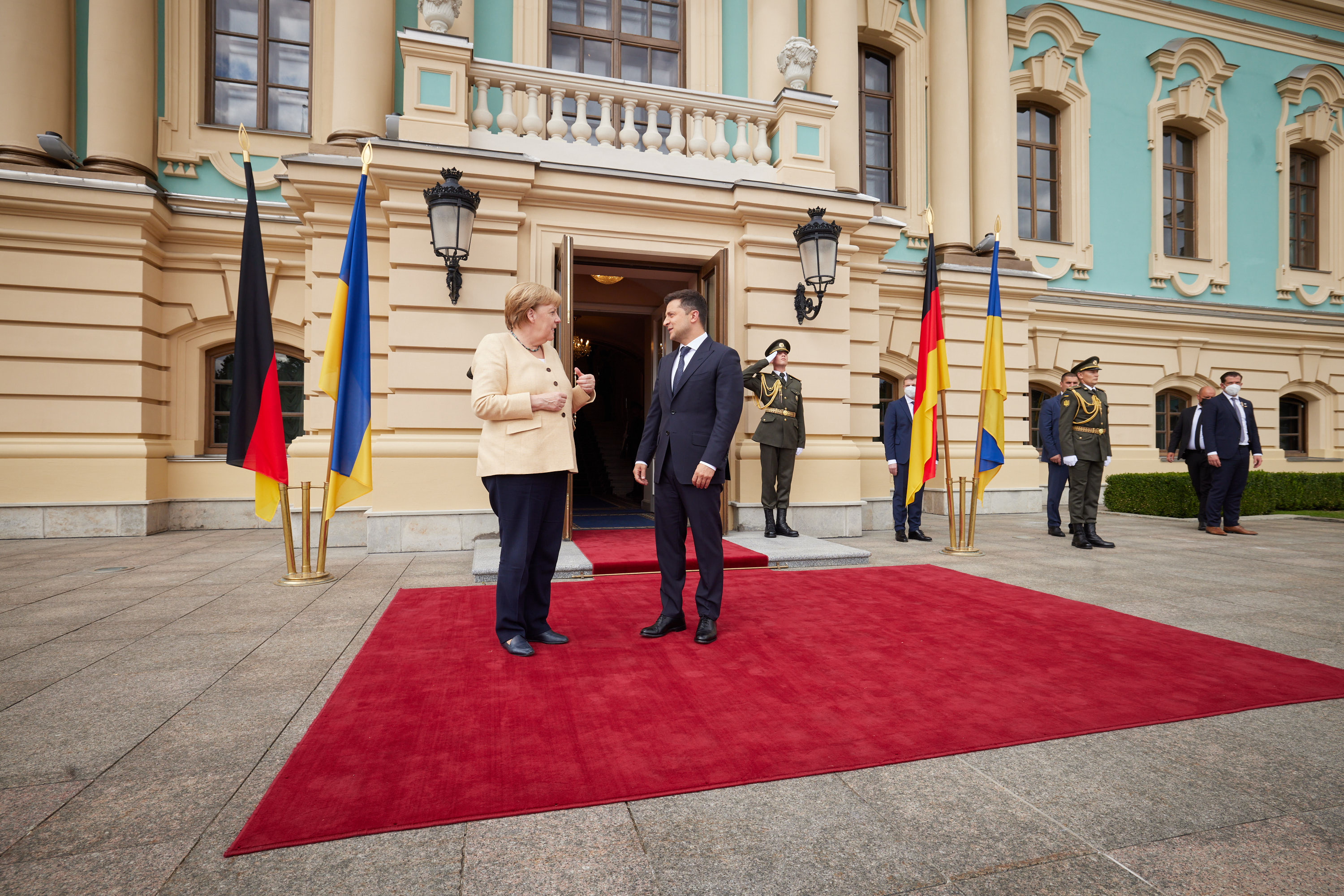 Наприкінці Володимир Зеленський подякував Ангелі Меркель за тверду підтримку України у ключових питаннях. На знак вдячності за багаторічну підтримку нашої держави Президент відзначив канцлера ФРН державною нагородою – орденом Свободи.