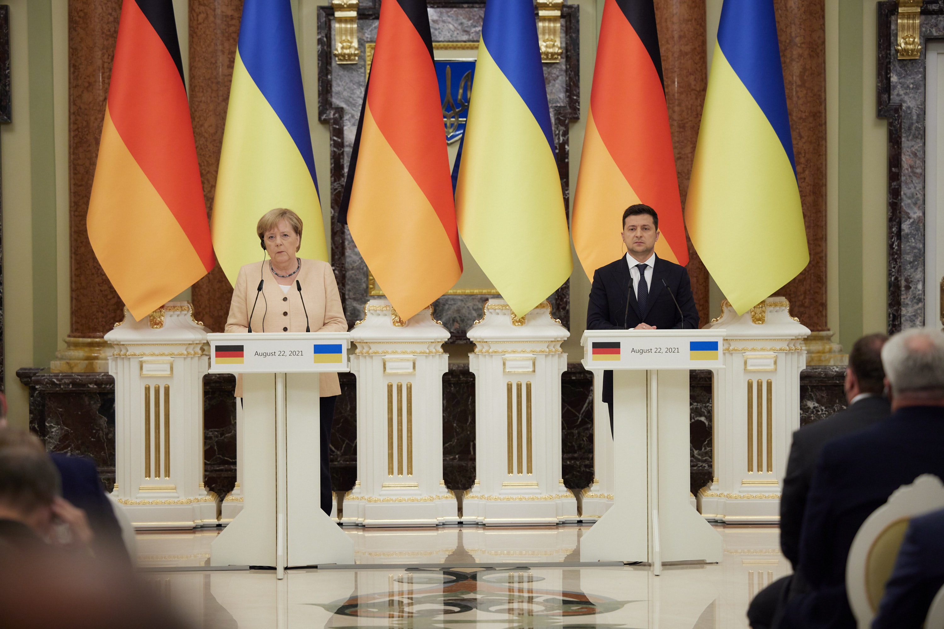 «У вересні Німеччина обиратиме нового канцлера. Особисто я переконаний, що пані Меркель залишиться активним учасником політичного життя Німеччини та Європи. Але знайте, що в будь-якому разі, у будь-якому статусі й у будь-який час ви завжди є й будете бажаним гостем в Україні. Дякую», – резюмував Володимир Зеленський.