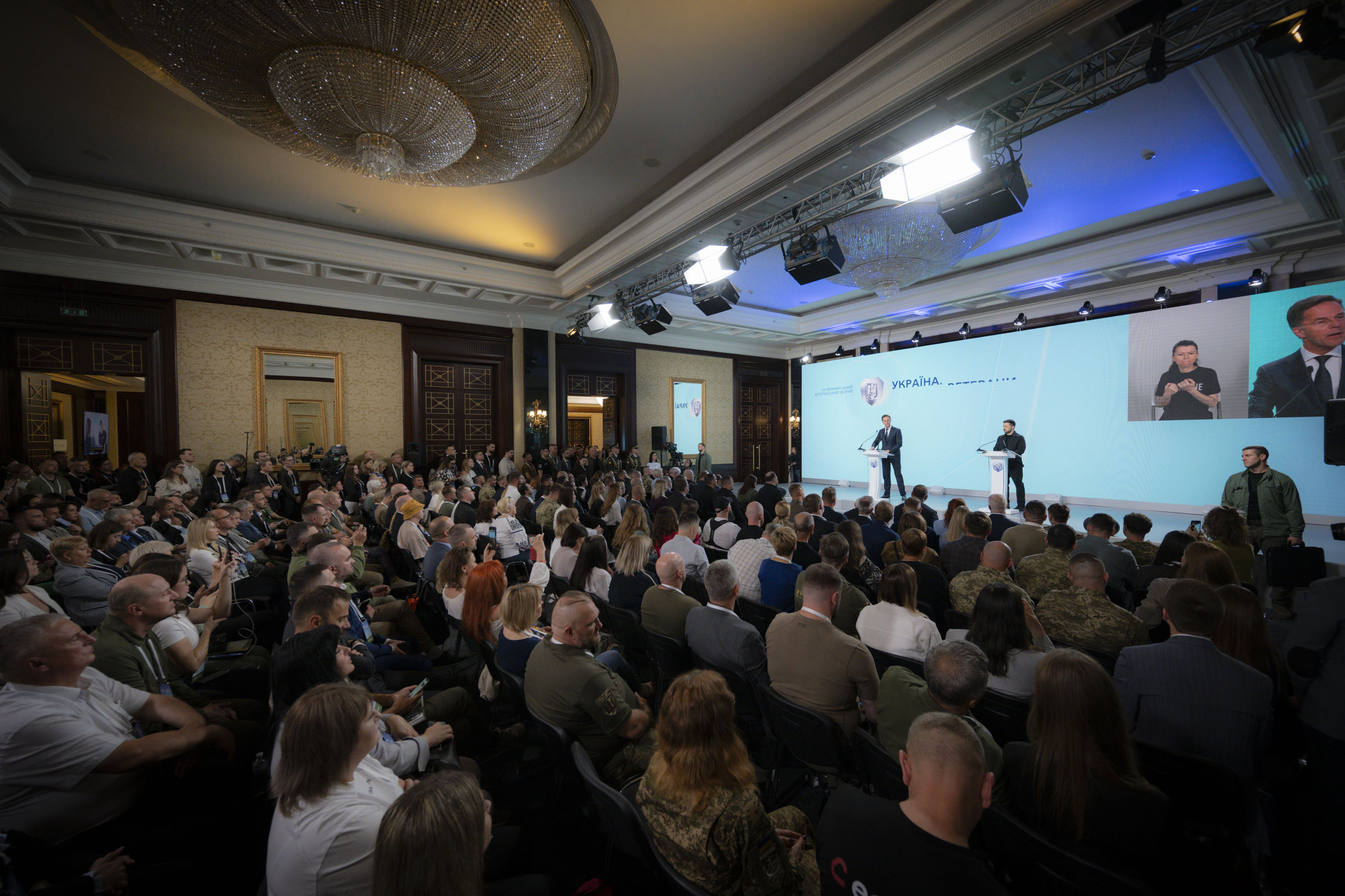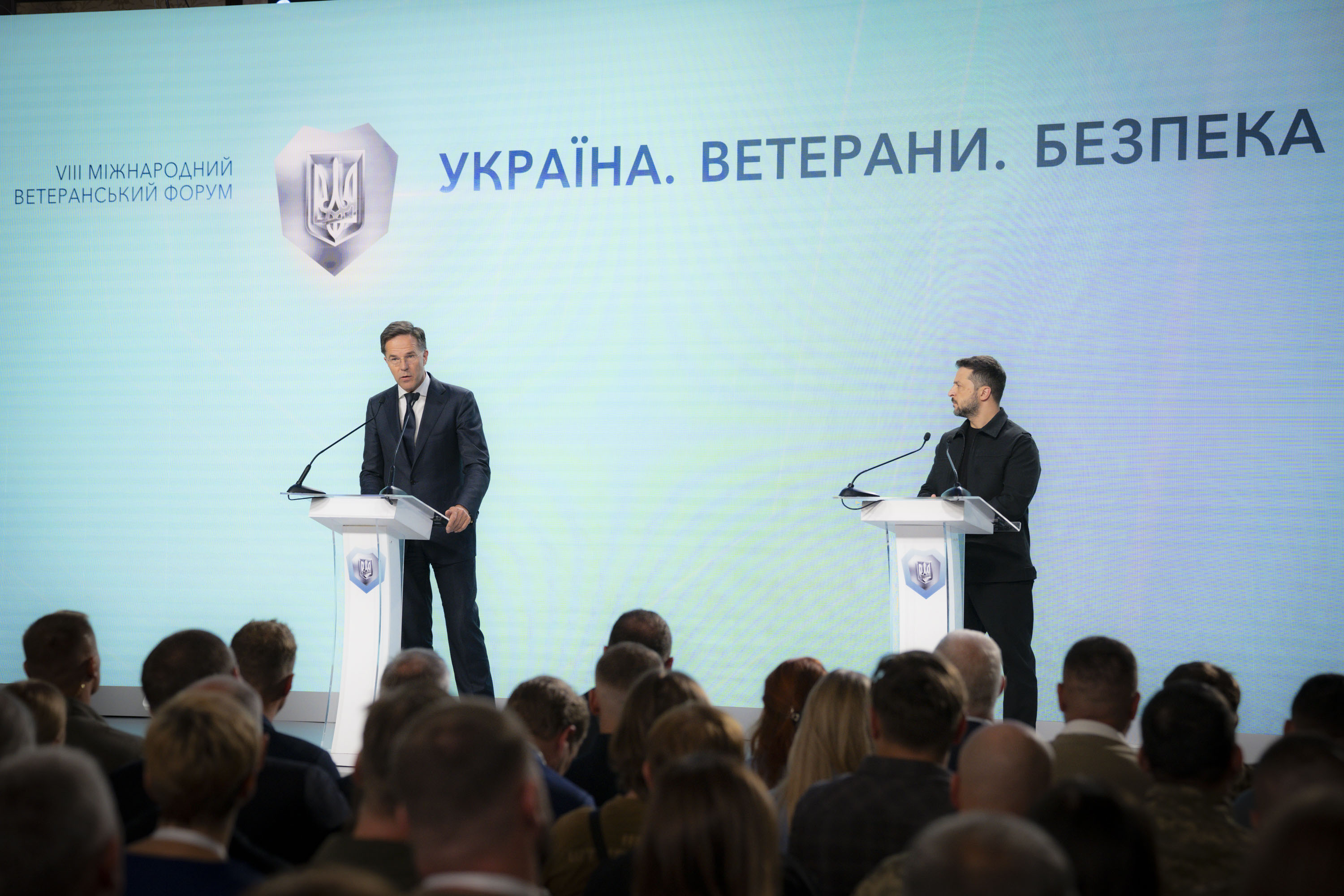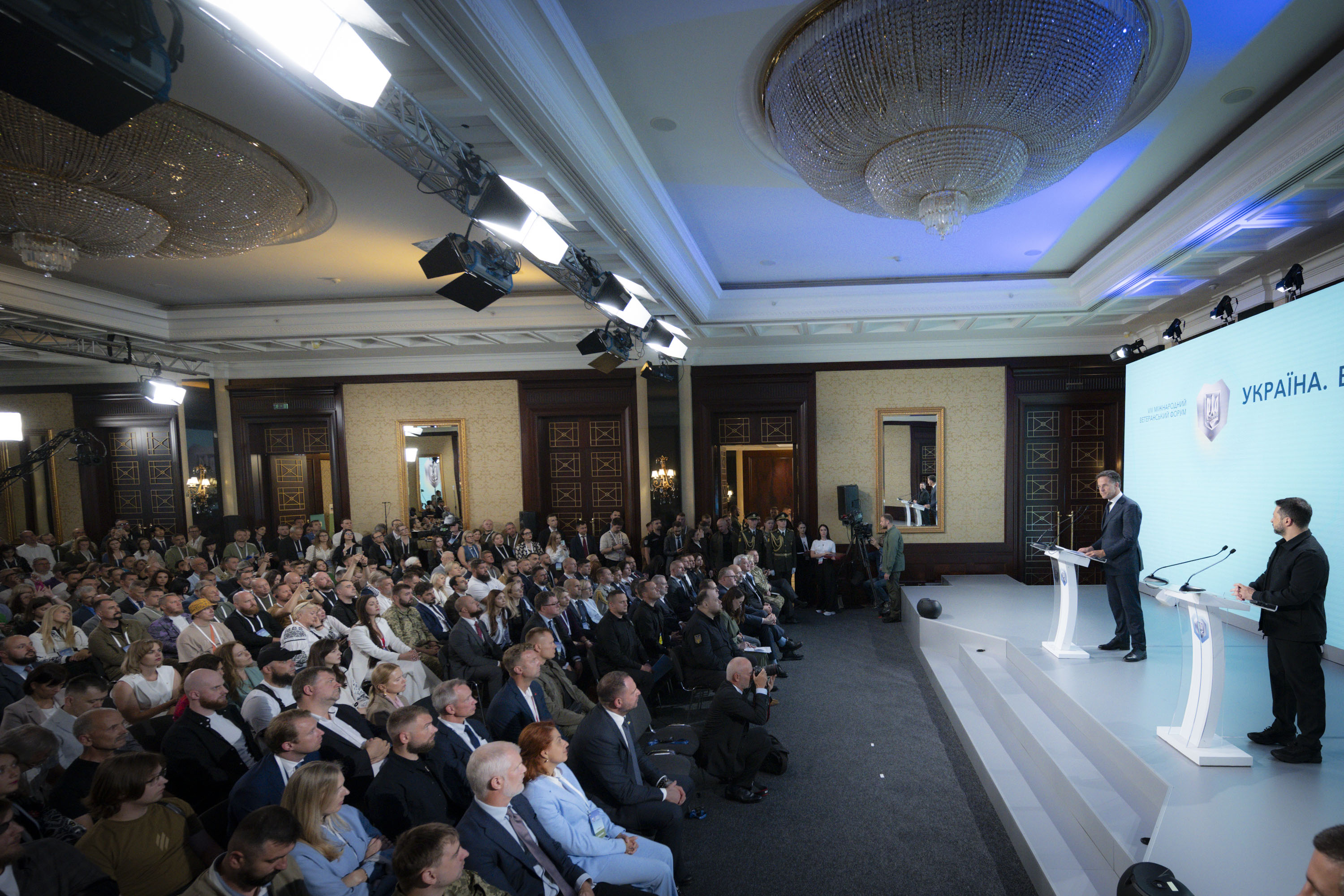 Президент України Володимир Зеленський і Генеральний секретар НАТО Марк Рютте взяли участь у VІІІ Міжнародному ветеранському форумі «Україна. Ветерани. Безпека». Цей захід уже традиційно проводять напередодні Дня Незалежності України.