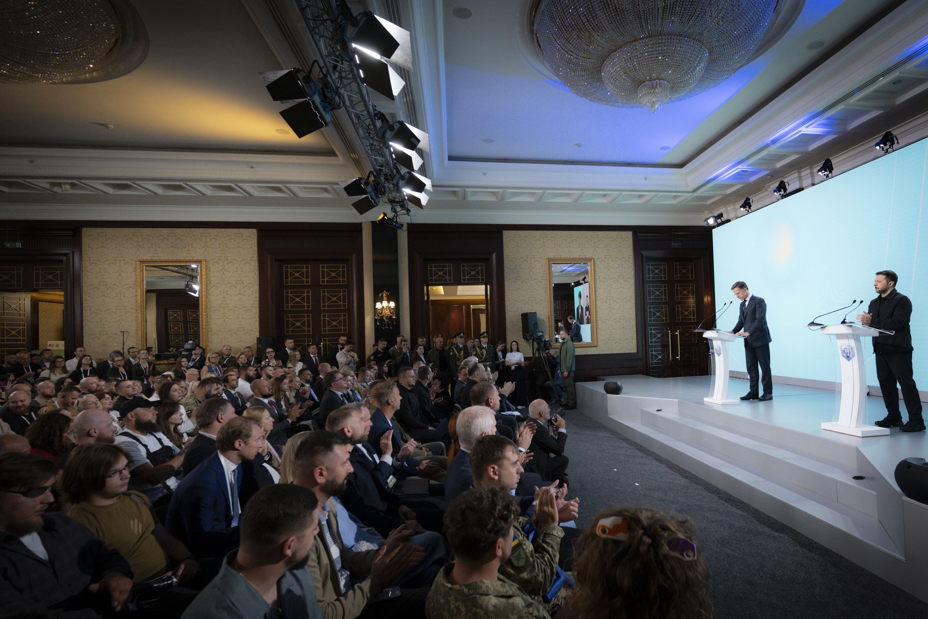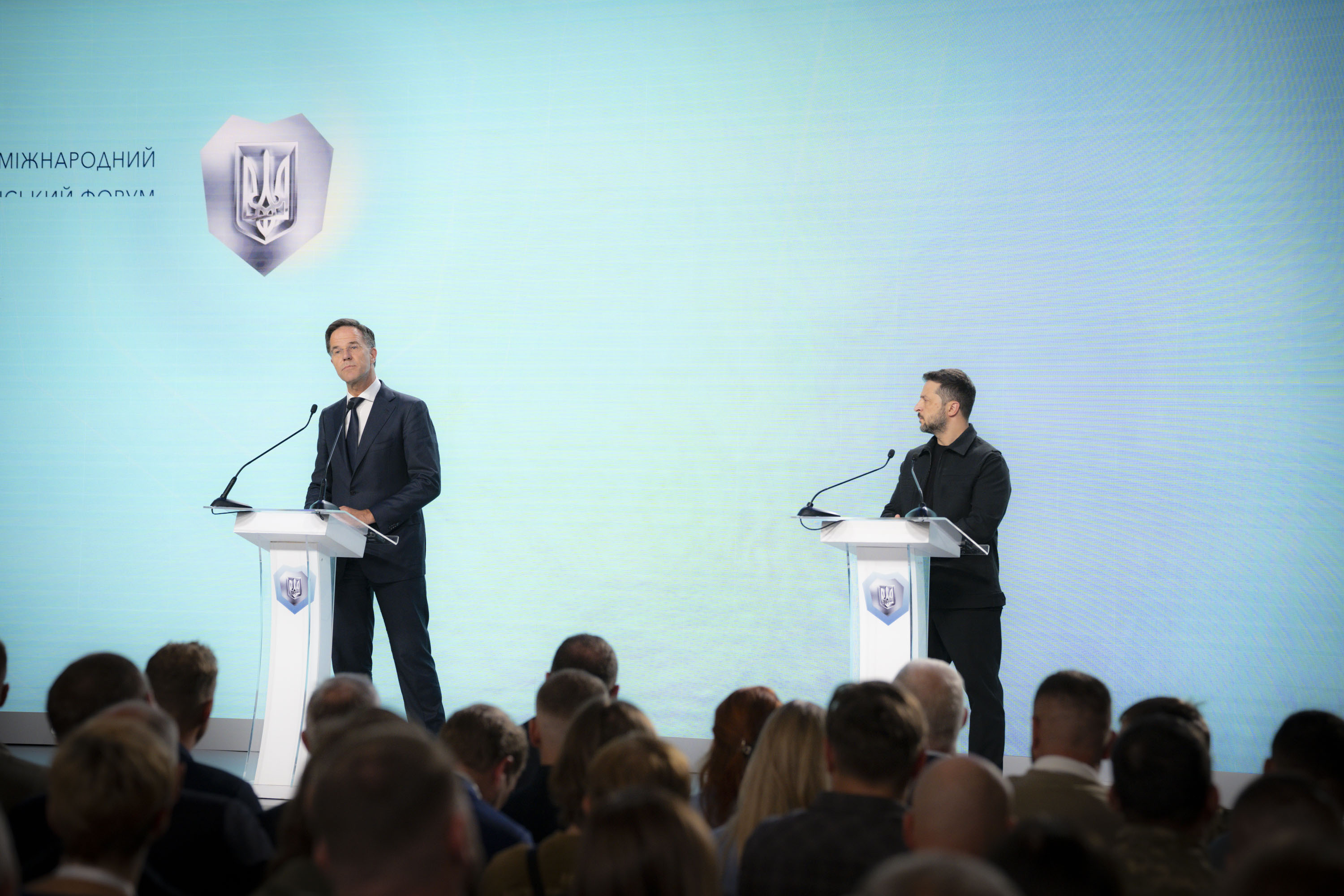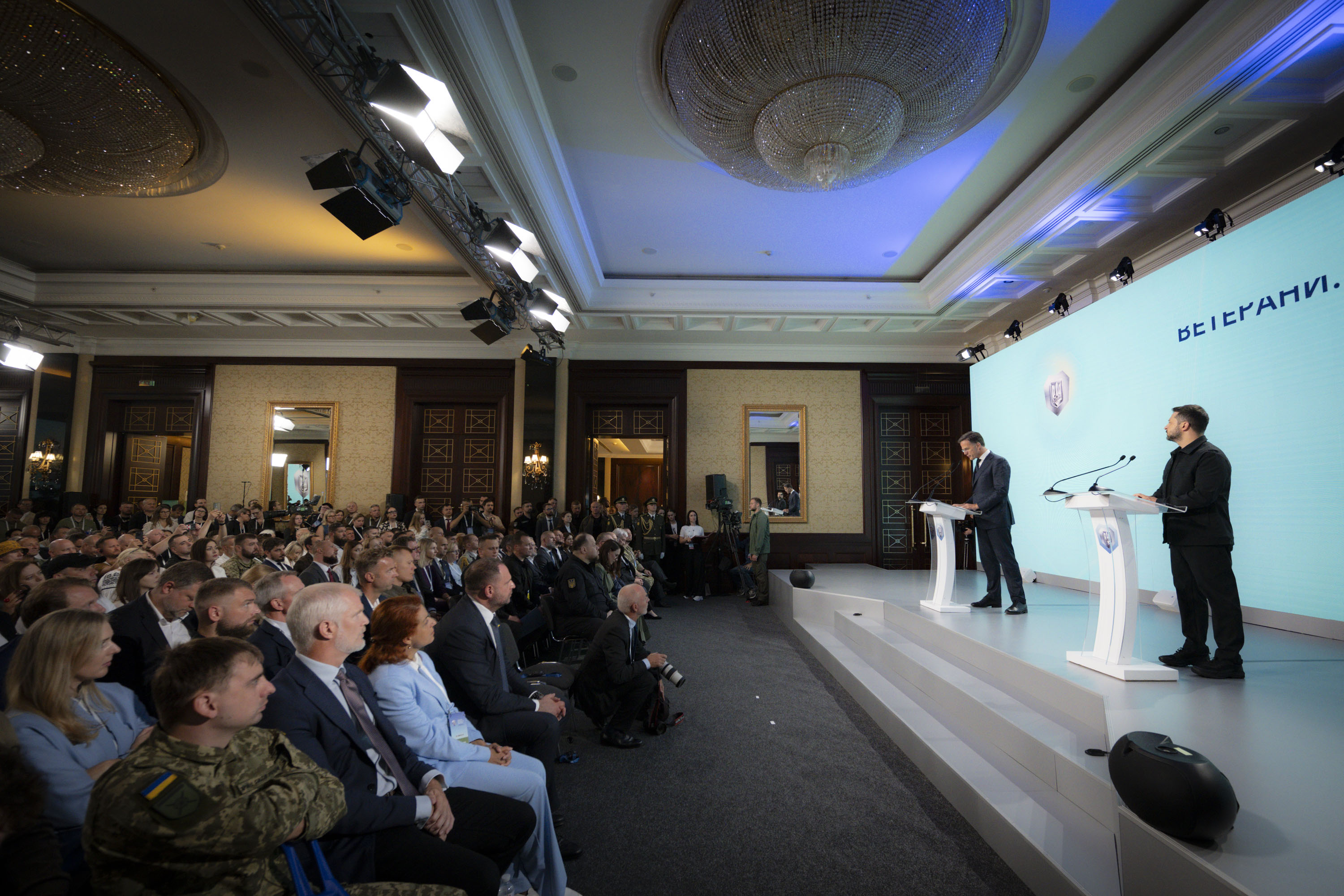 Президент України Володимир Зеленський і Генеральний секретар НАТО Марк Рютте взяли участь у VІІІ Міжнародному ветеранському форумі «Україна. Ветерани. Безпека». Цей захід уже традиційно проводять напередодні Дня Незалежності України.