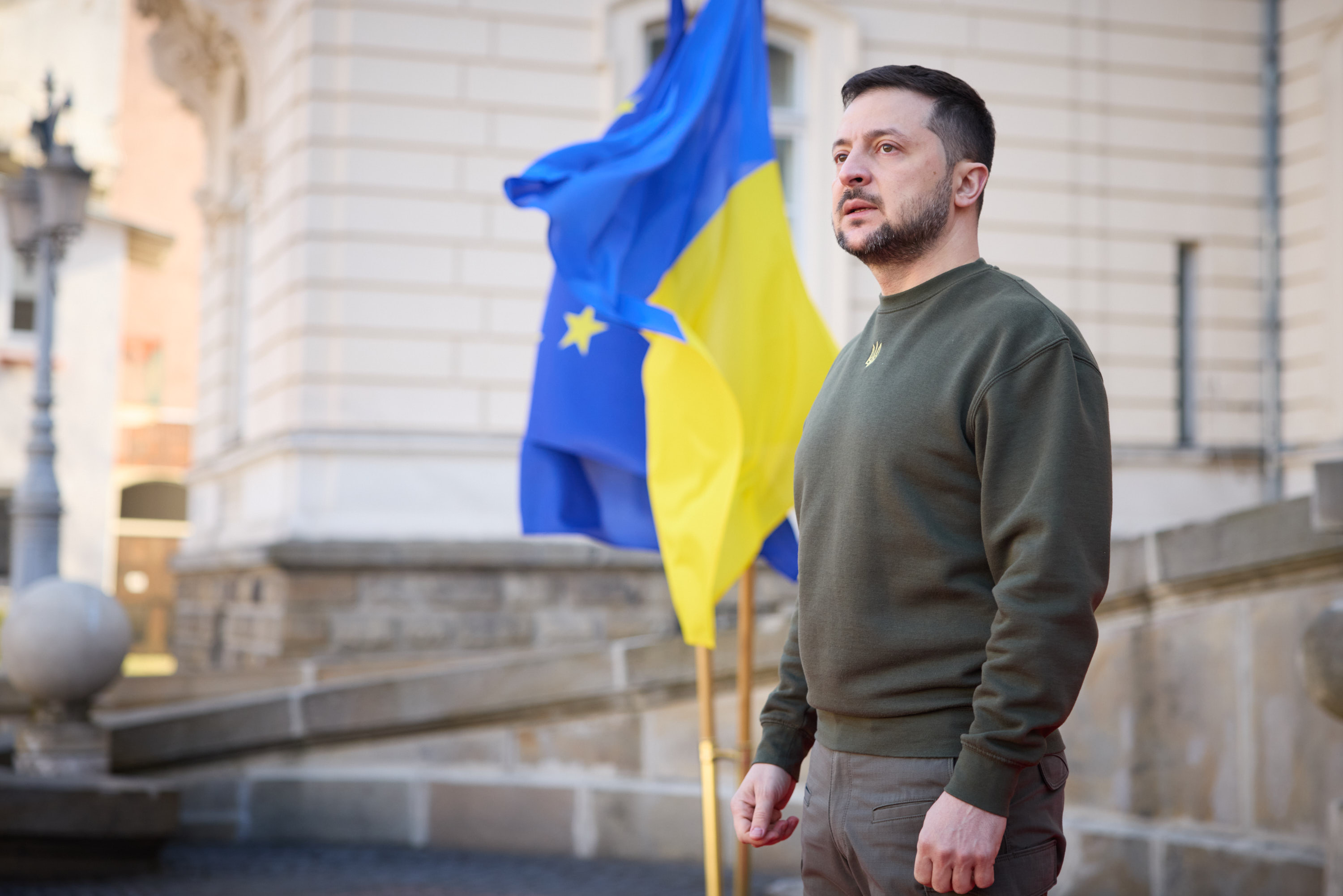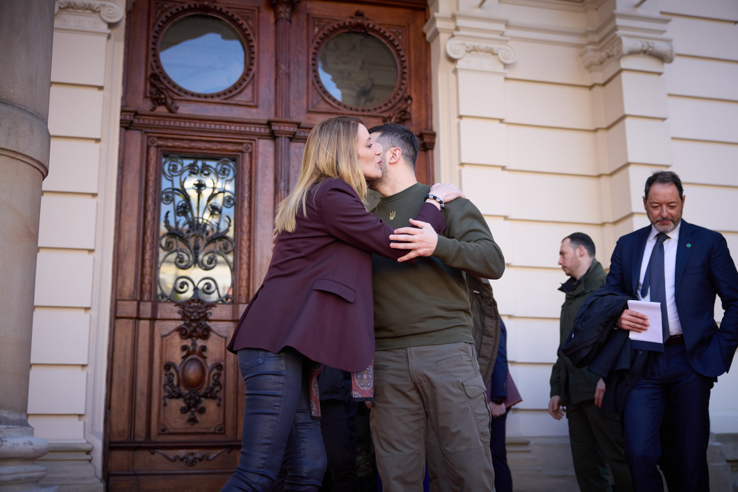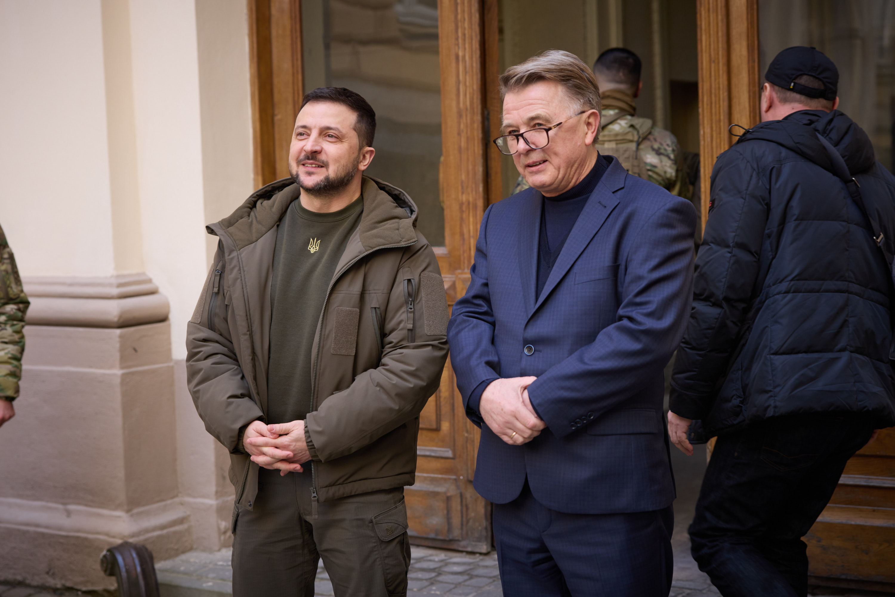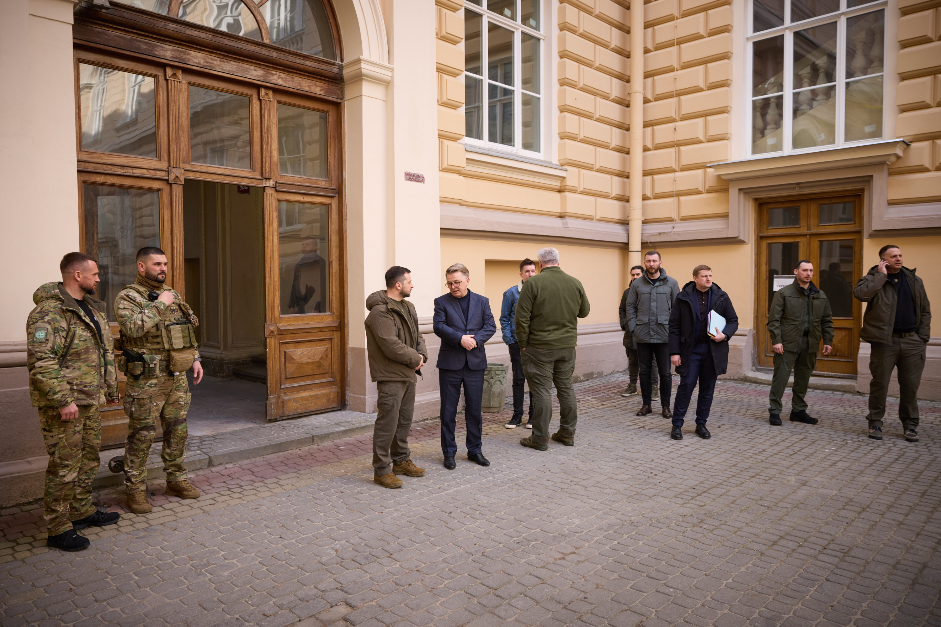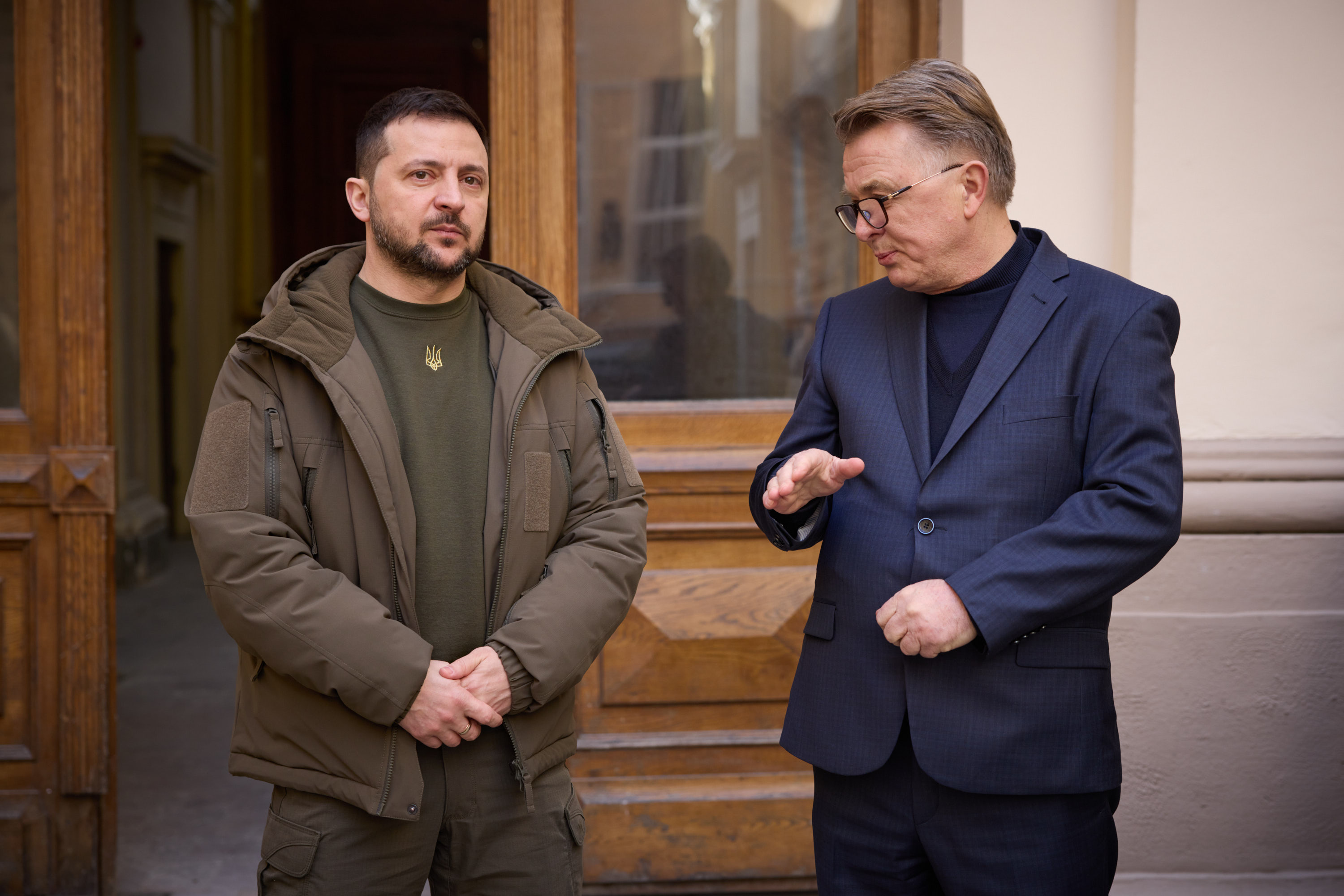 Під час робочої поїздки до Львівської області Президент України Володимир Зеленський відвідав один із госпіталів, де лікуються поранені українські захисники, які воювали, зокрема, на Бахмутському напрямку.