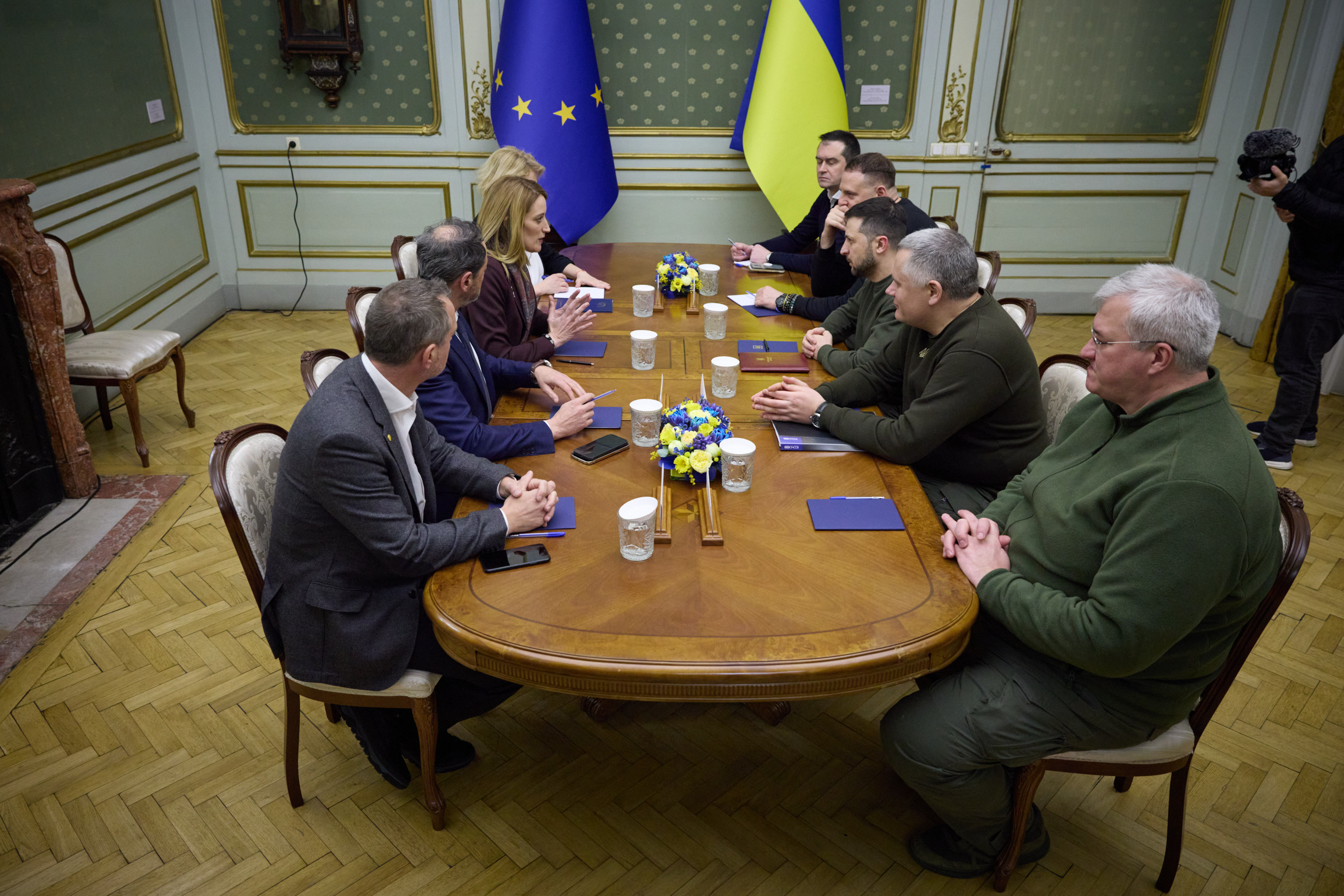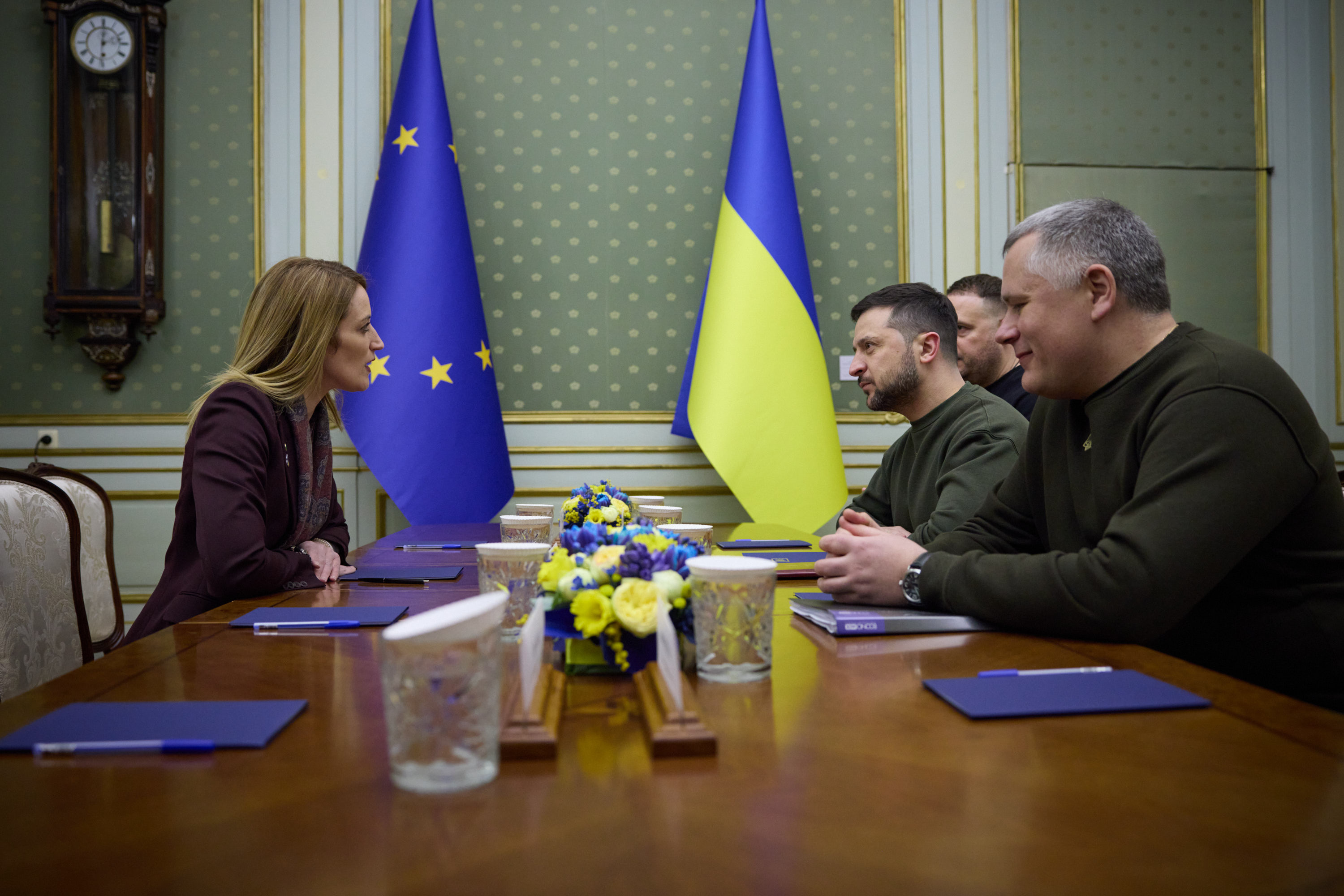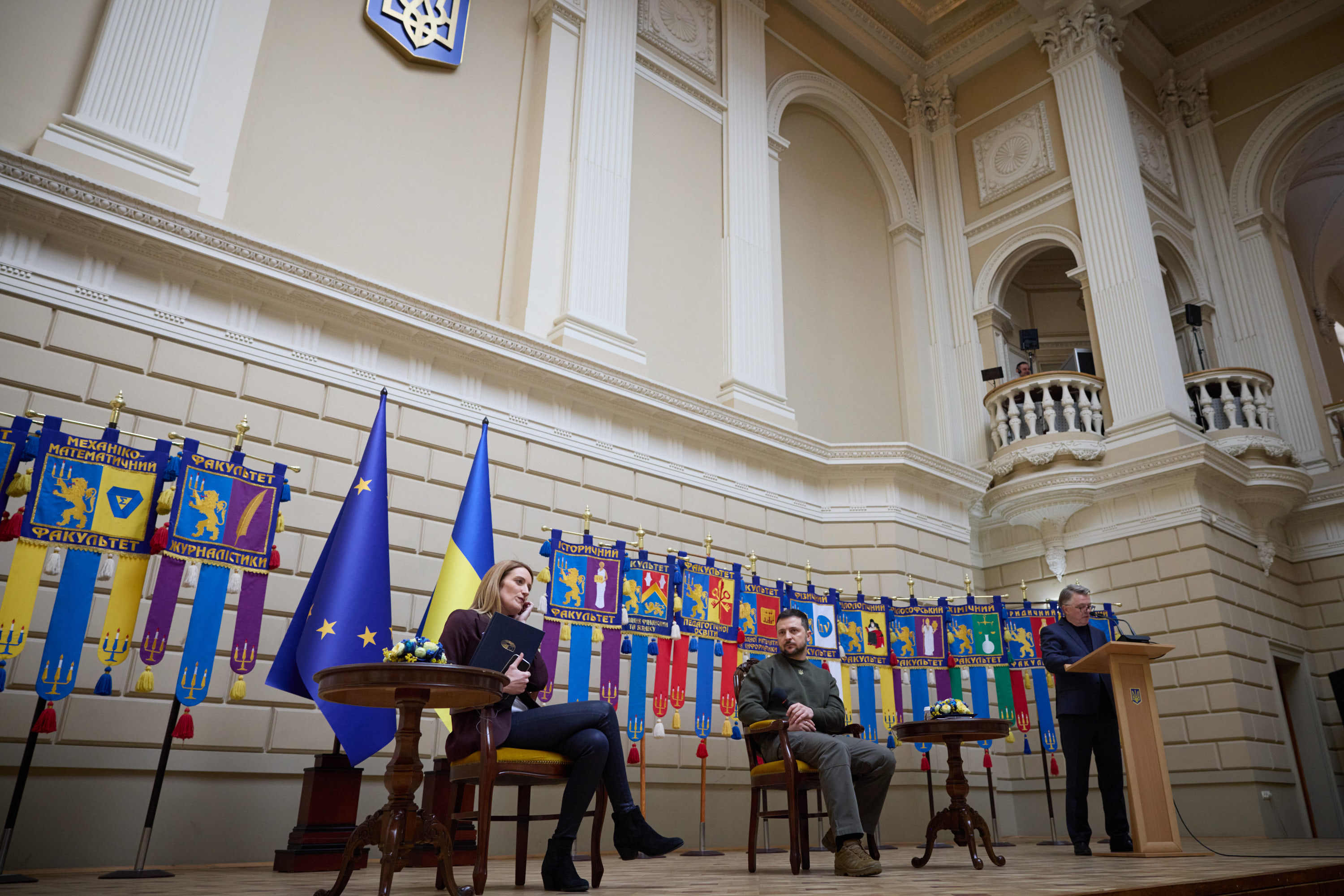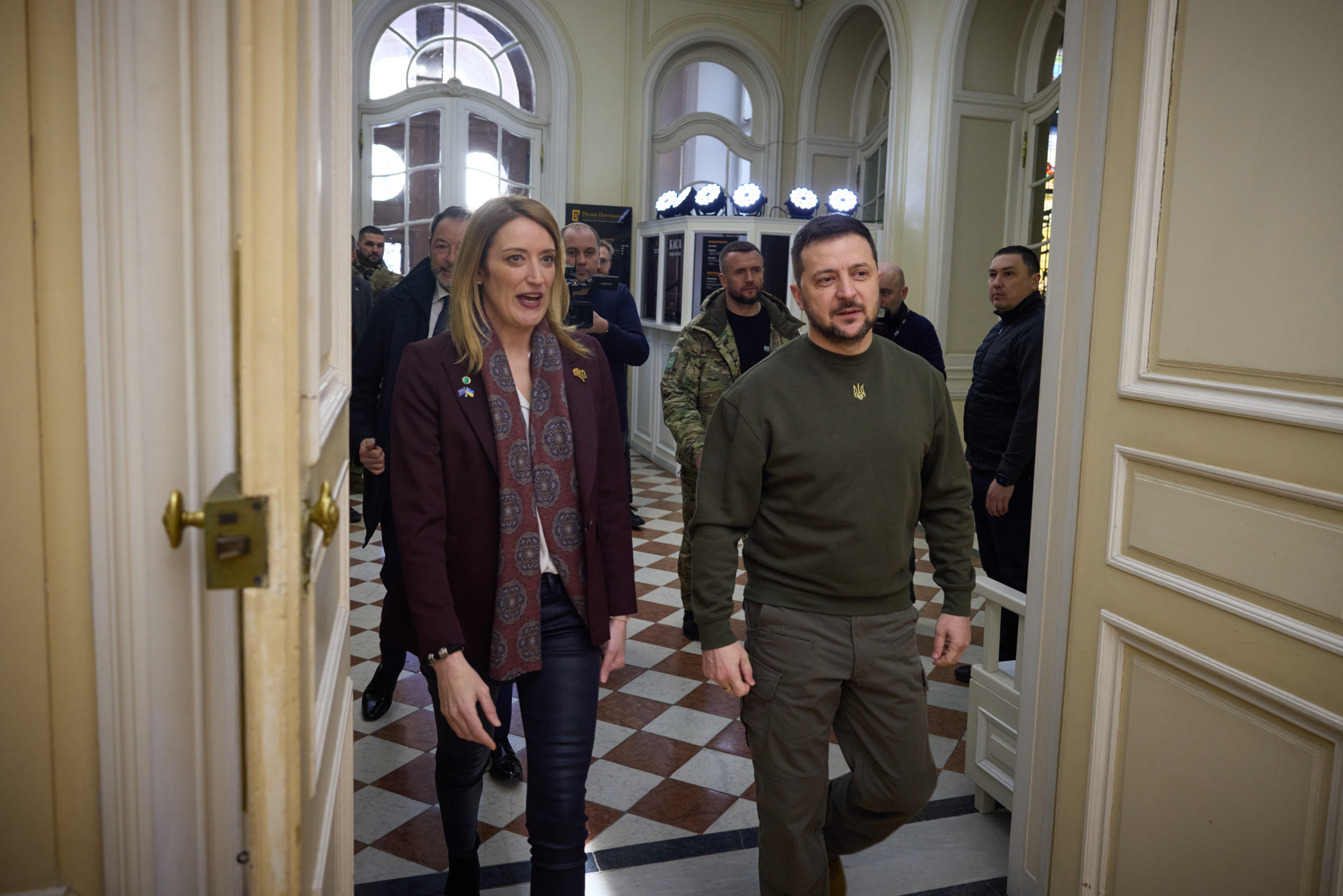 Під час робочої поїздки до Львівської області Президент України Володимир Зеленський відвідав один із госпіталів, де лікуються поранені українські захисники, які воювали, зокрема, на Бахмутському напрямку.