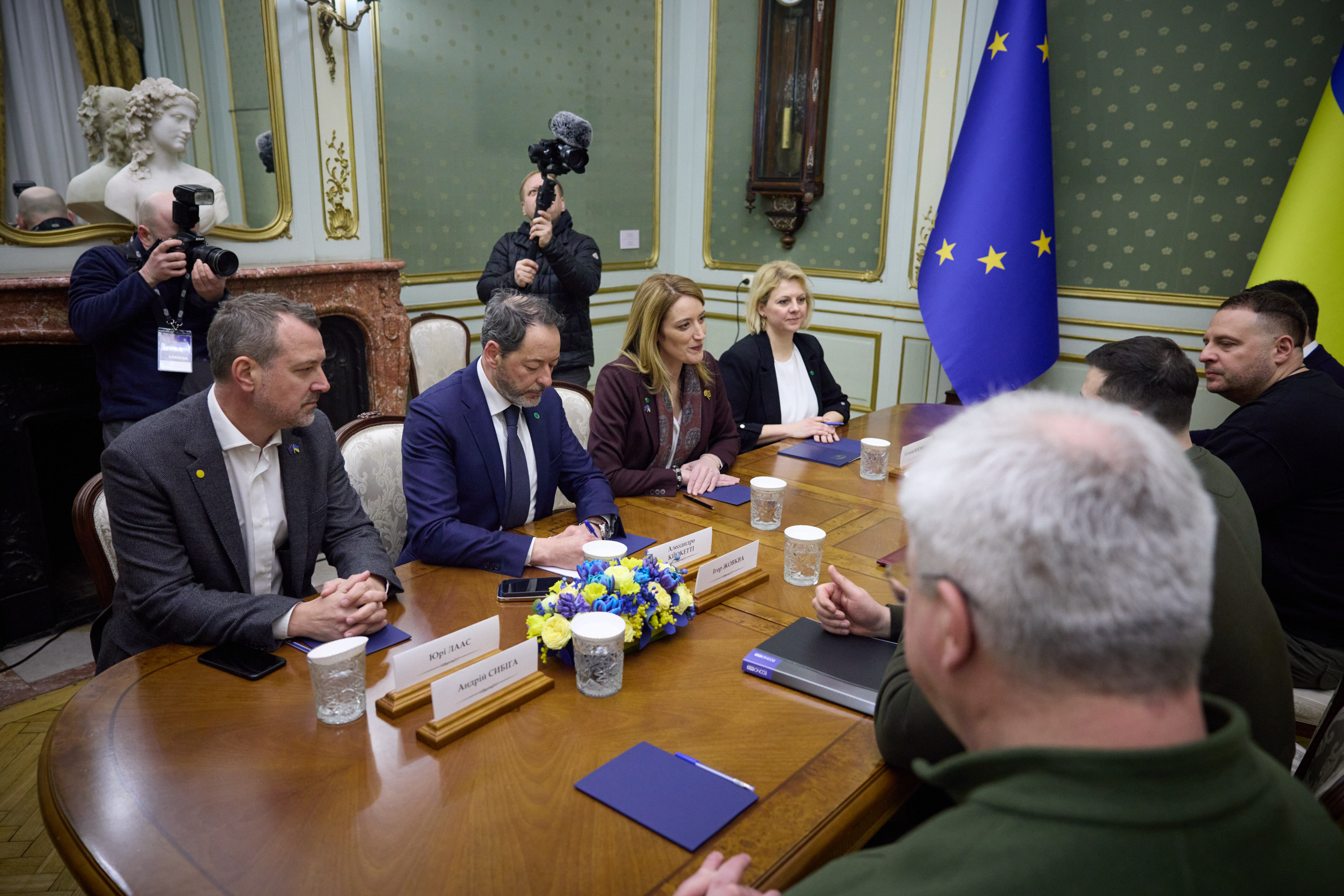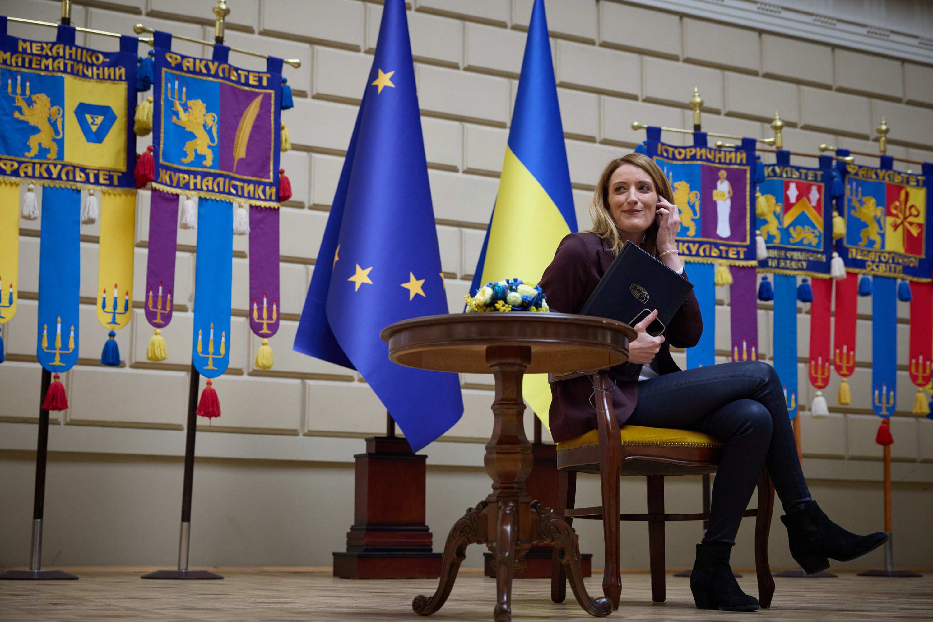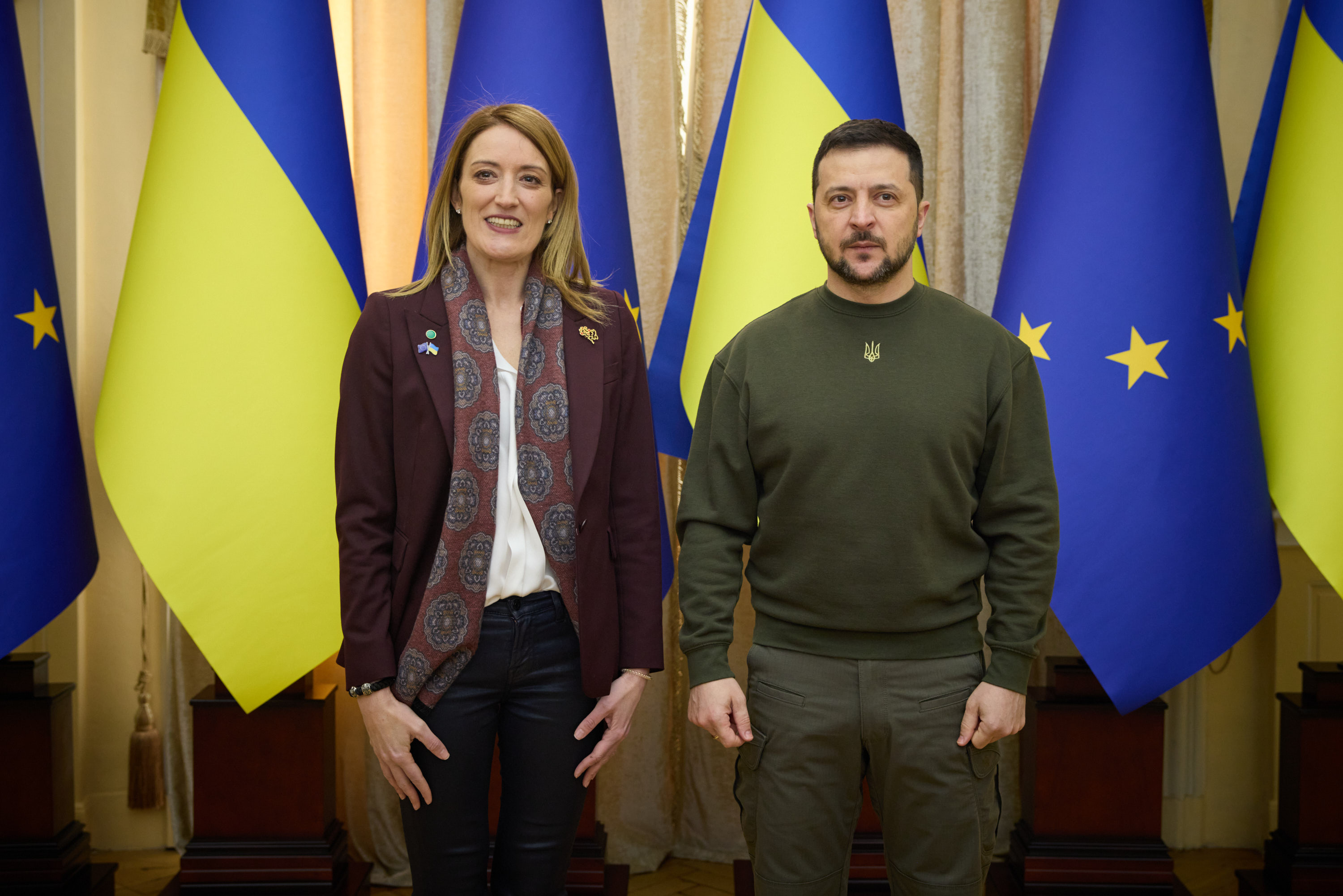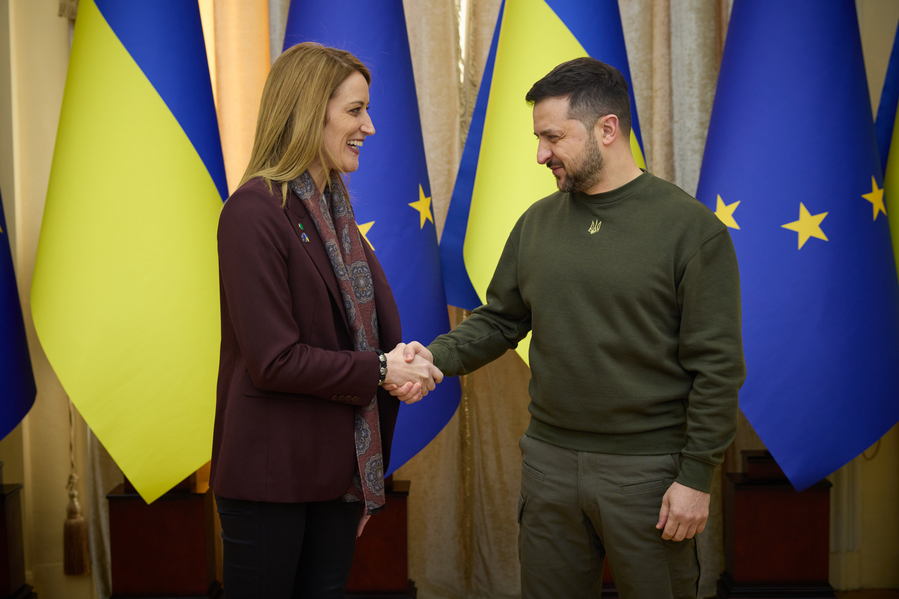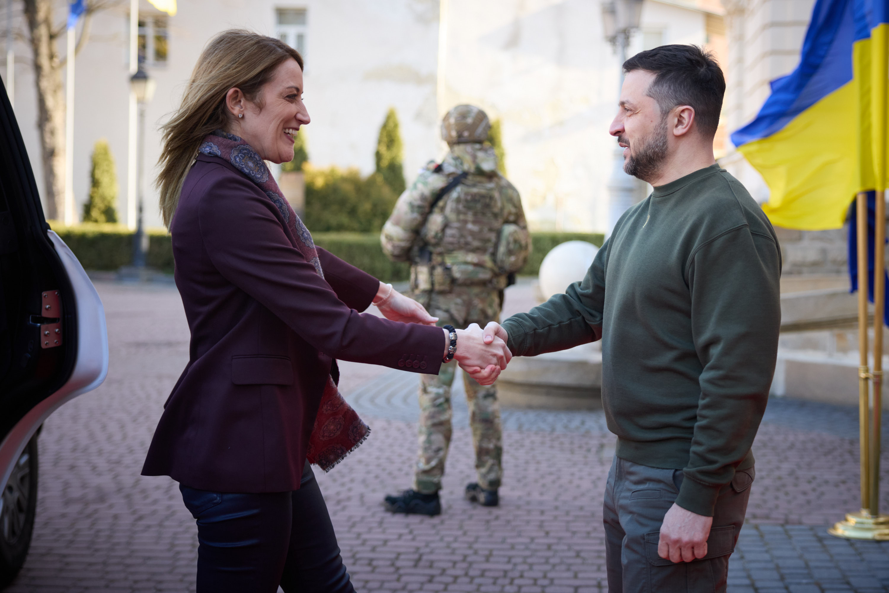 Під час робочої поїздки до Львівської області Президент України Володимир Зеленський відвідав один із госпіталів, де лікуються поранені українські захисники, які воювали, зокрема, на Бахмутському напрямку.