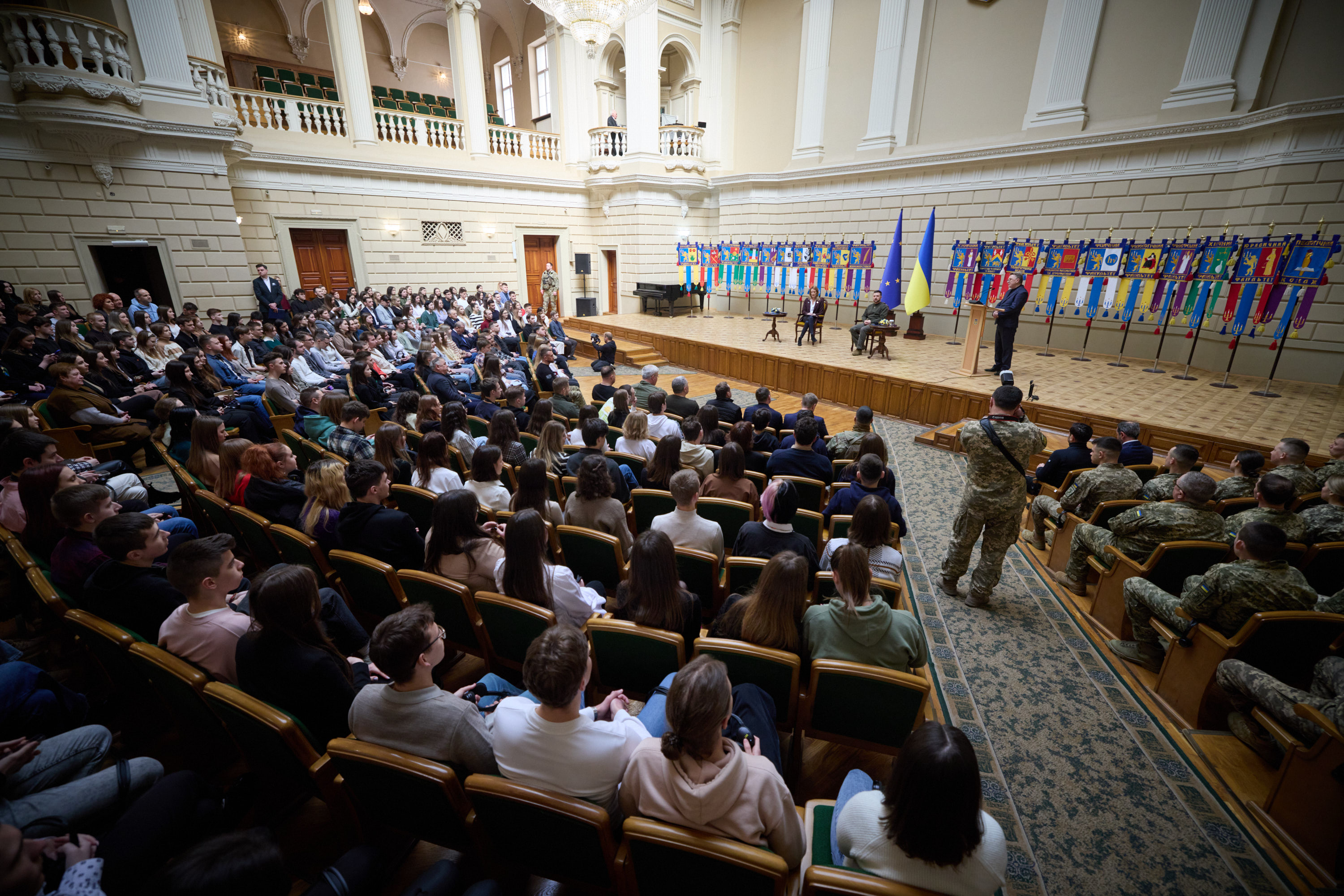 Володимир Зеленський вручив військовослужбовцям державні нагороди. Зокрема, мінометники, стрільці, зенітники, гранатометники, бойові медики отримали ордени Богдана Хмельницького ІІІ ступеня та «За мужність» ІІІ ступеня.