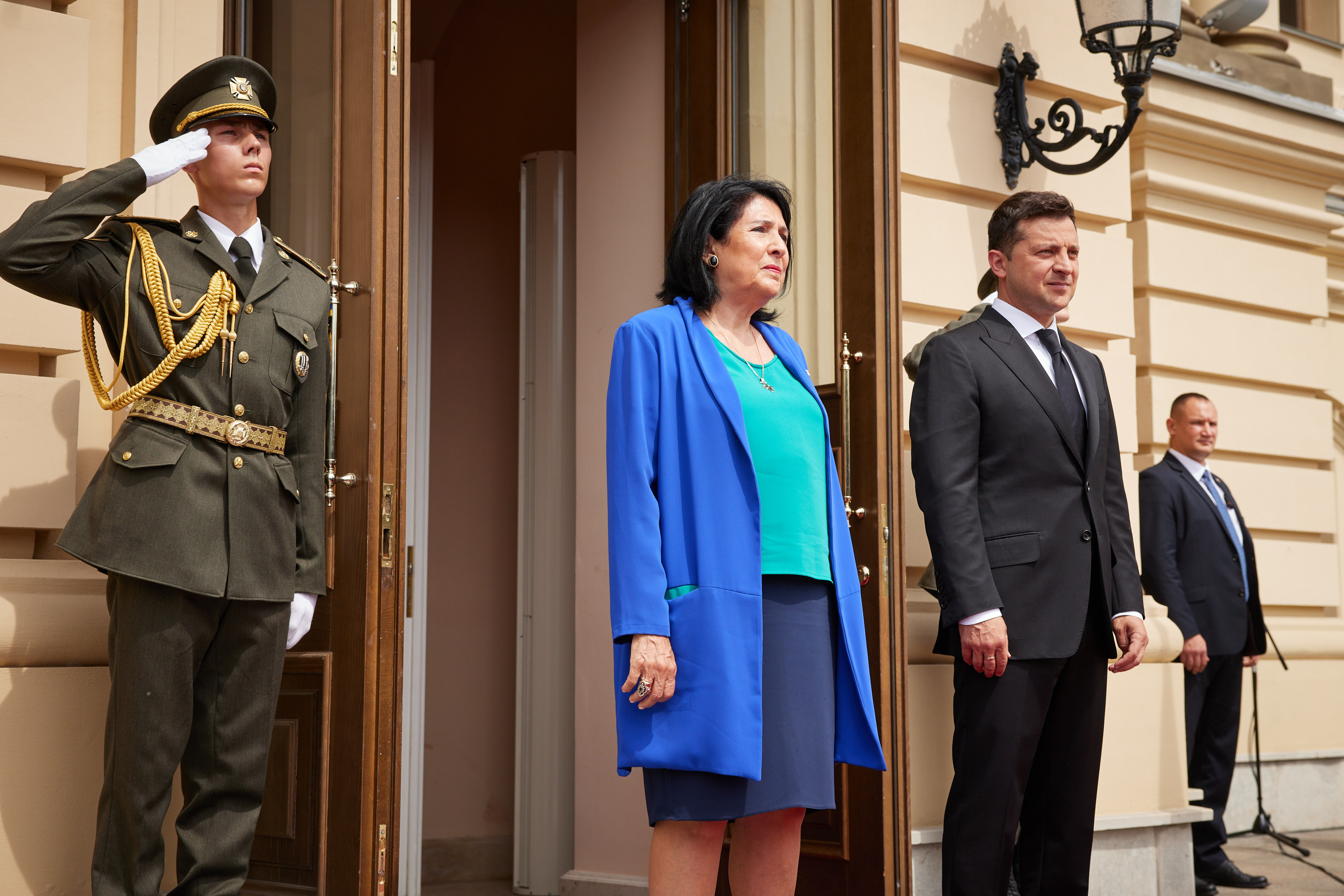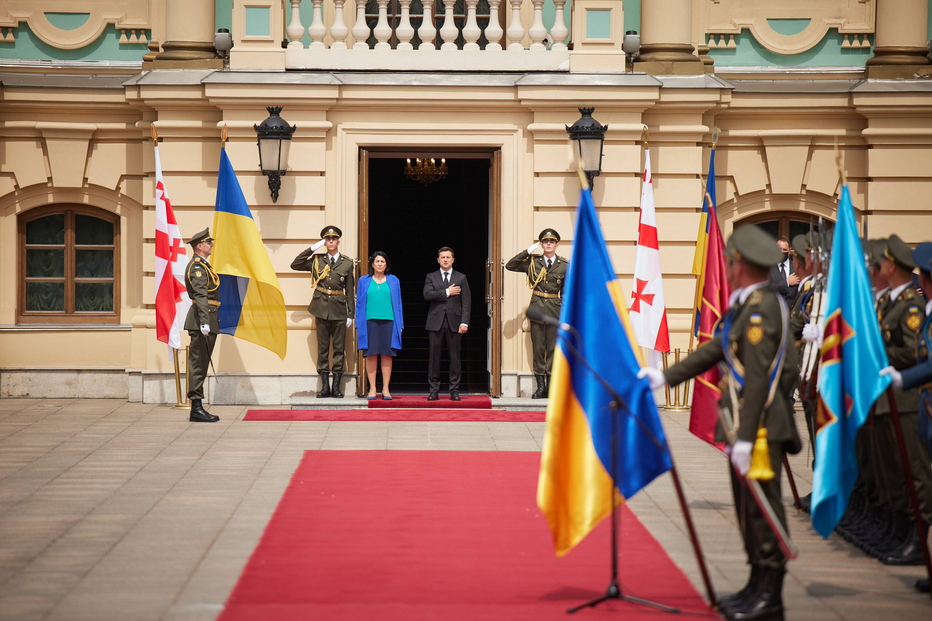 The official ceremony of the meeting between President of Ukraine Volodymyr Zelenskyy and President of Georgia Salome Zourabichvili, who is on an official visit to our country, took place in Kyiv.