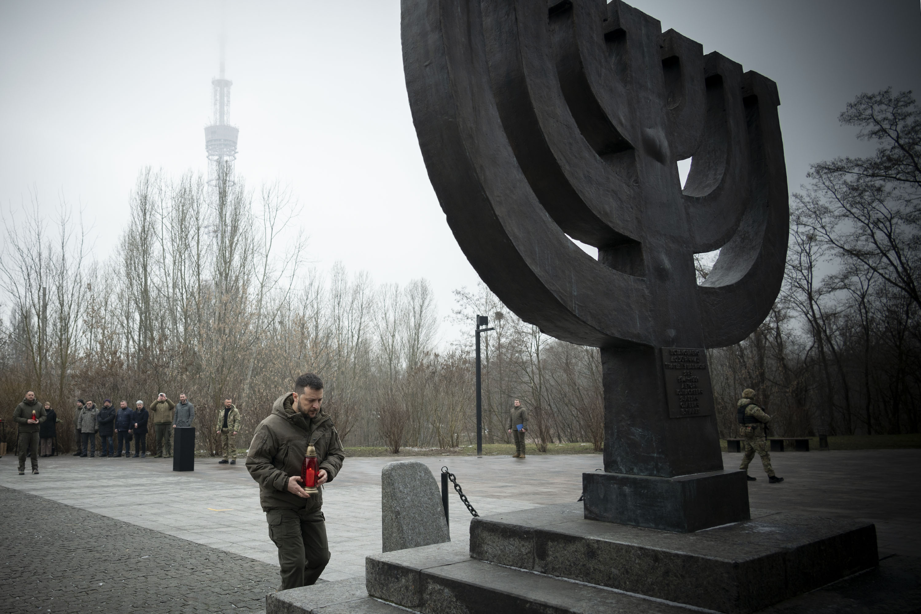 The Head of State put an icon lamp near the Menorah memorial sign on the territory of the Babyn Yar National Historical and Memorial Reserve.