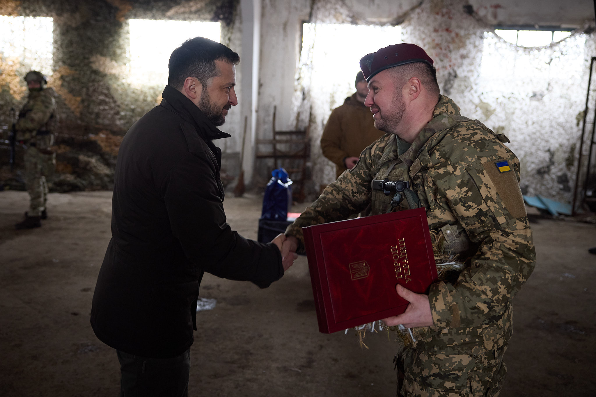 "I am glad to be here today to see you, to congratulate you, to express gratitude on behalf of all Ukrainians, all of Ukraine, for doing such a great job every day, for defending the state, our families, independence, and our sovereignty. I am confident in you. I wish you good health. Take care of yourself and your colleagues. This is very important. I wish you all victory," the President said.