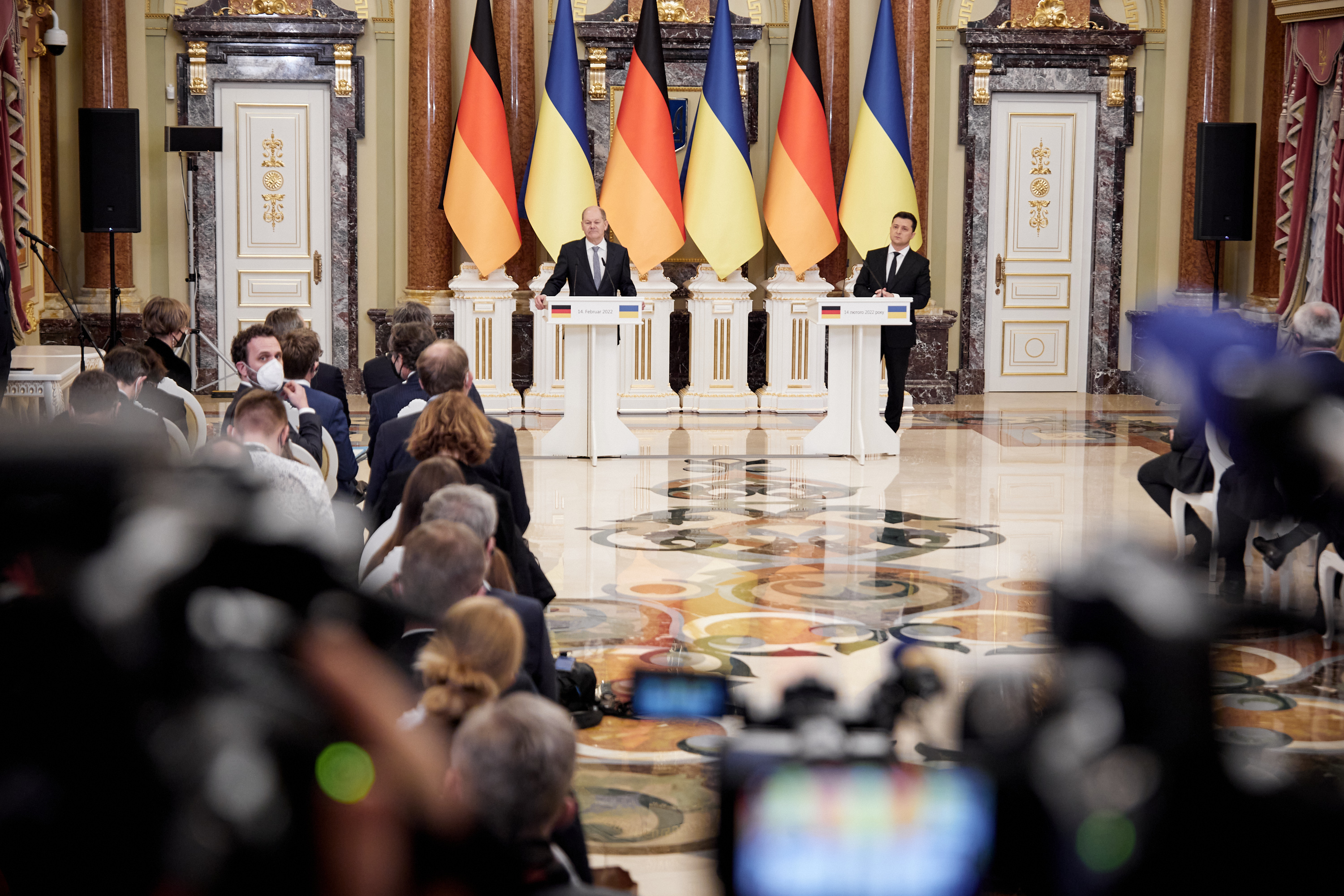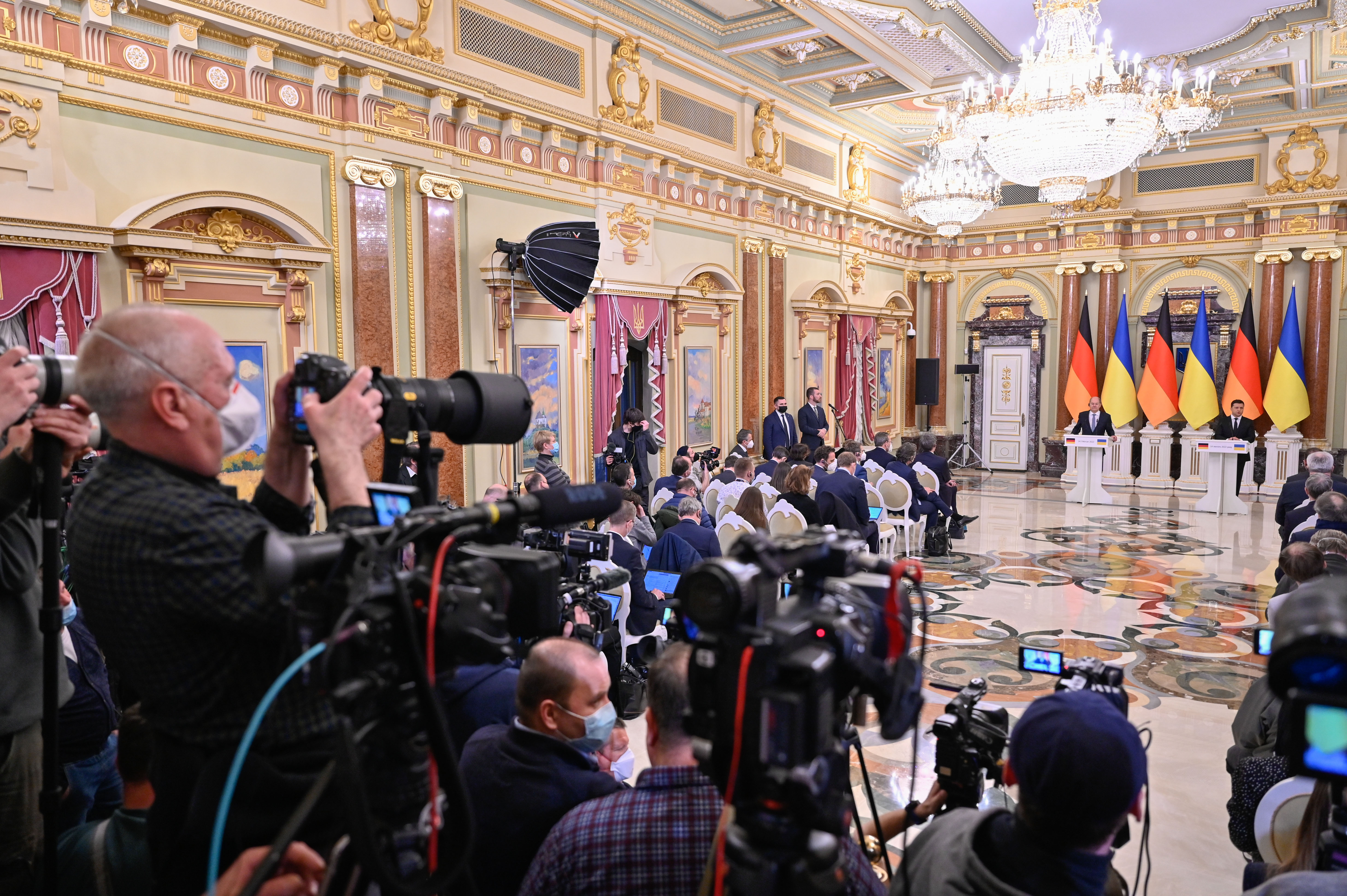 President of Ukraine Volodymyr Zelenskyy is grateful to all citizens who do not panic despite the difficult information background, because this is a real manifestation of support for Ukraine. The President said this during the meeting with media representatives following the negotiations with German Chancellor Olaf Scholz in Kyiv.