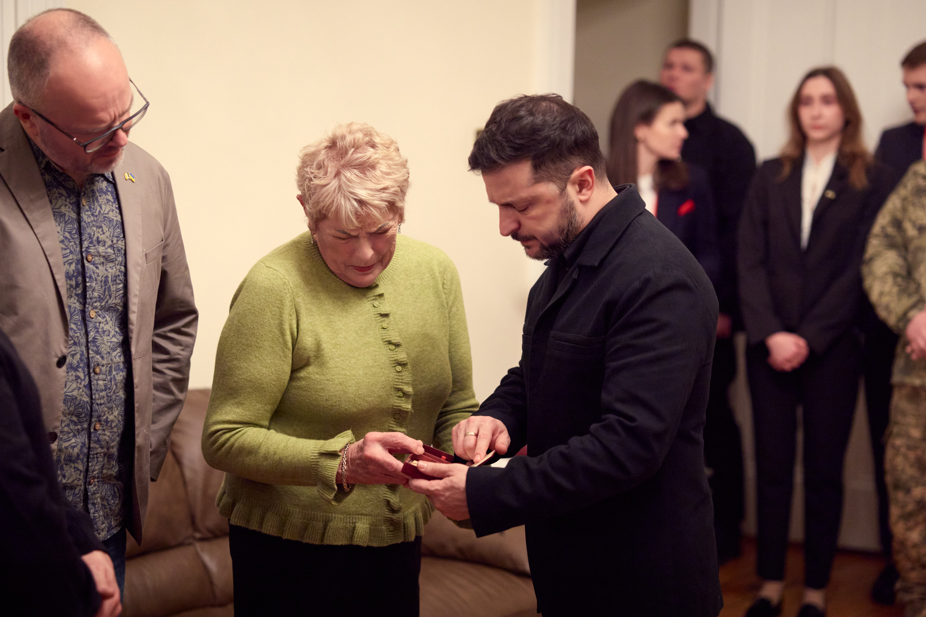 The Head of State presented the Orders “For Courage,” III class, posthumously awarded to soldiers Graham Dale, Robert Deegan, and Alex Ryzhuk, to their families.