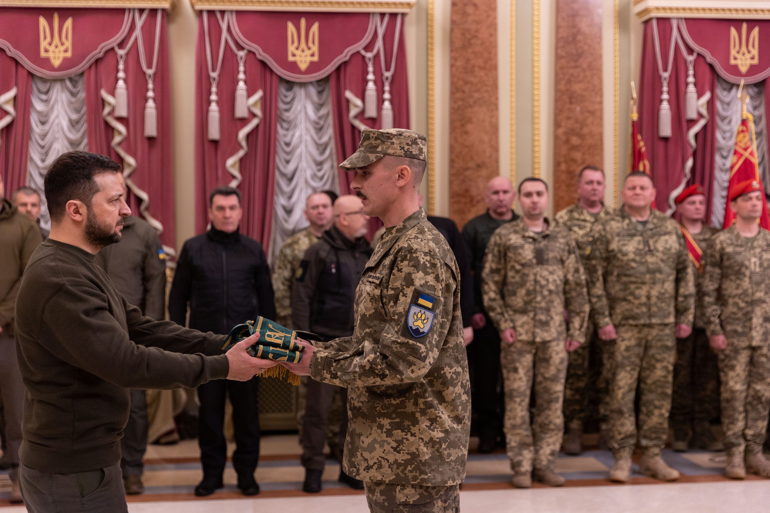 "Now here, in the Mariyinsky Palace, are our heroes, relatives of our warriors, commanders and representatives of combat brigades and units who have just arrived from the front and are returning to the frontline again. Where it's really hot. Where they really fight for our freedom, for our independence, for our children. And I want to say to everyone present what is definitely in the heart of every Ukrainian today: I thank you! I thank absolutely all soldiers, all sailors, all sergeants, sergeant-majors, all officers, all heroes, generals and, of course, all your fathers and mothers, our dear, esteemed Ukrainian warriors," said the Head of State, addressing the attendees.