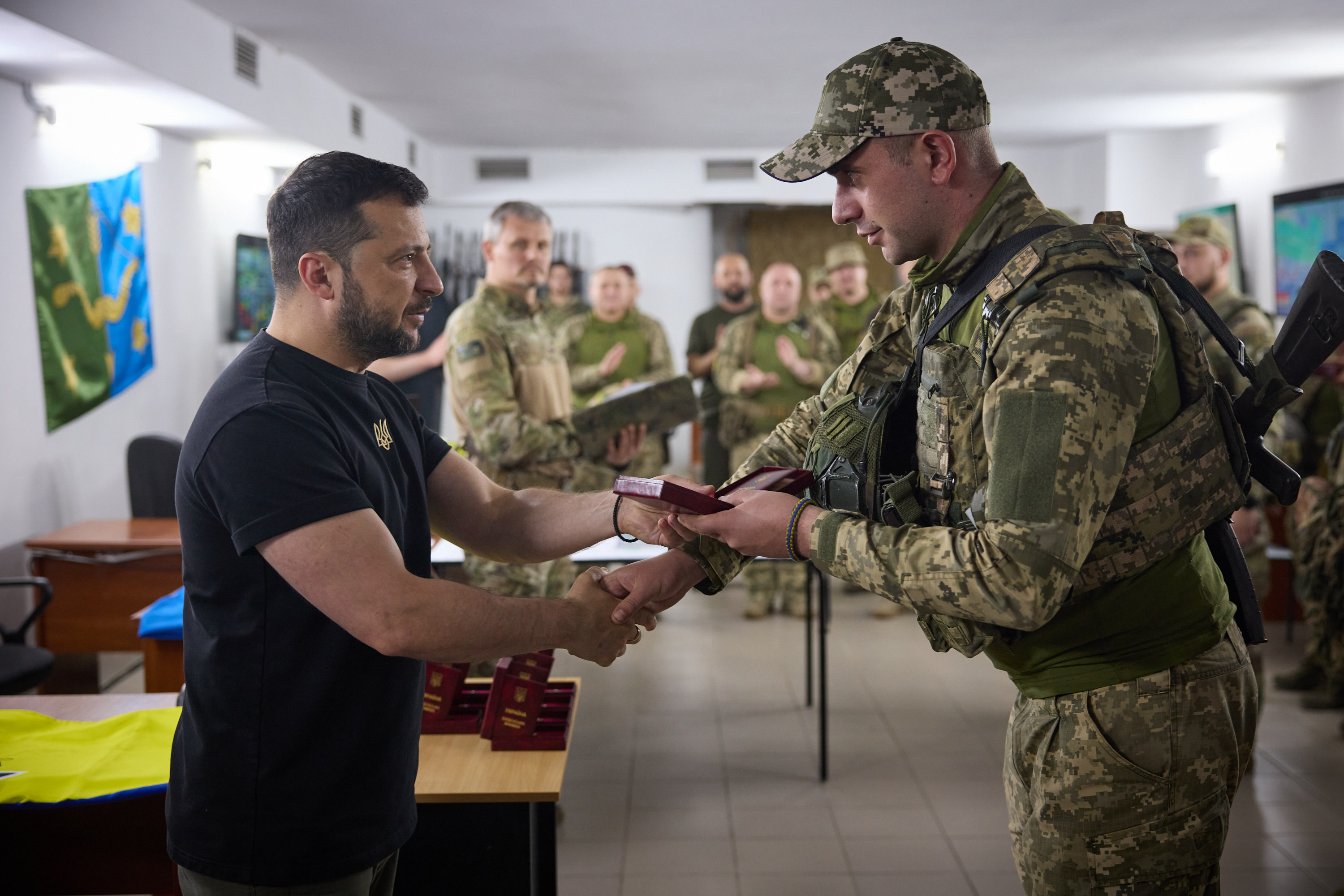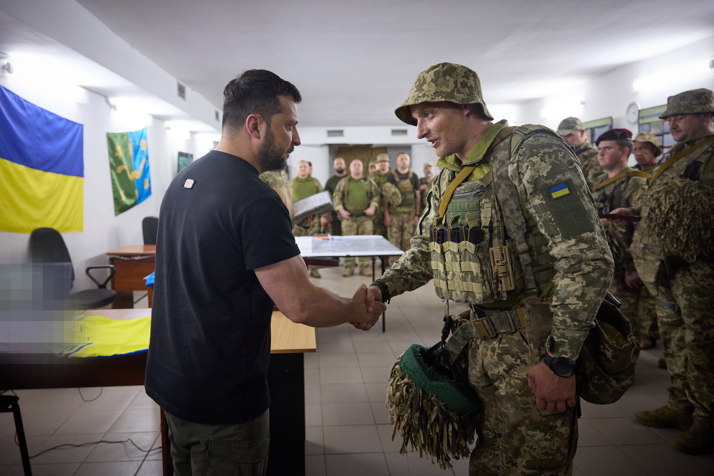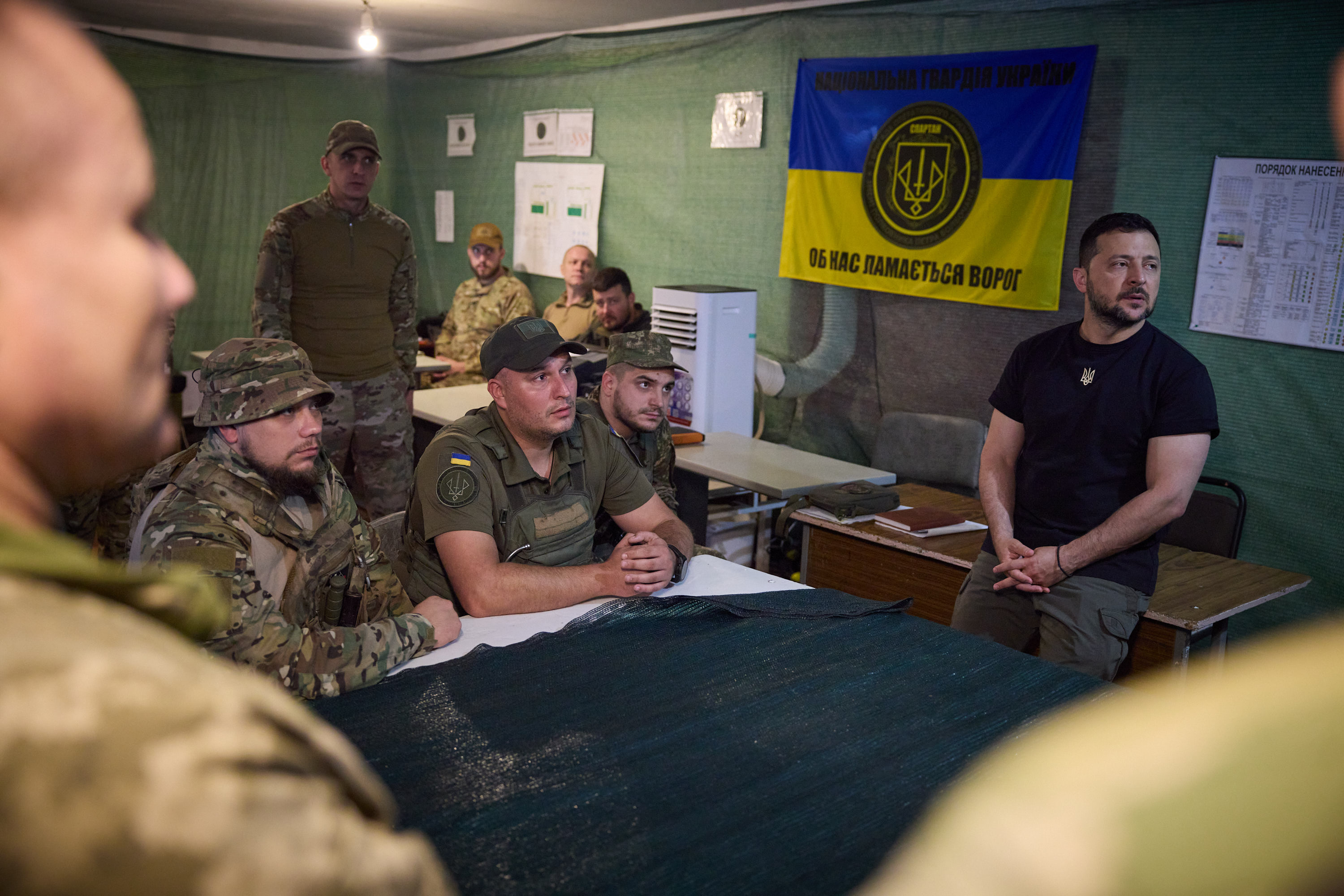 Президент заслухав доповіді командирів про перебіг бойових дій на ділянках фронту, які перебувають у зоні їхньої відповідальності, та разом із комбригами й комбатами обговорив найбільш проблемні питання їхніх підрозділів.