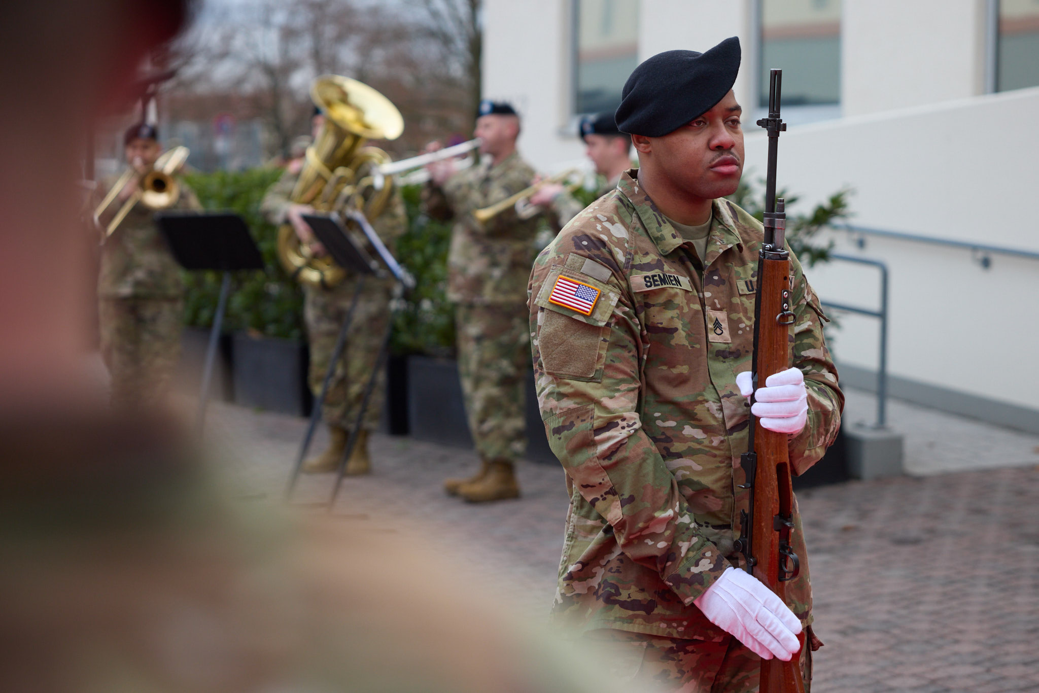 Володимир Зеленський також поспілкувався з українськими військовими, які працюють у Вісбадені у складі оперативної групи ЗСУ при Групі сприяння безпеці України.