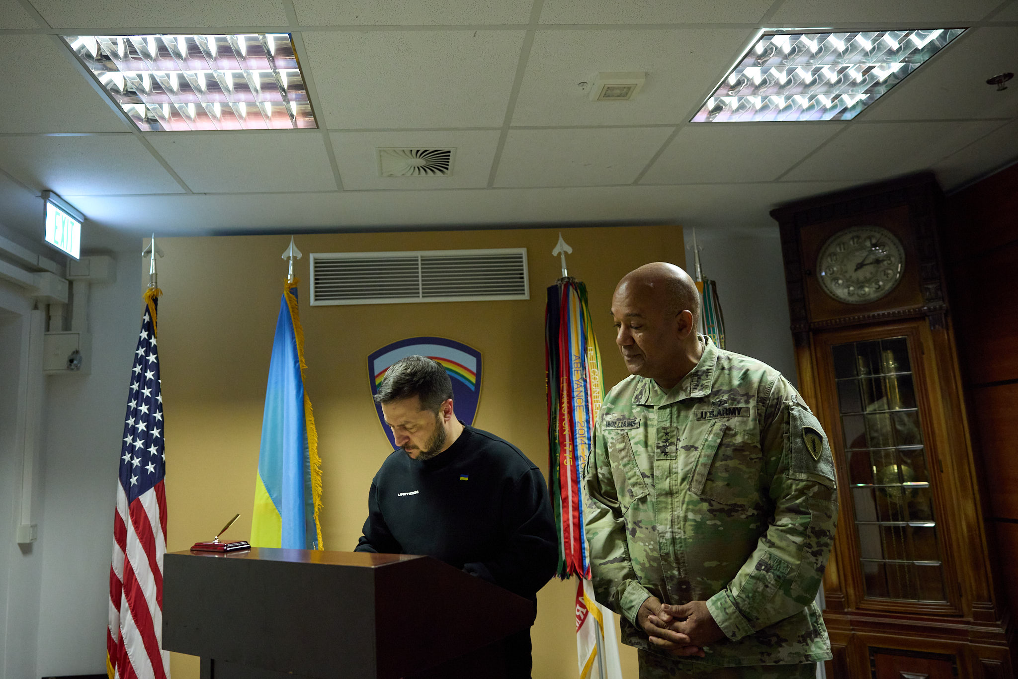 Глава держави зустрівся з головою Європейського командування збройних сил США та верховним головнокомандувачем Об'єднаних збройних сил НАТО у Європі генералом Крістофером Каволі, командувачем армії США у Європі та Африці генералом Деррілом Вільямсом, командувачем Групи сприяння безпеці України (SAGU) генерал-лейтенантом Антоніо Агуто.