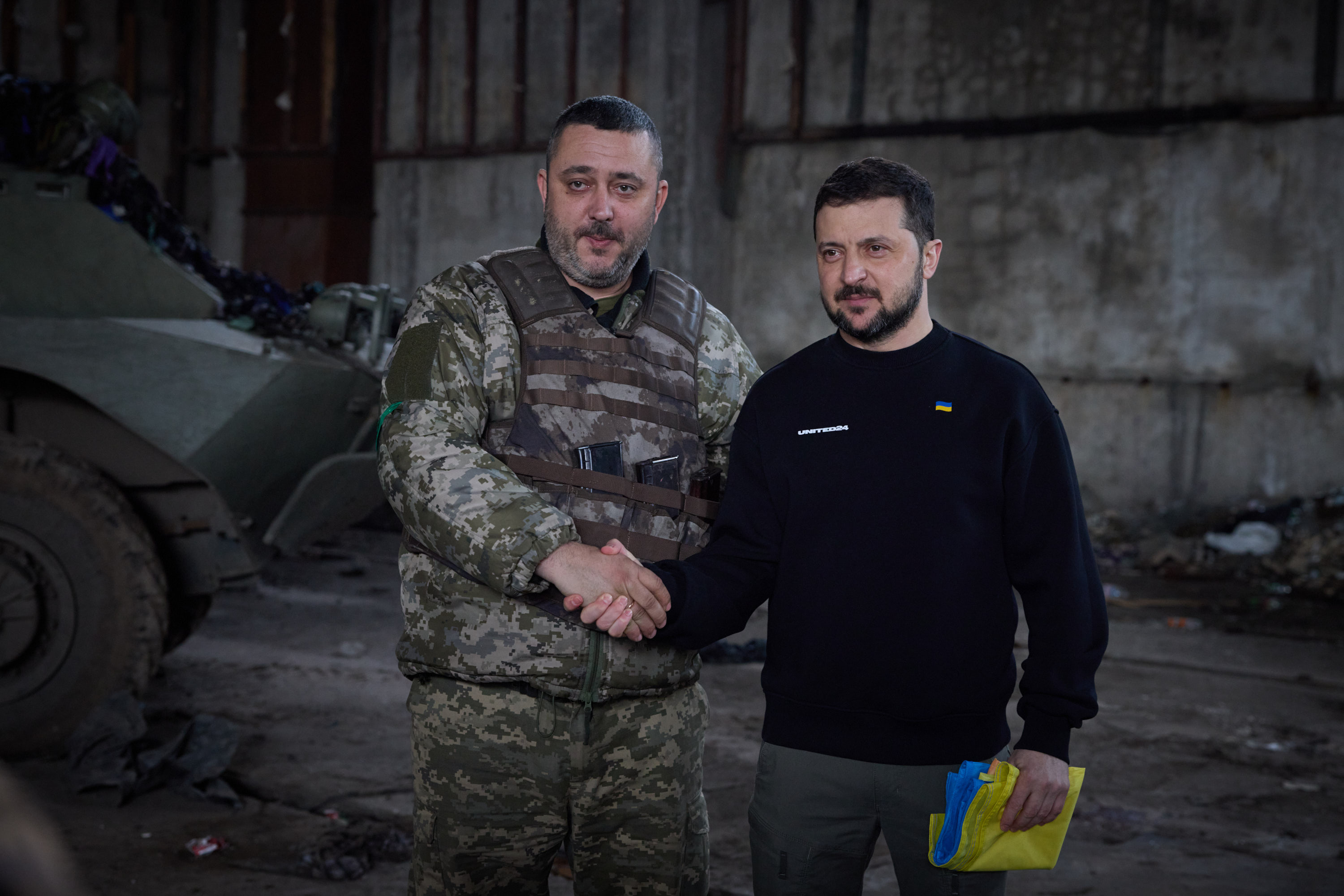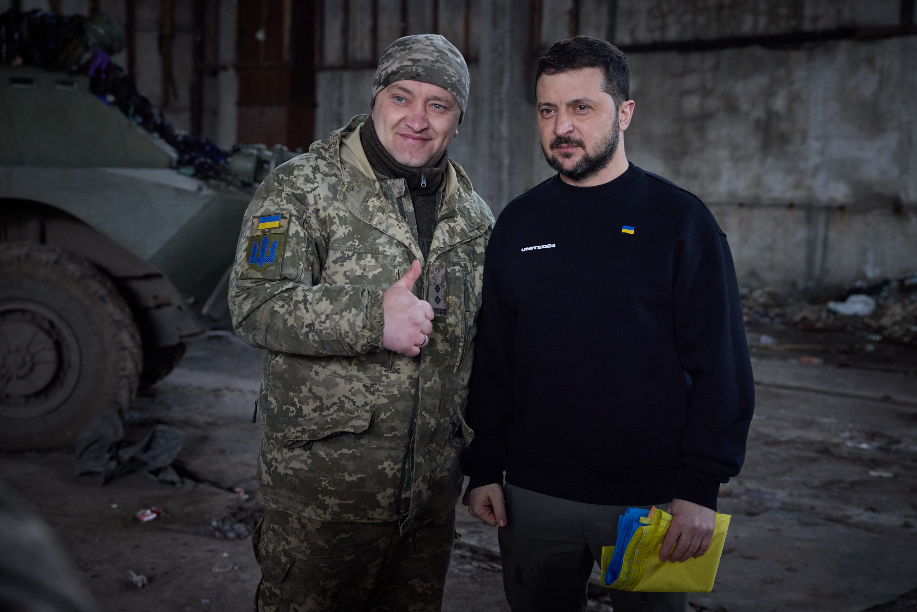 Під час робочої поїздки в Донецьку область Президент України Володимир Зеленський відвідав передові позиції українських військових на Бахмутському напрямку.