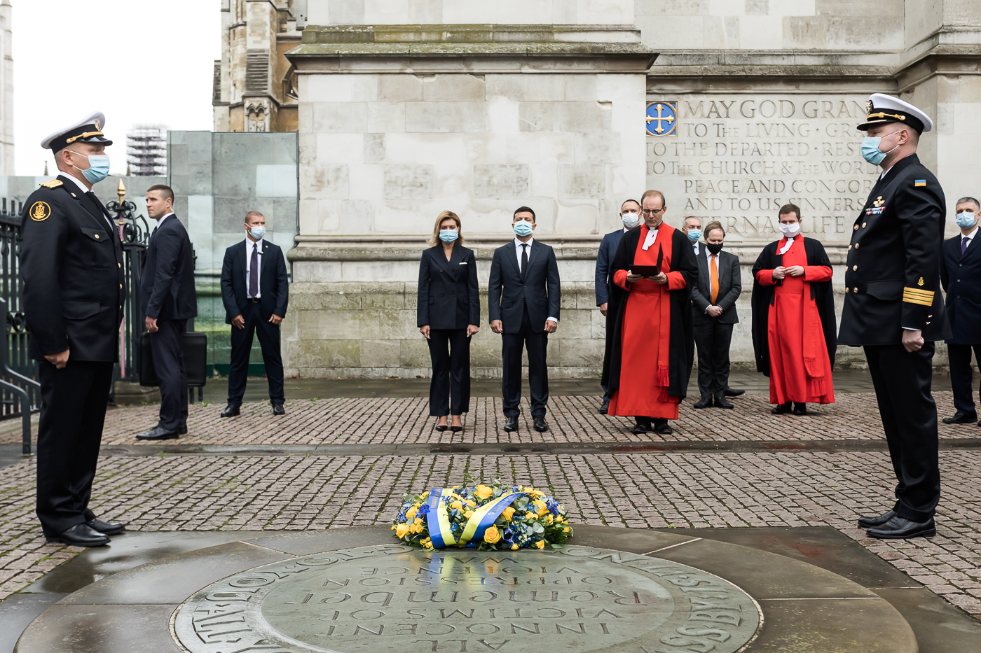 Під час офіційного візиту до Великої Британії Президент України Володимир Зеленський разом з дружиною Оленою взяли участь у церемонії покладання вінка до пам’ятника Невинним жертвам на території головної соборної церкви Великої Британії – Вестмінстерського абатства.