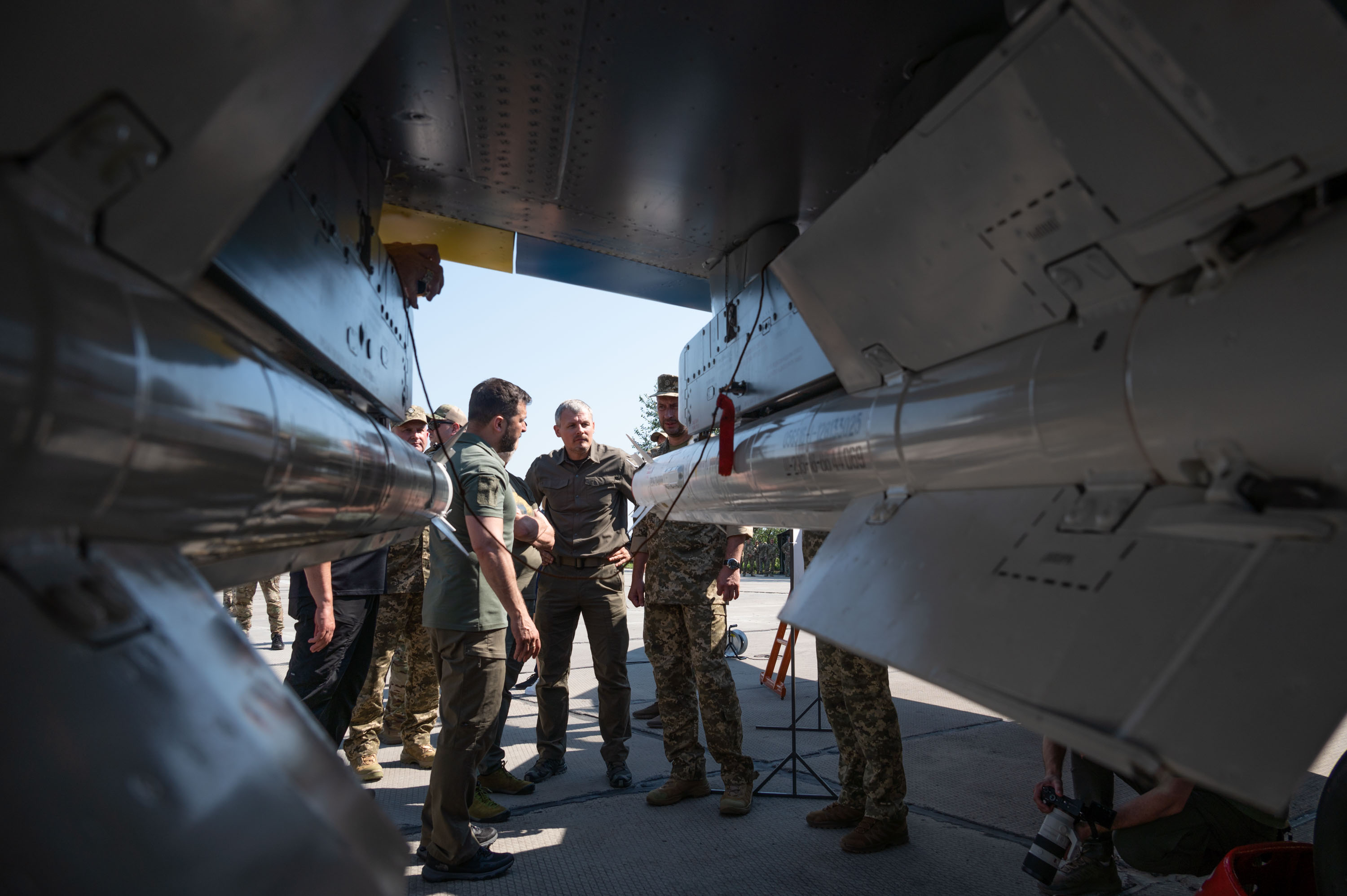 Володимир Зеленський оглянув, зокрема, штурмовик Су-25, бомбардувальник Су-24М, винищувачі Су-27 та МіГ-29 із ракетами, які вони застосовують. Як зазначив командувач Повітряних сил ЗСУ генерал-лейтенант Микола Олещук, ці літаки було модернізовано для використання озброєння, яке надають партнери, зокрема ракет класу «повітря – поверхня» ZUNI, ракет Storm Shadow, протирадіолокаційних ракет AGM HARM.