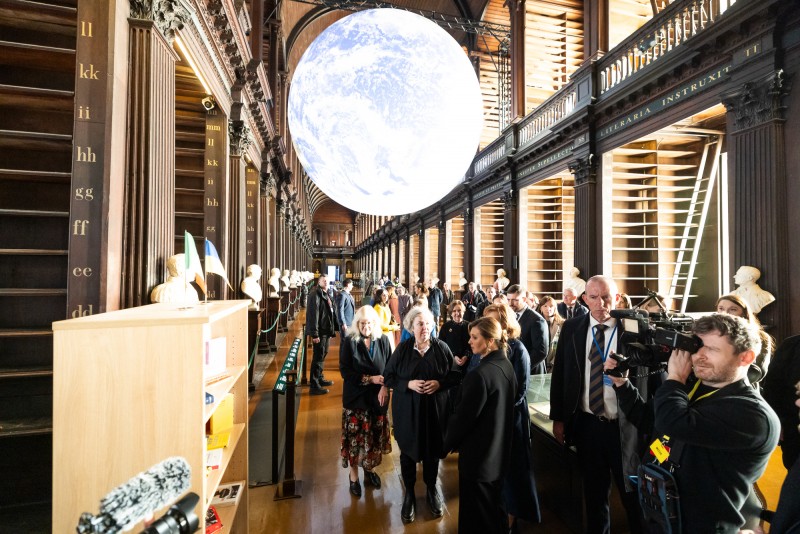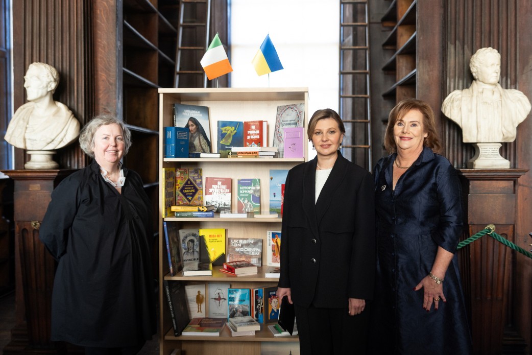 Перша леді України Олена Зеленська й дружина Прем’єр-міністра Ірландії Мері Мартін узяли участь у відкритті української книжкової полички в бібліотеці Триніті-коледжу – найбільшій університетській бібліотеці Ірландії.