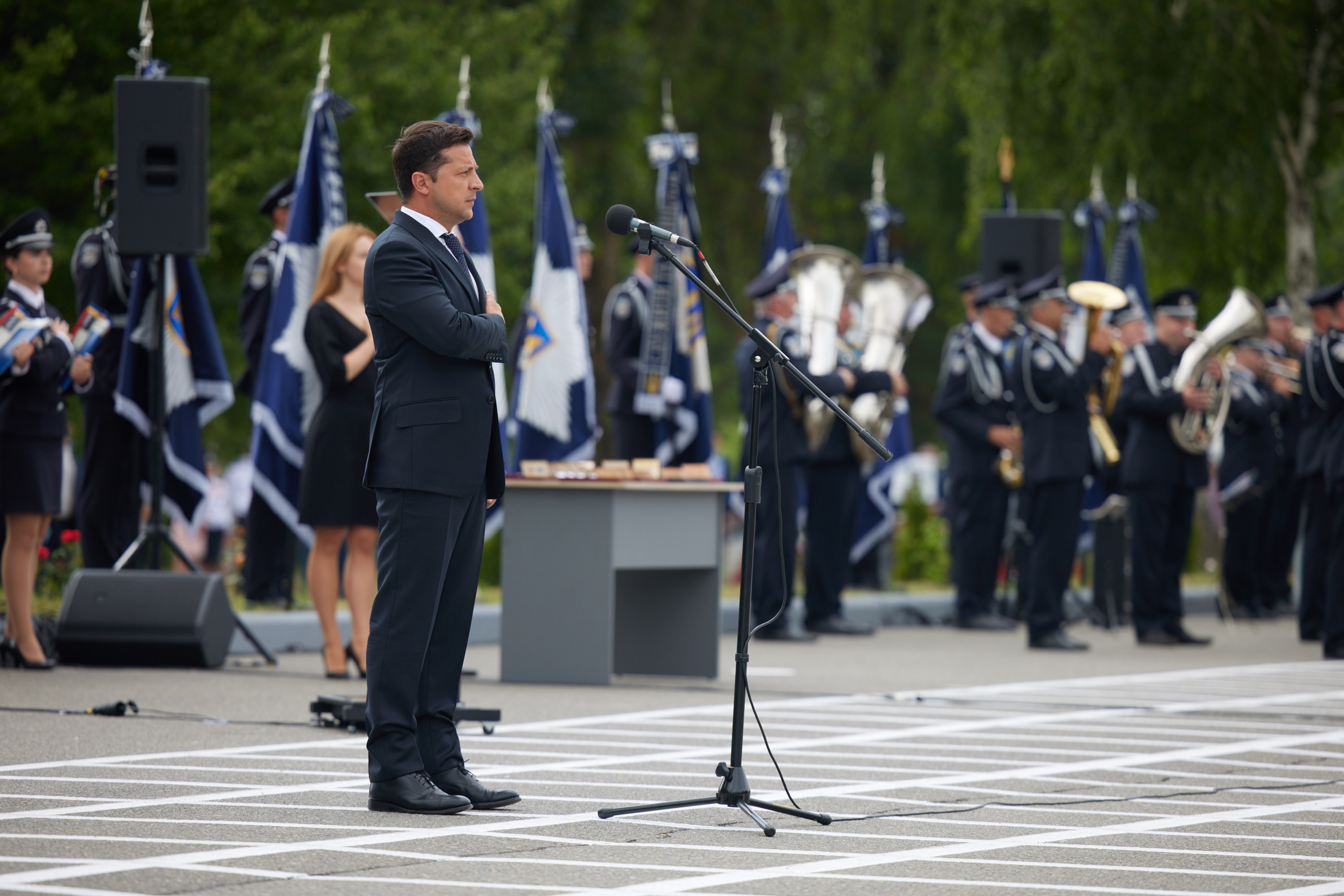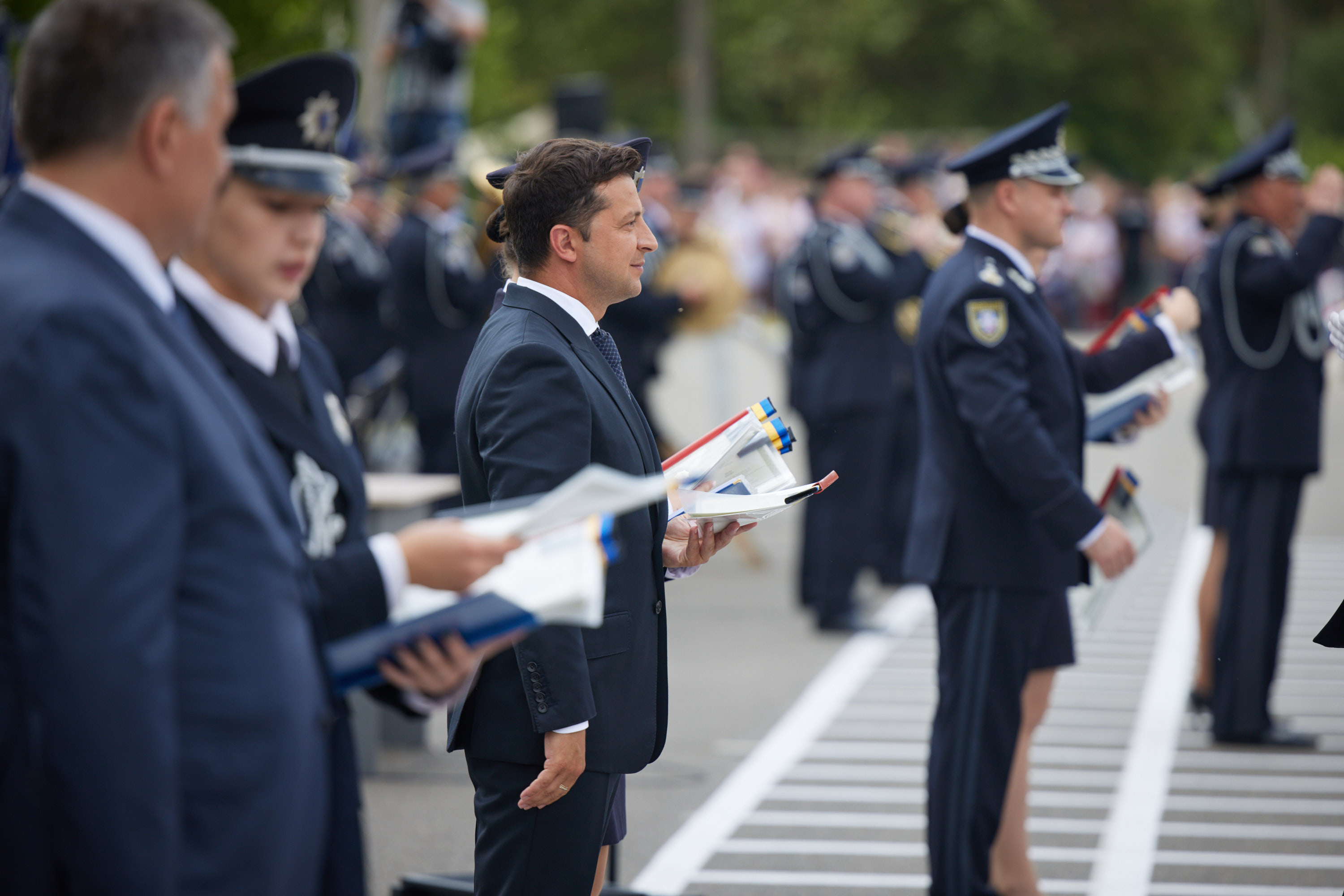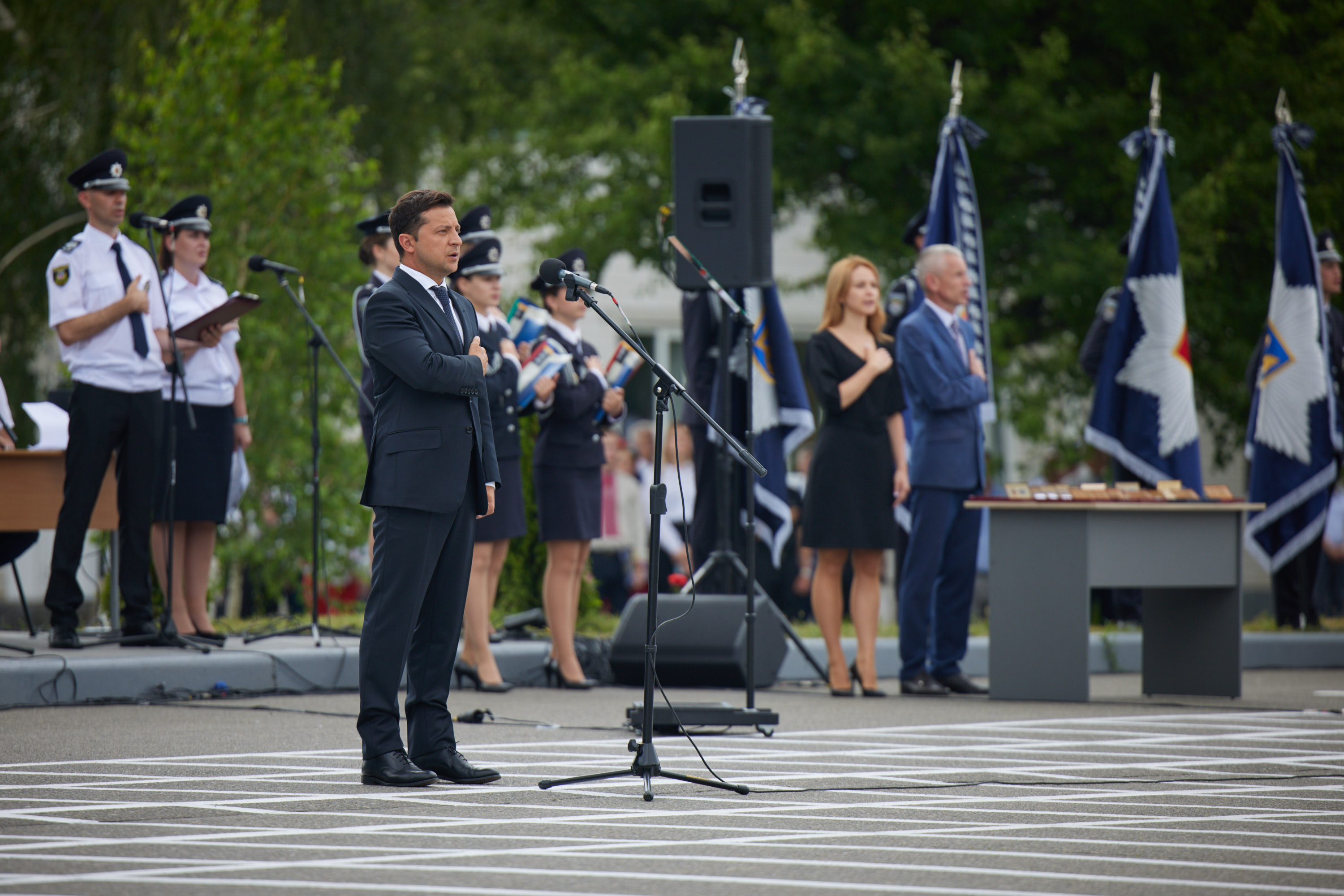 Володимир Зеленський акцентував увагу на тому, що й у повсякденній роботі поліцейські, часто – ризикуючи життям, проявляють вірність присязі. Так, за час незалежності України 1204 працівники органів внутрішніх справ загинули від рук злочинців, а 141 працівник віддав життя, захищаючи Україну на сході. Присутні вшанували їхню пам'ять хвилиною мовчання.