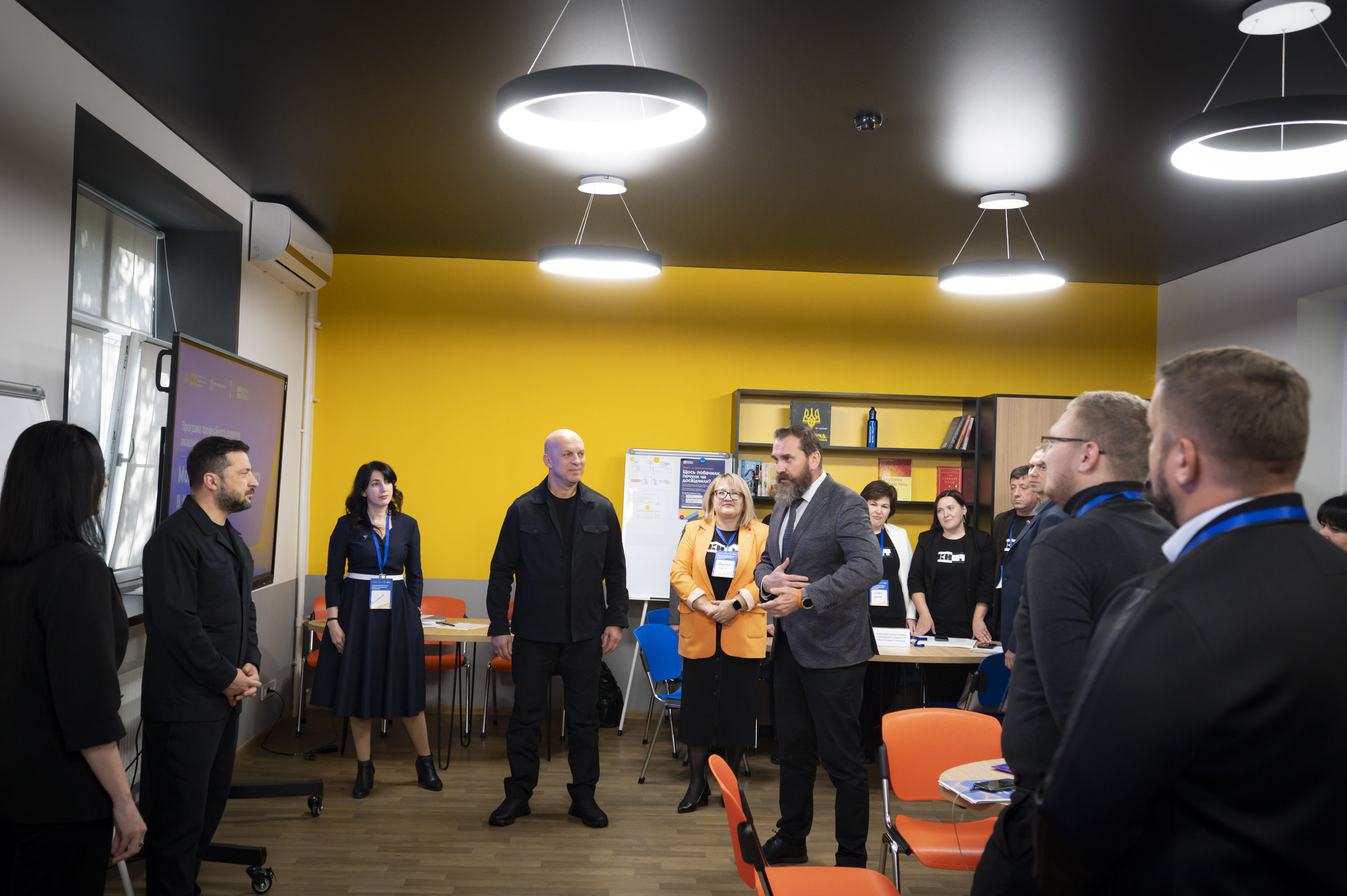 «Мені дуже приємно бути тут. Подякувати вам від усіх українців, українок, усього нашого суспільства за ваш великий внесок у державність, незалежність і життя України. Дякую, що разом з усіма громадянами ви проходите такий важливий для України шлях і несете свої знання нашим поколінням», – наголосив Президент.