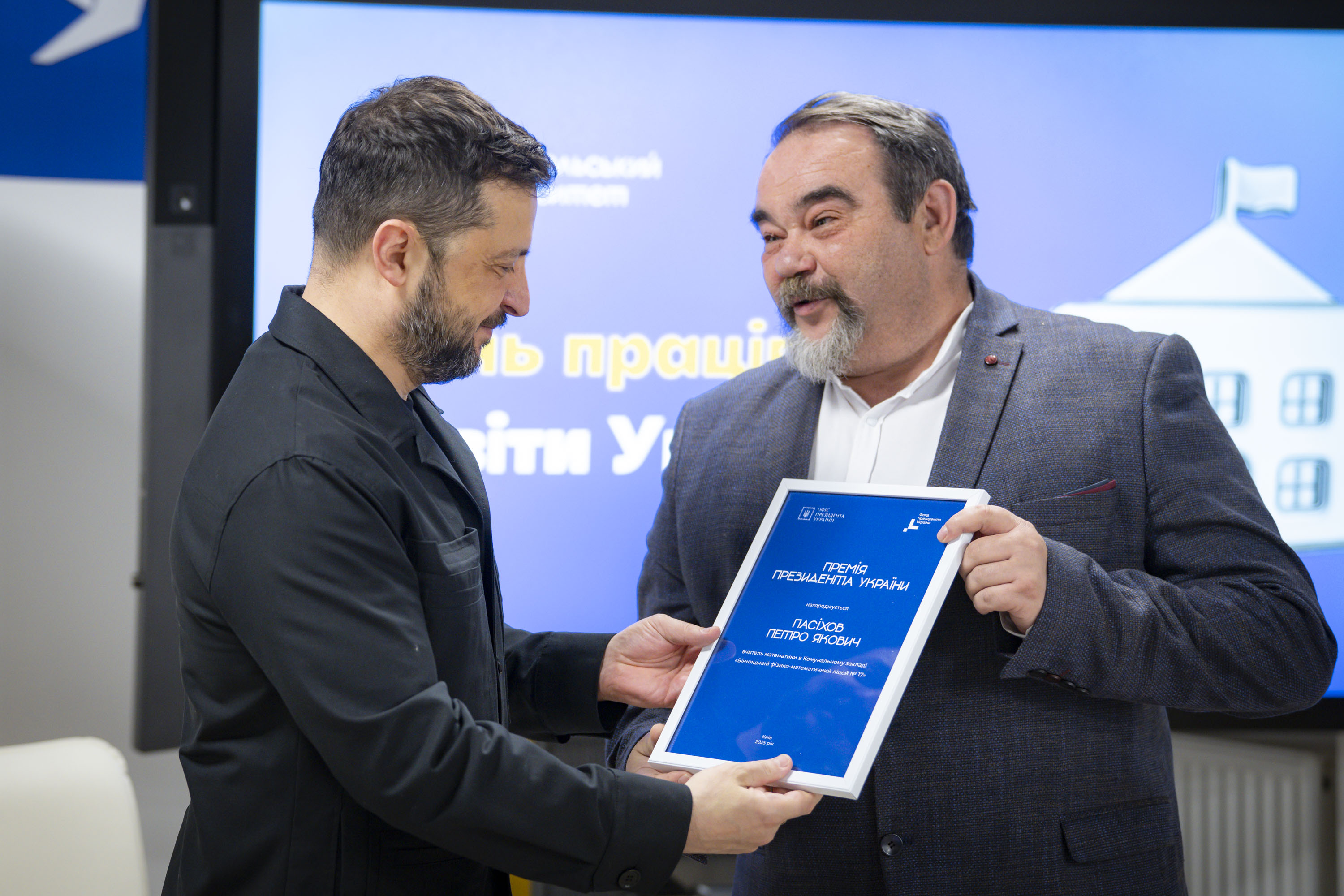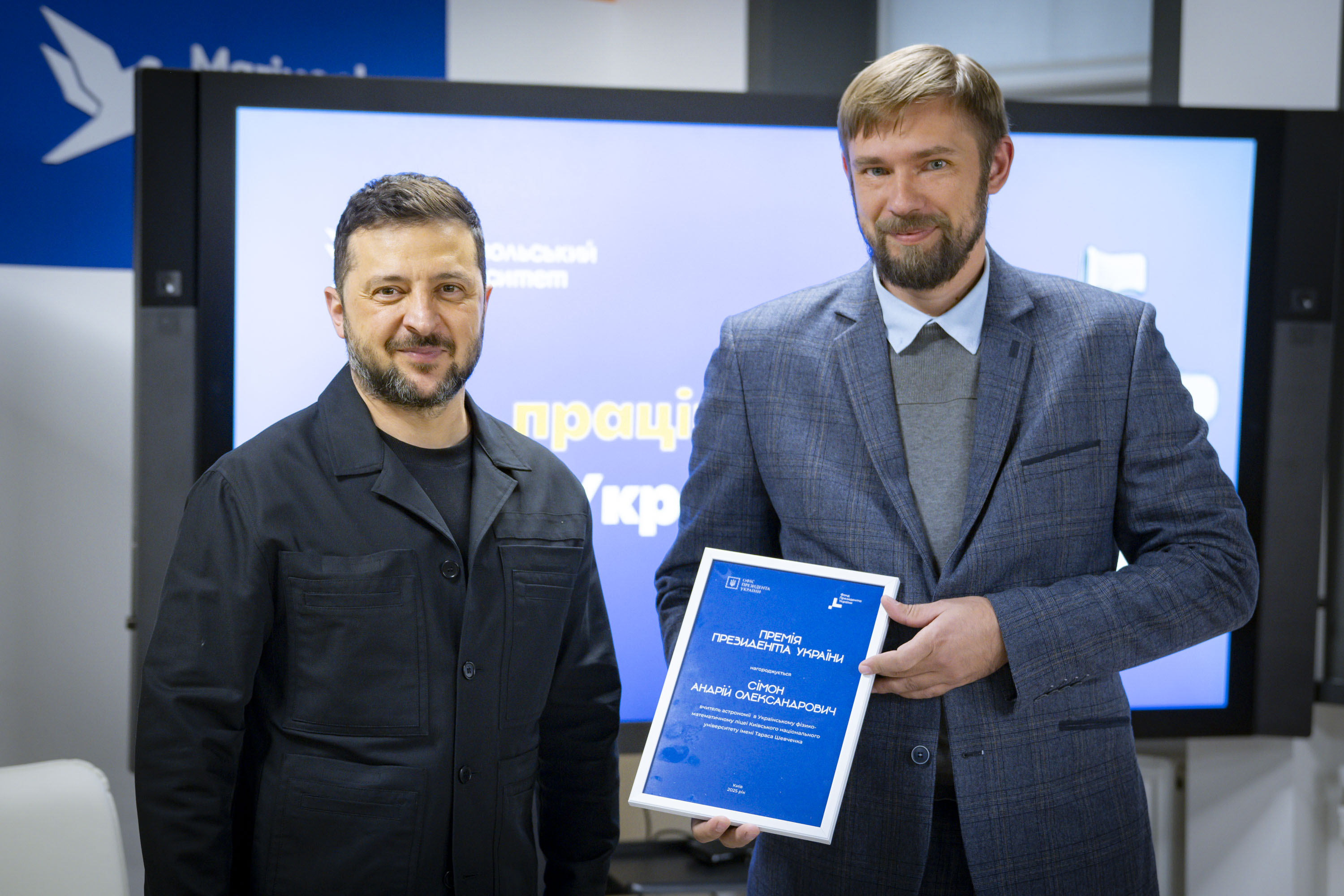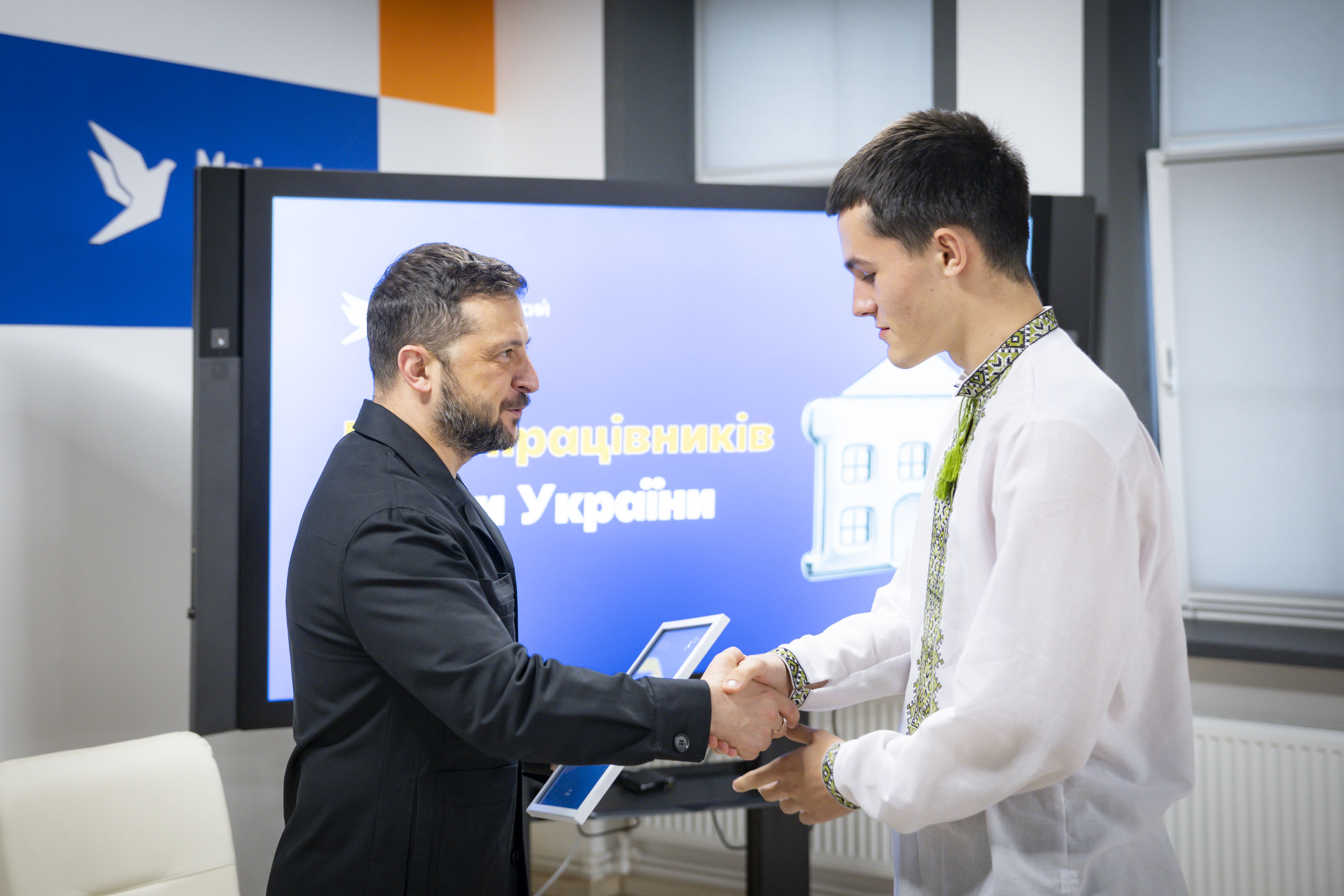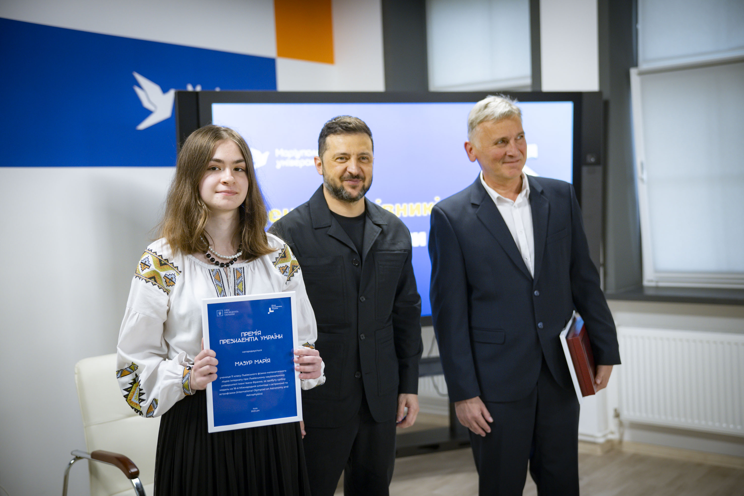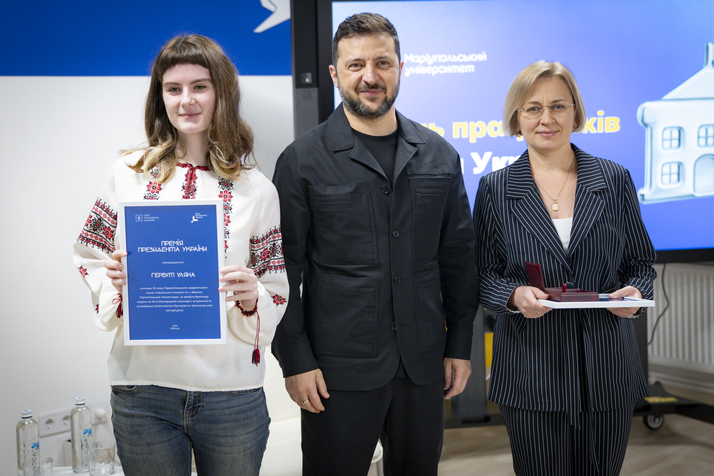 Крім того, Володимир Зеленський вручив переможцям міжнародних учнівських олімпіад та їхнім наставникам сертифікати на отримання премії Президента. Цього року українські школярі здобули 27 нагород: 4 золоті, 12 срібних та 11 бронзових медалей.