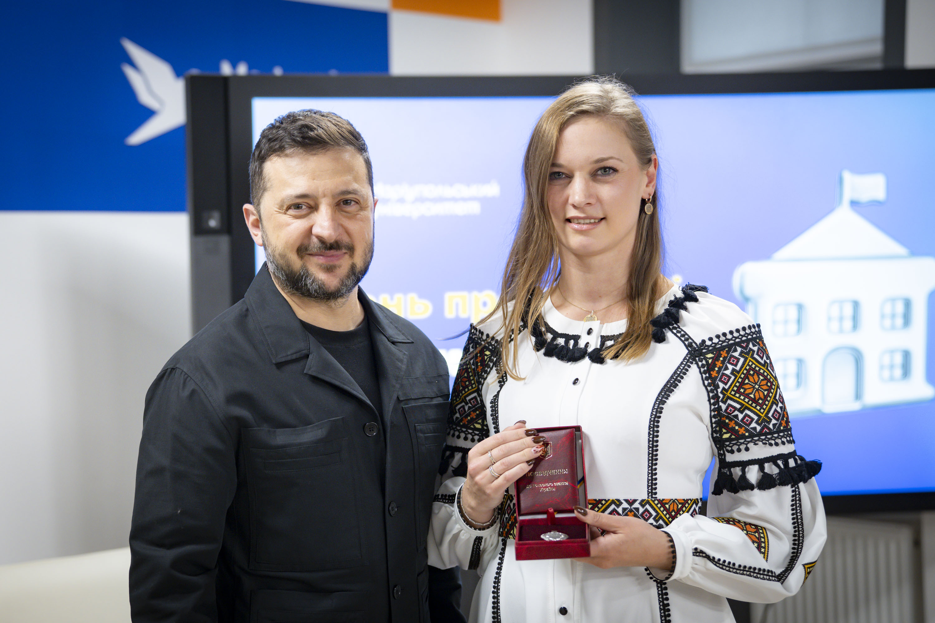 Напередодні Дня працівників освіти Президент України Володимир Зеленський зустрівся з учителями, викладачами, студентами та школярами, а також відзначив освітян державними нагородами.