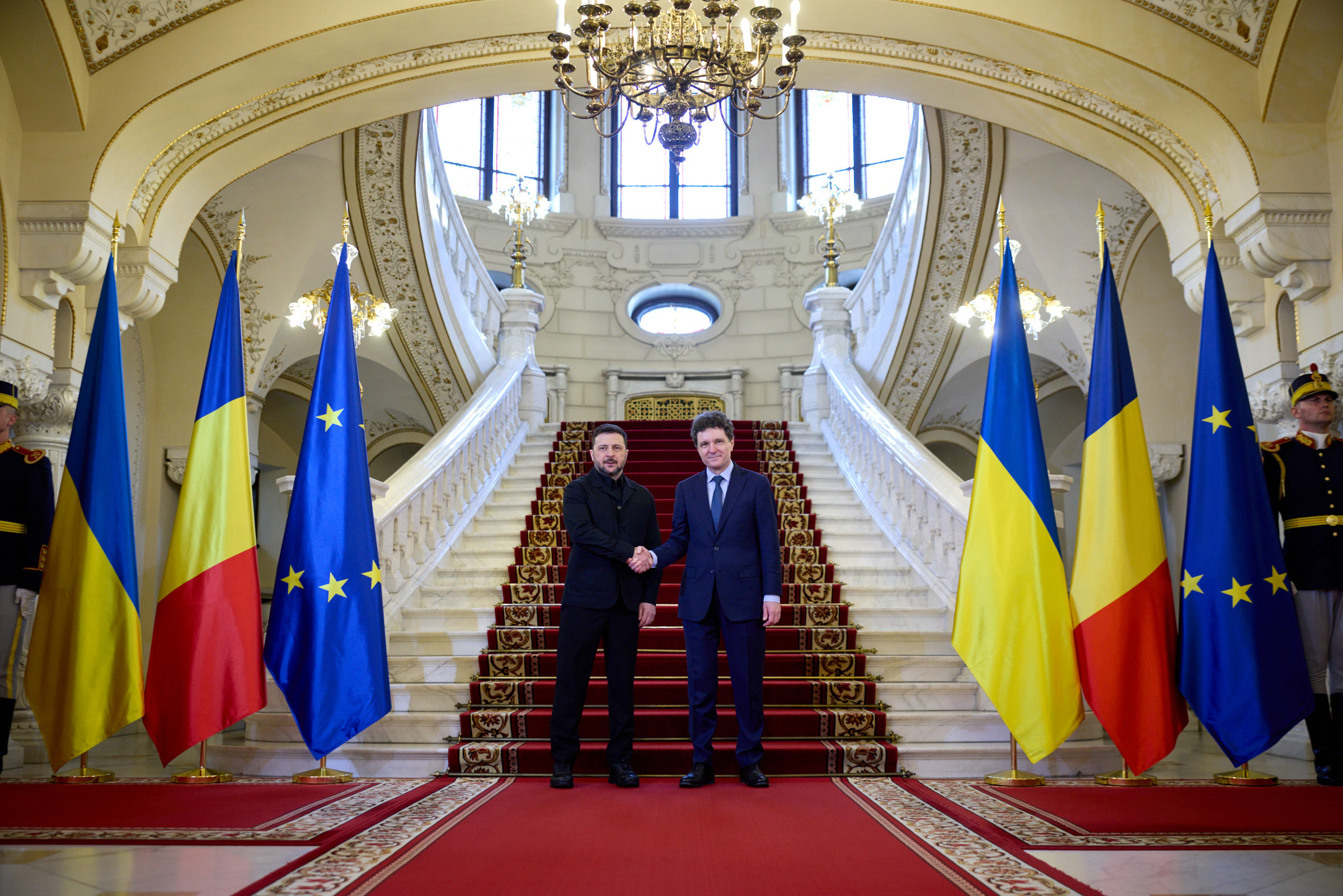 Перш за все хочу подякувати всій Румунії та вам особисто, пане Президенте, за дуже принципову позицію протягом усіх цих років повномасштабної війни Росії проти України, нашого народу та проти всієї нашої Європи. Росії точно не потрібен спокій у Європі, і цей агресор інвестує дуже багато в дестабілізацію країн, у знищення нормальних основ життя. Найгірша форма російської політики зараз – проти України, на нашій землі, у нашому небі: російські ракети, російські штурми. Ми нікому не бажаємо такого і вдячні за підтримку в захисті нашої незалежності, захисті наших людей. Сьогодні наша зустріч і перемовини передусім про те, як можна забезпечити більше співпраці й більше енергетичної та економічної сили для обох наших народів, щоб ми могли разом робити більше і для національної безпеки наших держав. Зараз, особливо після початку нової війни на Близькому Сході, цілком очевидно, що реальний захист для будь-якої нації – це саме спільні дії. Сполучені Штати Америки та ще більш ніж десять держав Європи та Близького Сходу вже звернулися до України, щоб ми підтримали їхні оборонні можливості. Наші команди працюють разом, у тому числі вже в країнах Близького Сходу, і Україна вважає, що і в нашому регіоні, в усій Європі, в інших країнах Європи, треба більше співпраці, більше впровадження нашого досвіду, який ми отримали, захищаючи своє життя, захищаючи Україну. Румунія разом з іншими європейськими країнами та Америкою допомогла нам із захистом неба – ми вдячні за це, і це стосувалося, зокрема, компоненту захисту від ракет. Ми цінуємо готовність продовжувати співпрацю, і ми пропонуємо розширювати співпрацю між нашими державами, щоб захищатися від усіх тих загроз, які можуть викинути росіяни. Всі ті загрози, які виникають щодня. І є загроза не тільки для України. Зокрема, ми бачимо таку масштабну загрозу дронів. У нас сьогодні є спільна заява щодо розвитку саме таких оборонних спроможностей – є документ про оборонну співпрацю, і це правильний крок на шляху посилення наших держав. Важливо, що Румунія готова співпрацювати з Україною в рамках загальноєвропейської програми SAFE. Вдячний за підтримку нашої євроінтеграції – дякую тобі, Нікушоре, – та спільну роботу на рівні ЄС. Наші держави дійсно заслуговують на змістовне стратегічне партнерство, і сьогодні ми це зафіксували, і я вітаю наші держави із цим фактом.