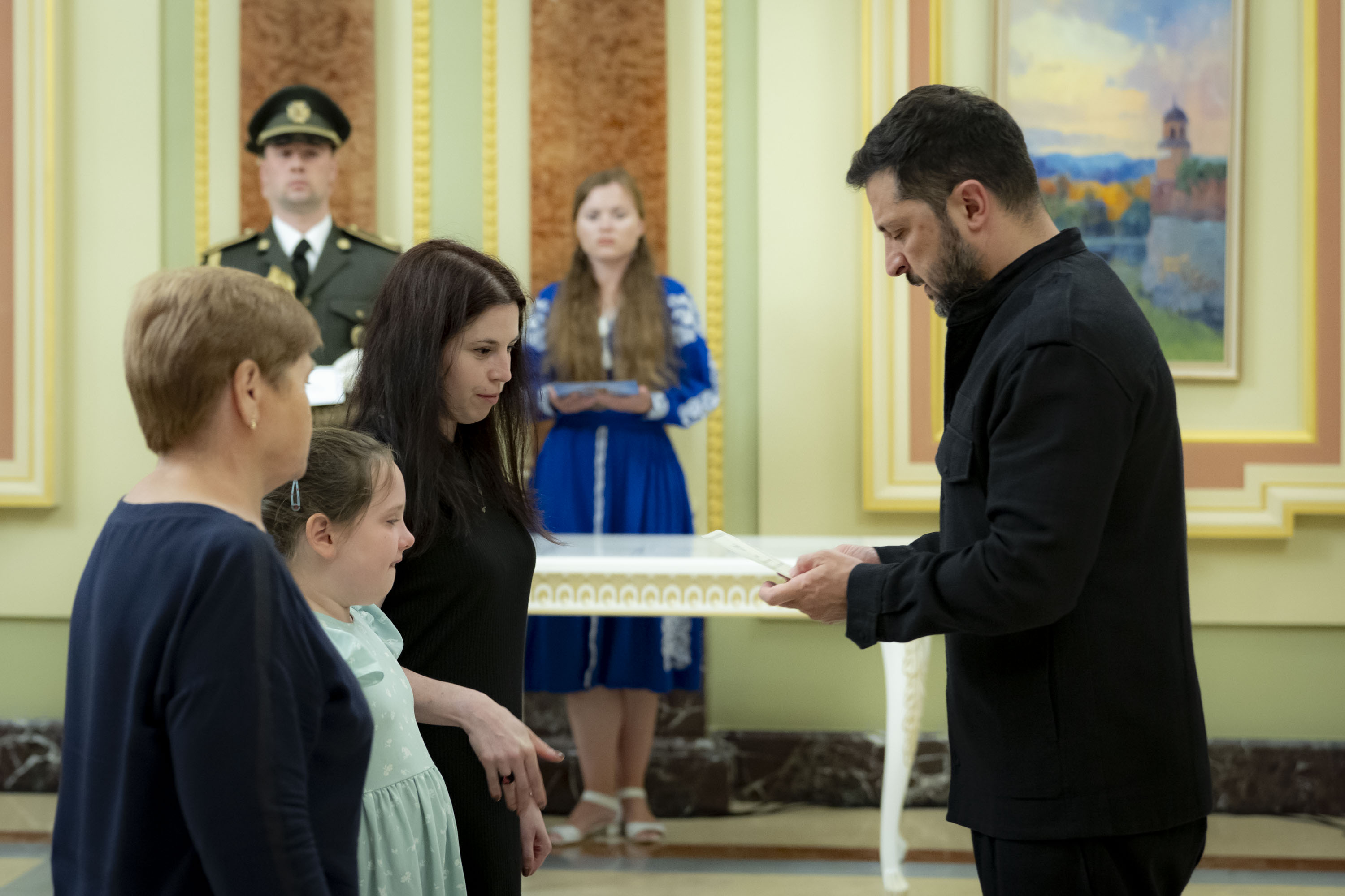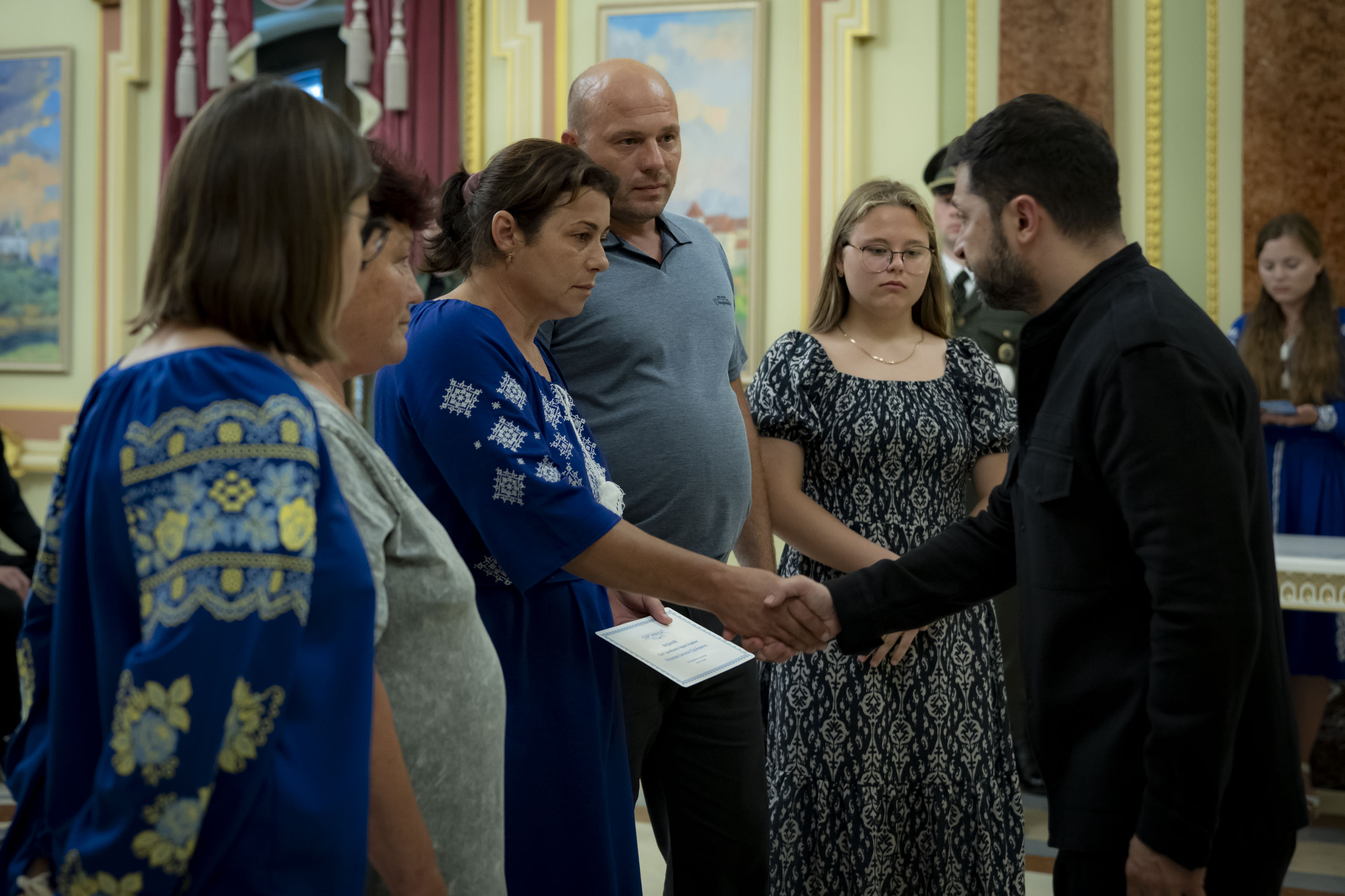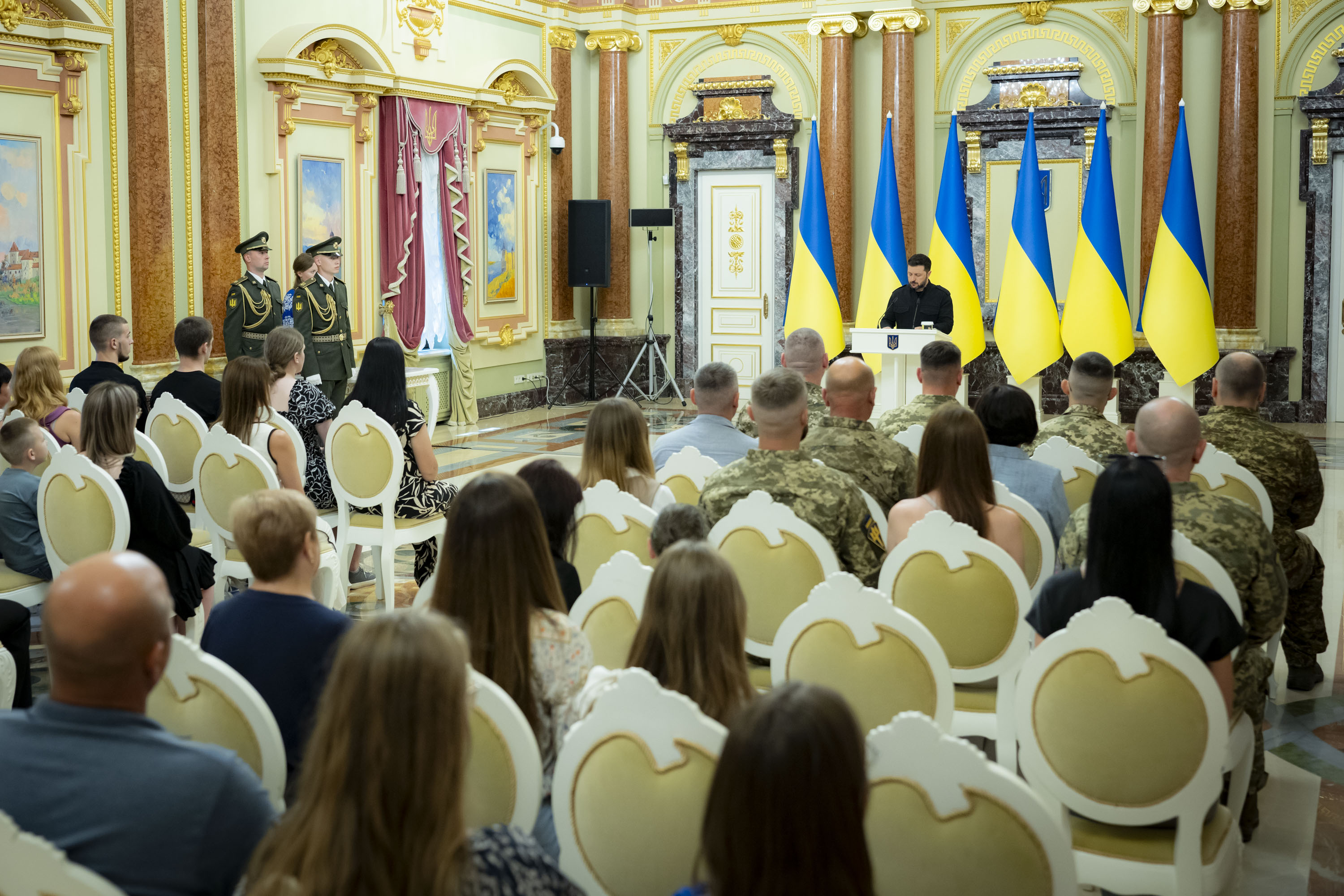 Володимир Зеленський вручив сертифікати на отримання квартир Героям України та рідним воїнів, удостоєних цього звання посмертно, 22 липня 2025 року.