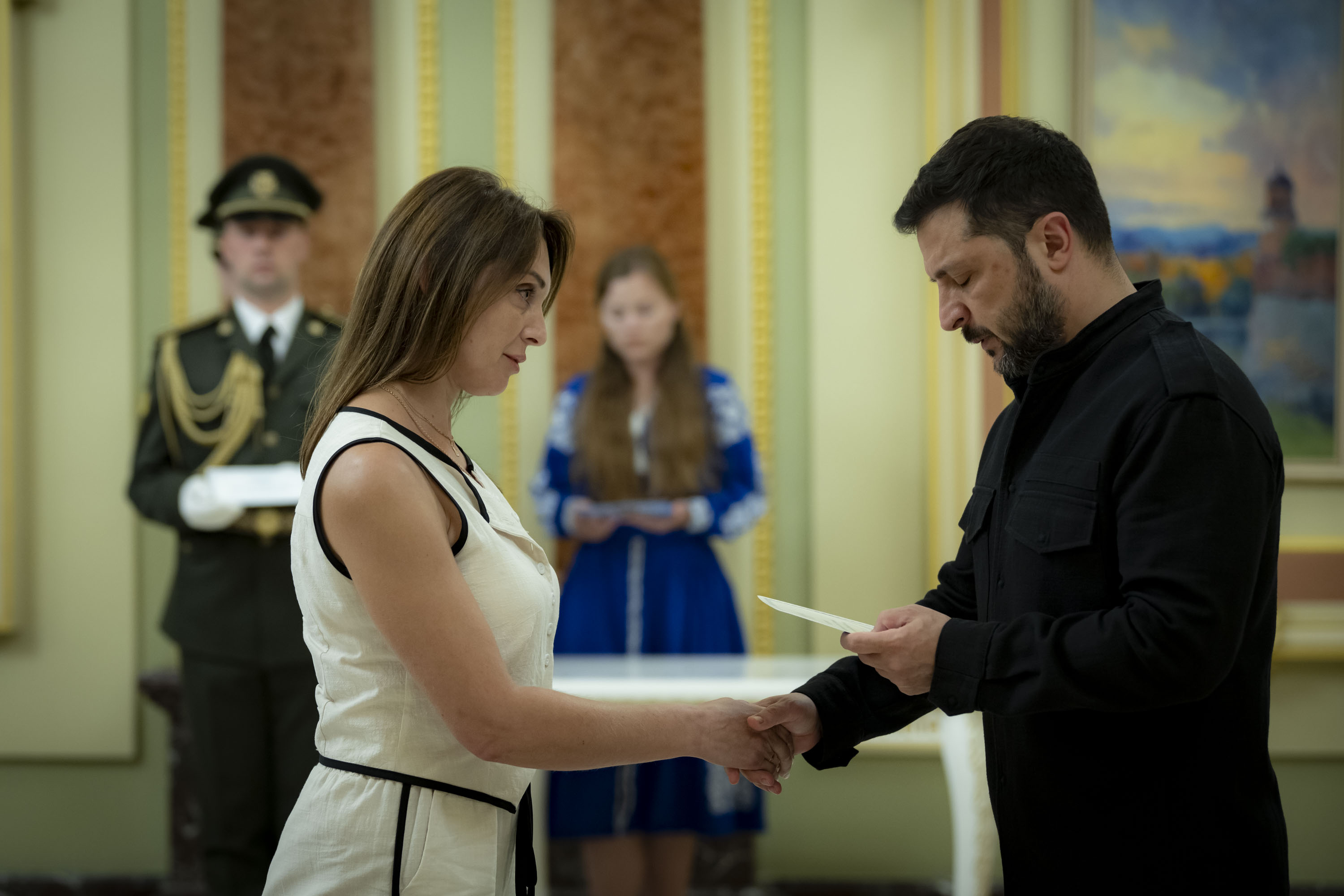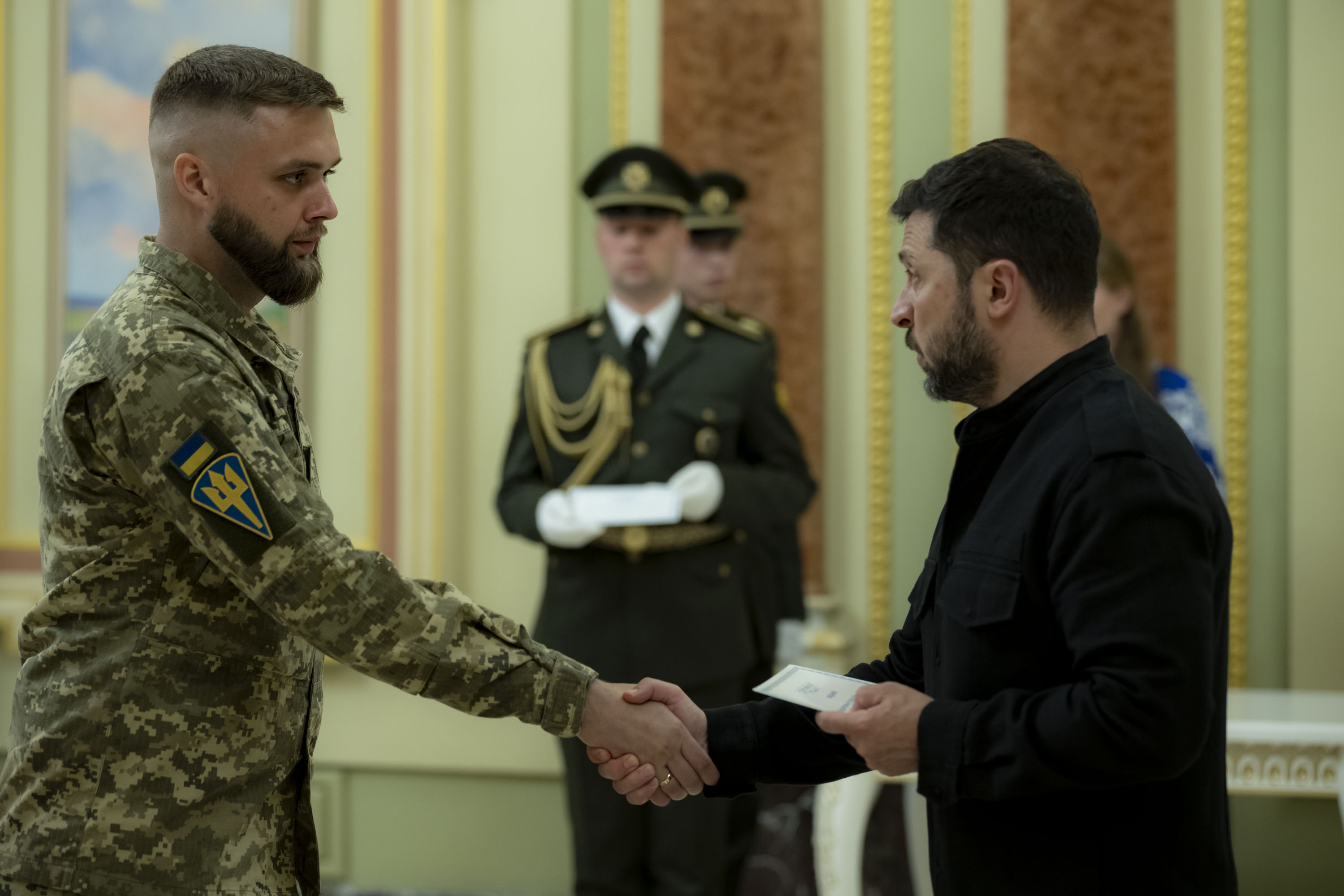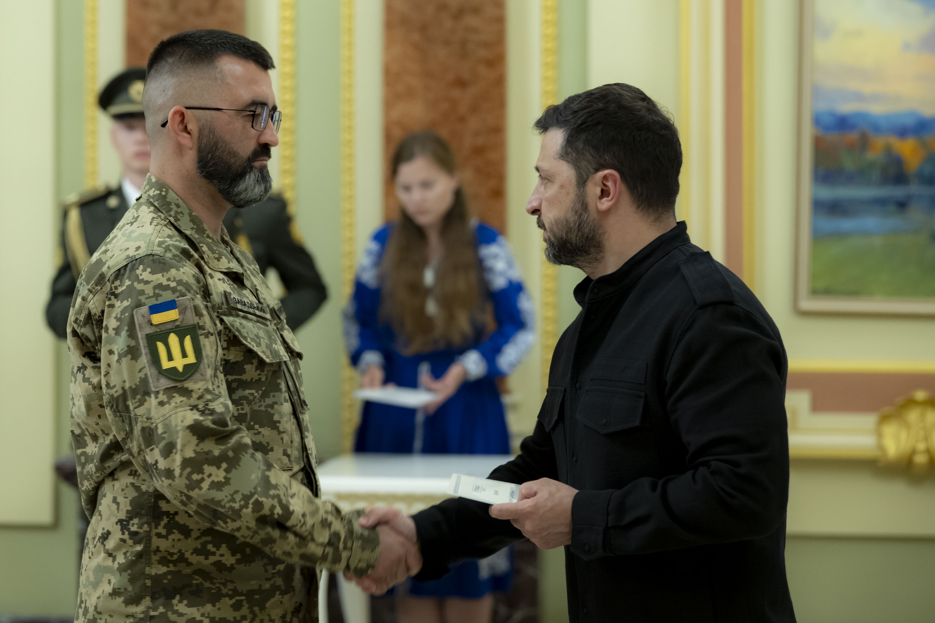 Володимир Зеленський вручив сертифікати на отримання квартир Героям України та рідним воїнів, удостоєних цього звання посмертно, 22 липня 2025 року.