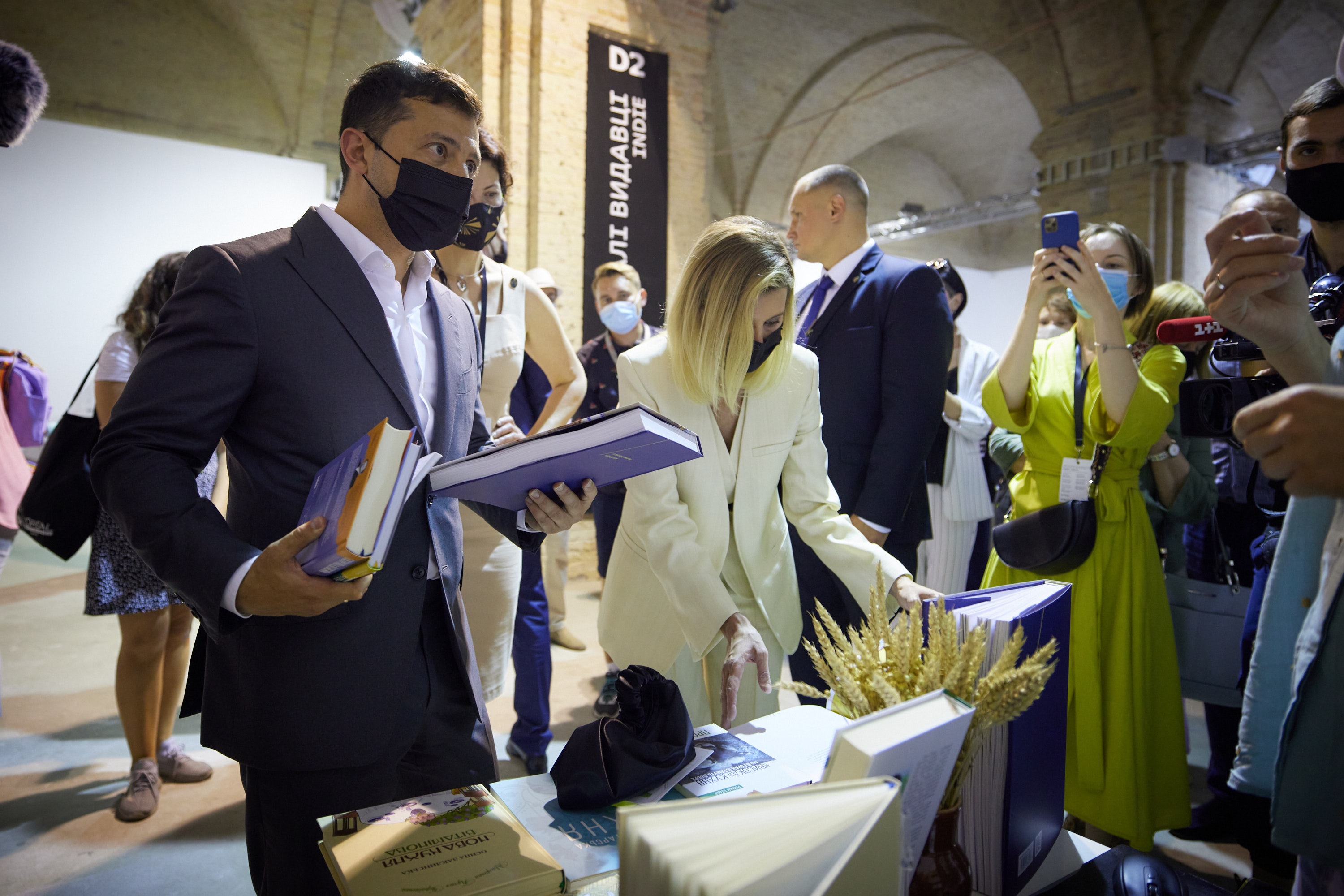 Президент України Володимир Зеленський разом з дружиною Оленою відвідали ювілейний, десятий Міжнародний фестиваль «Книжковий Арсенал», що триває в Києві, 24 червня 2021 року.