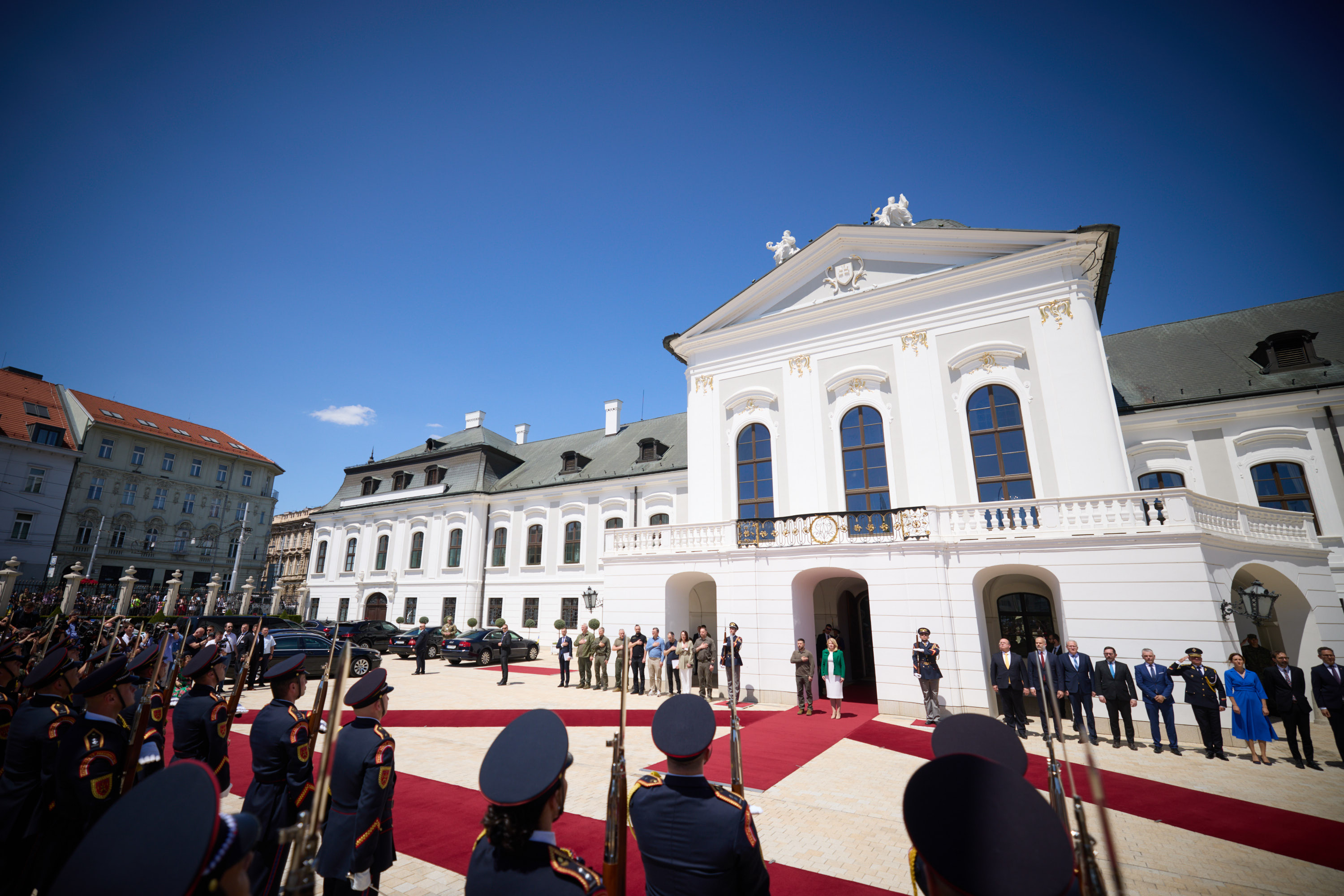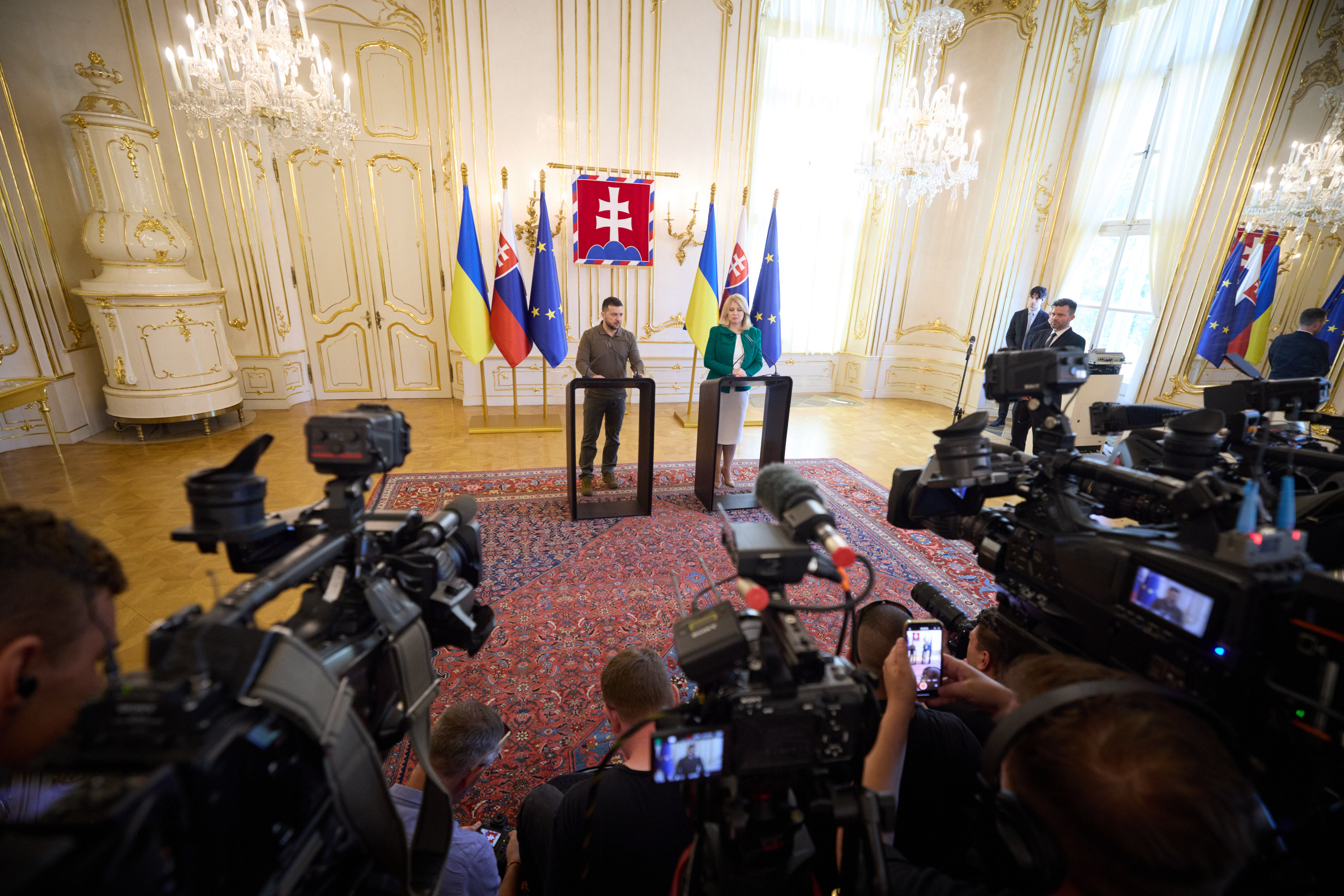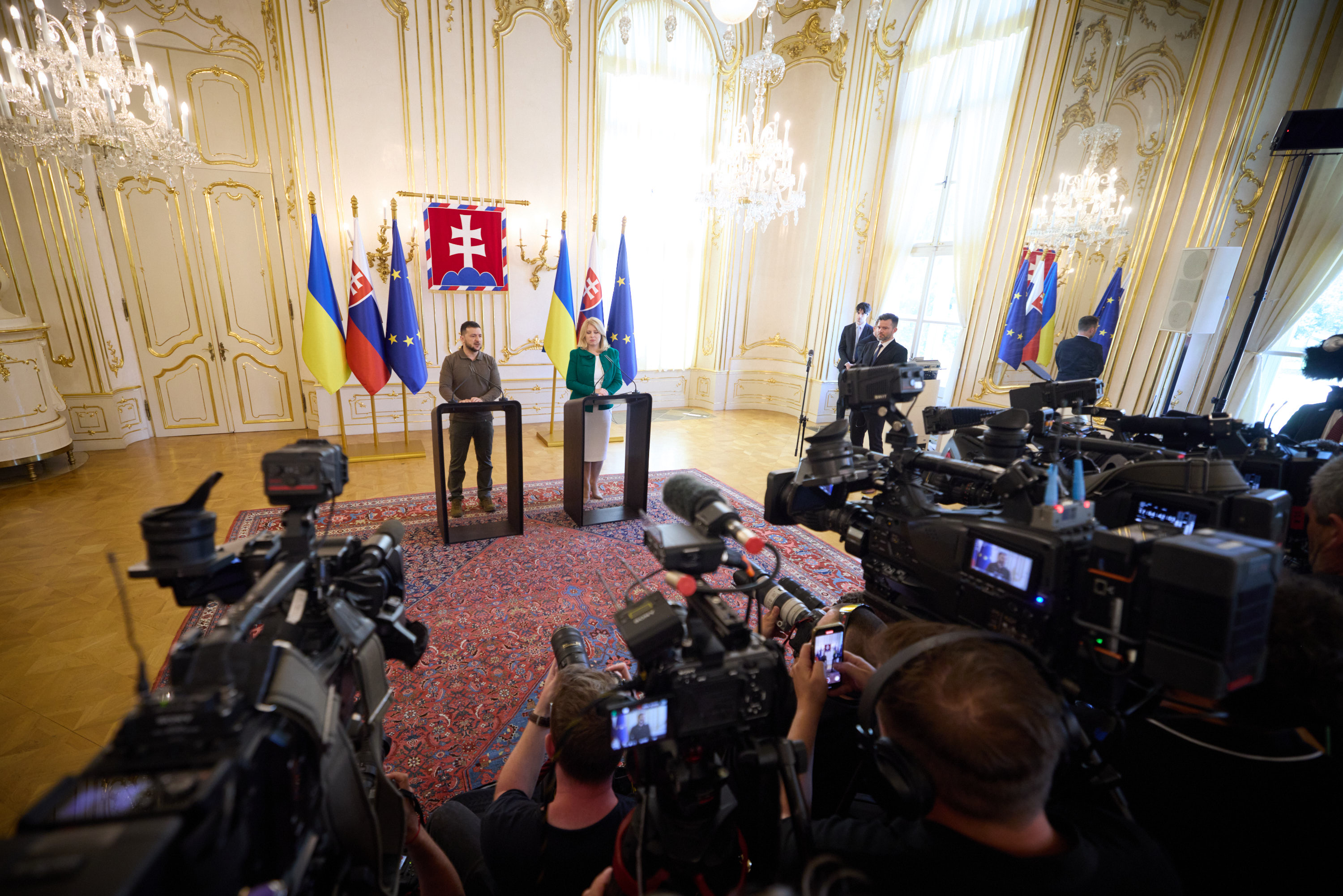 «Сьогодні ми працюємо заради інтересів наших народів і дякуємо за підтримку всім людям у Словаччині. Я вдячний кожному й кожній тут, у прекрасній Братиславі, і в інших містах і громадах Словаччини, де прихистили українців. Людям, волонтерам, громадським організаціям – абсолютно всім. Ми цінуємо це», – сказав Володимир Зеленський під час зустрічі з представниками ЗМІ за результатами переговорів із Зузаною Чапутовою у Братиславі.